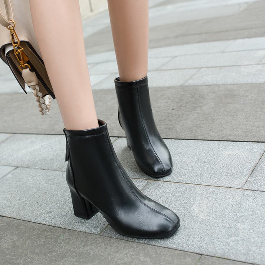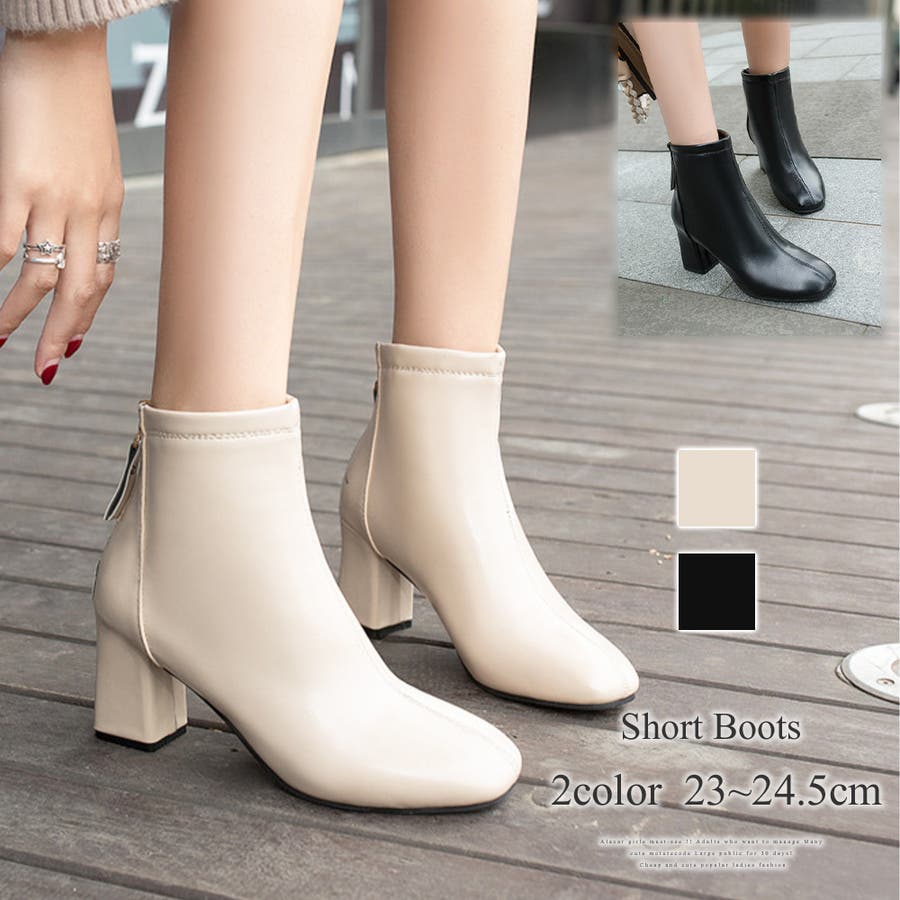 ショートブーツ レディース 7cmヒール ファスナー シンプル 大人女子