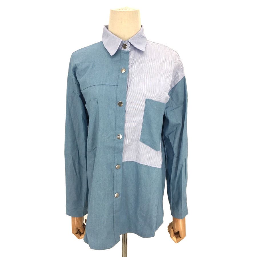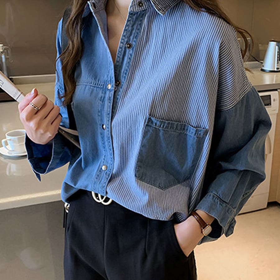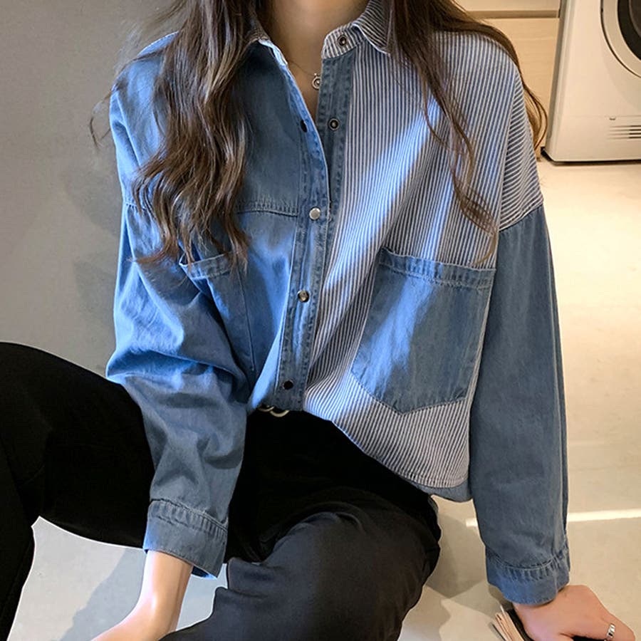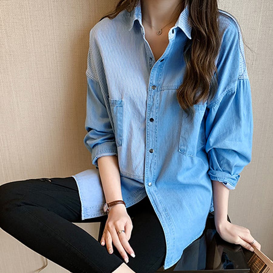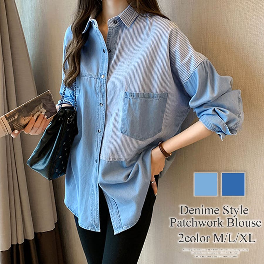 デニム風パッチワークブラウス レディース シャツ