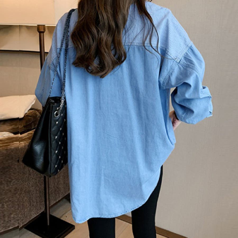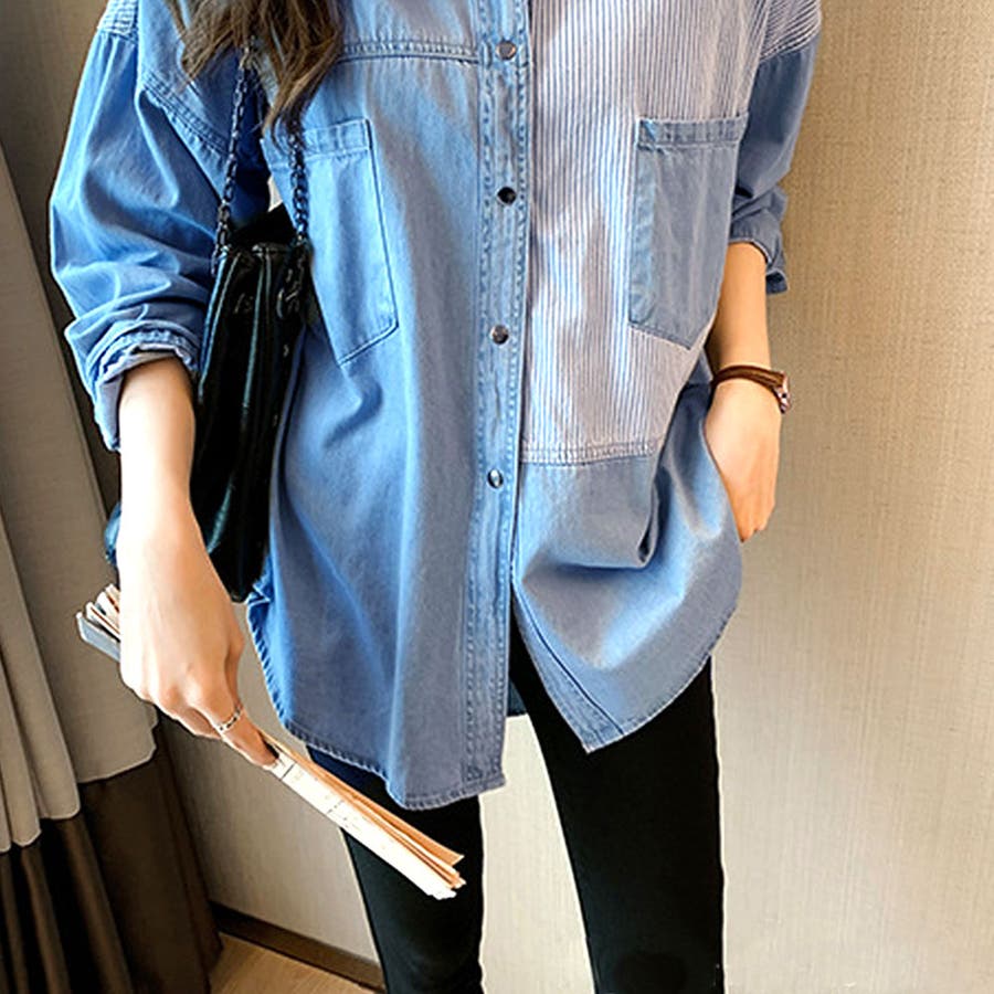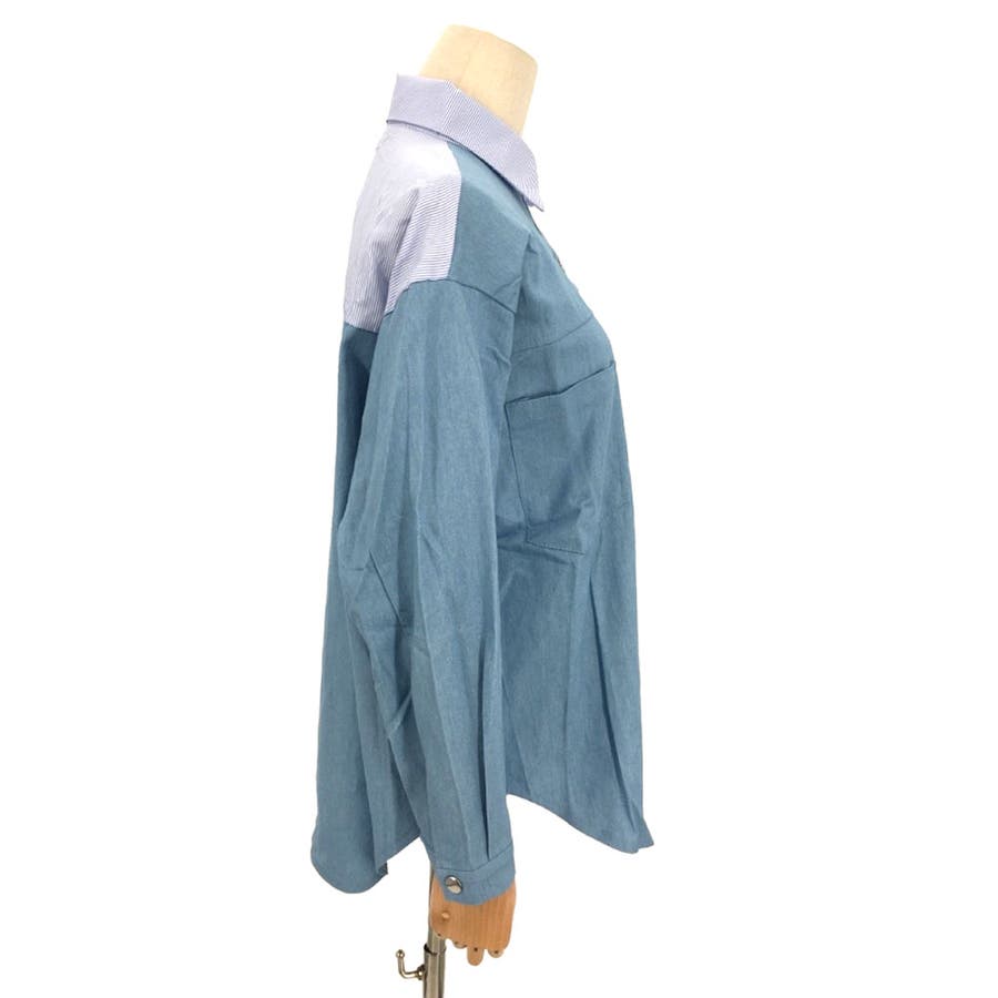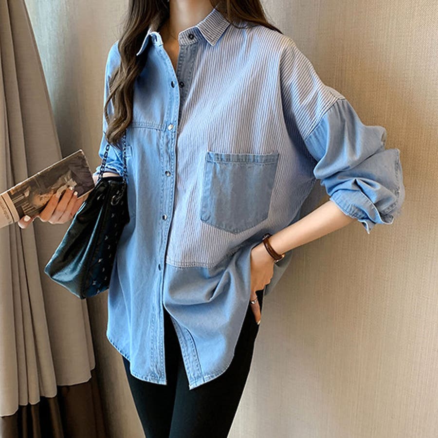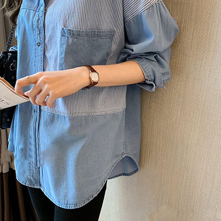 デニム風パッチワークブラウス レディース シャツ