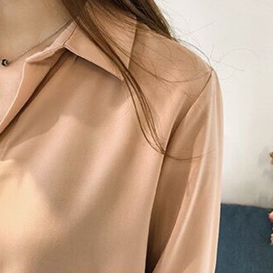 仕事用のトップスとして買いました。いつもより一つ大きいサイズで購入。伸縮性はないので少しゆとりあってちょうど良い。透けたりしないし使えそうです。買って良かったです!