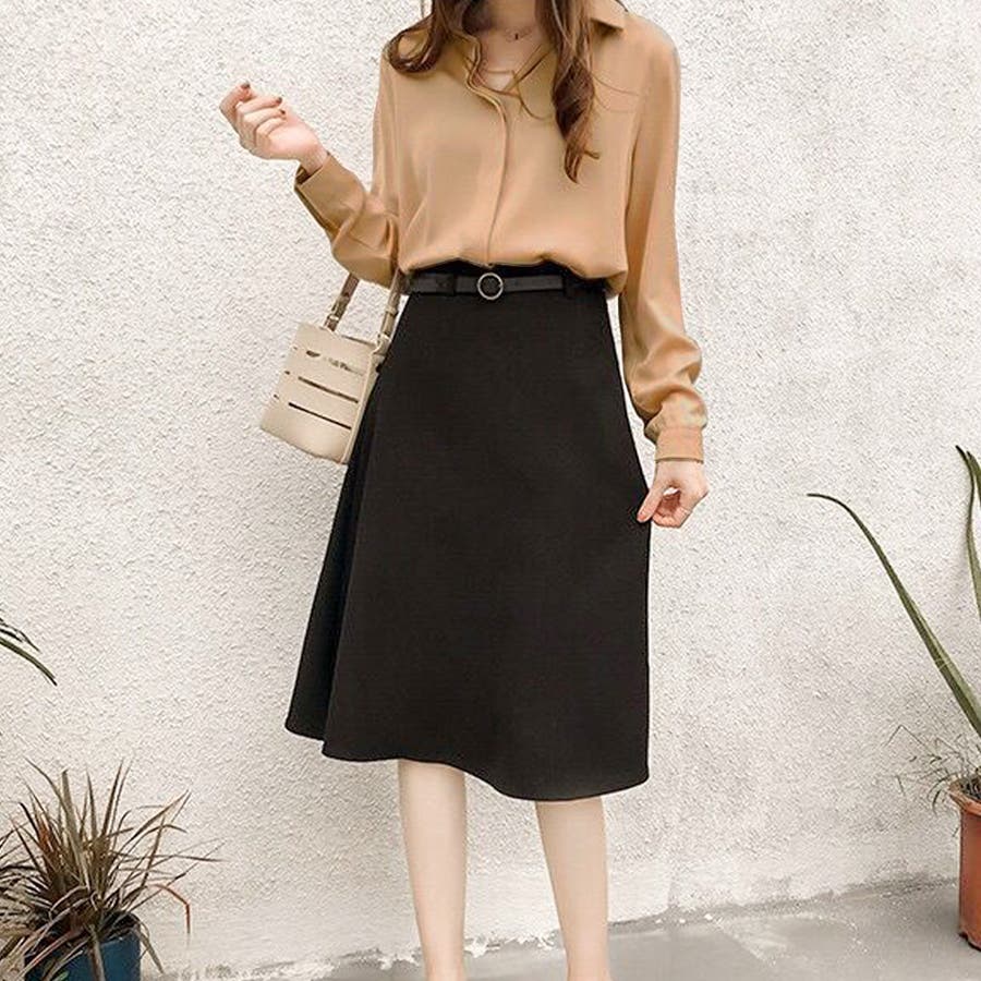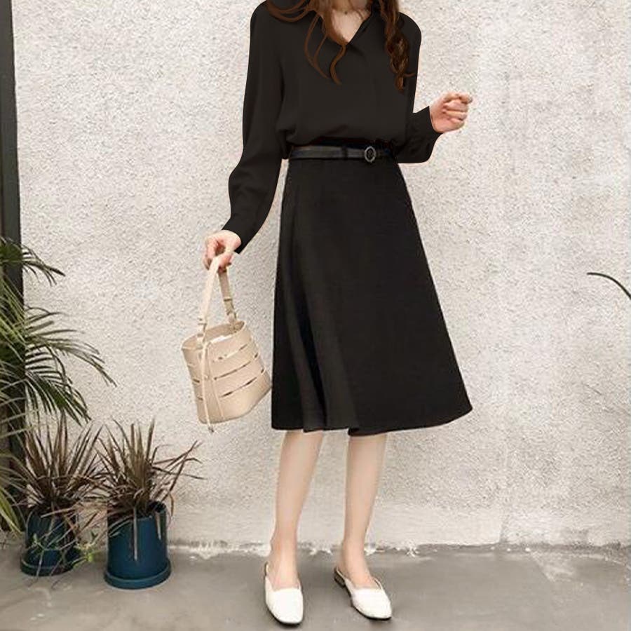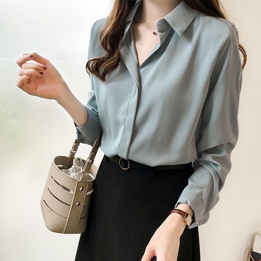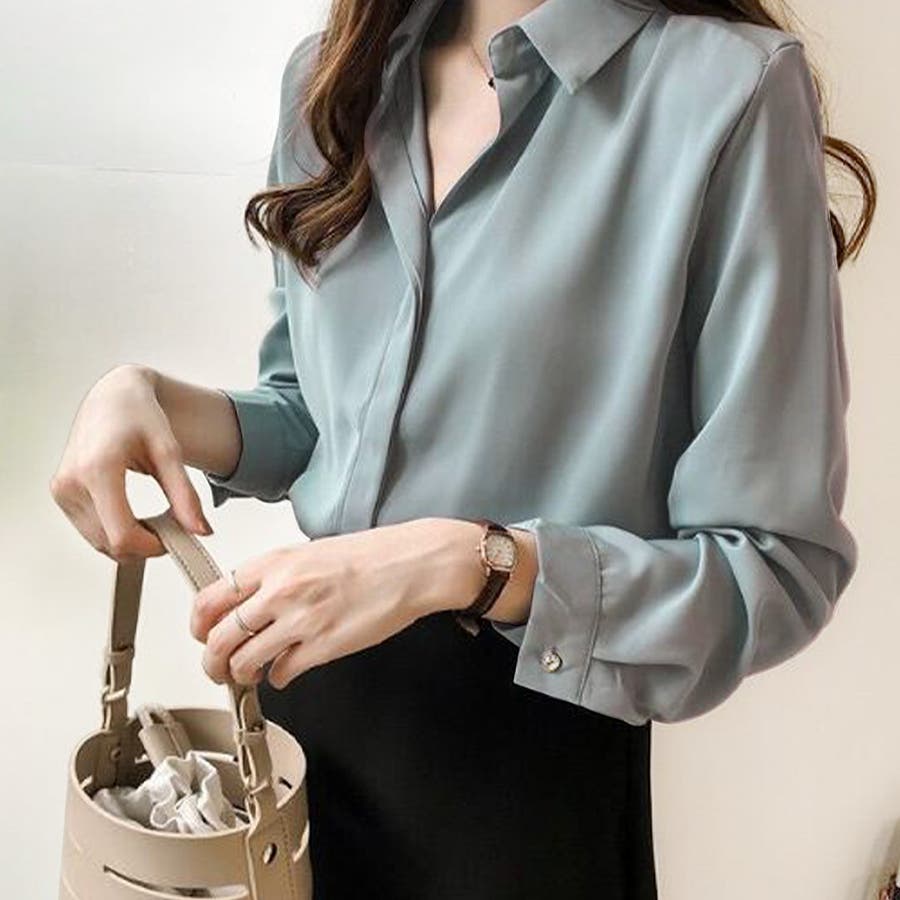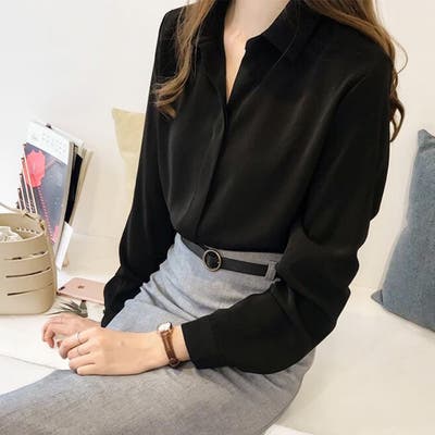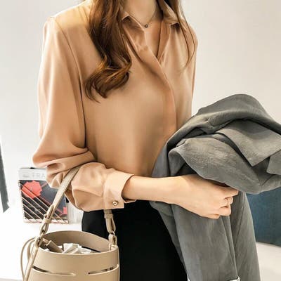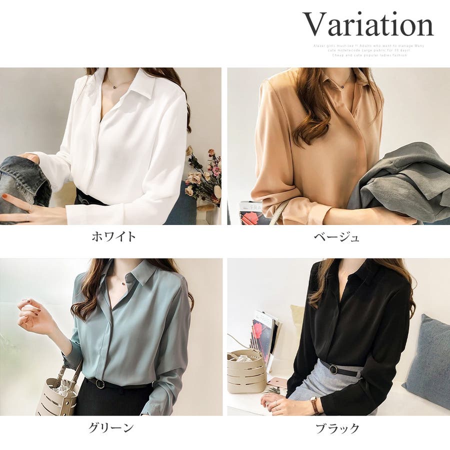 スキッパーブラウス レディース 長袖 無地 プルオン 通勤 シンプル きれい目