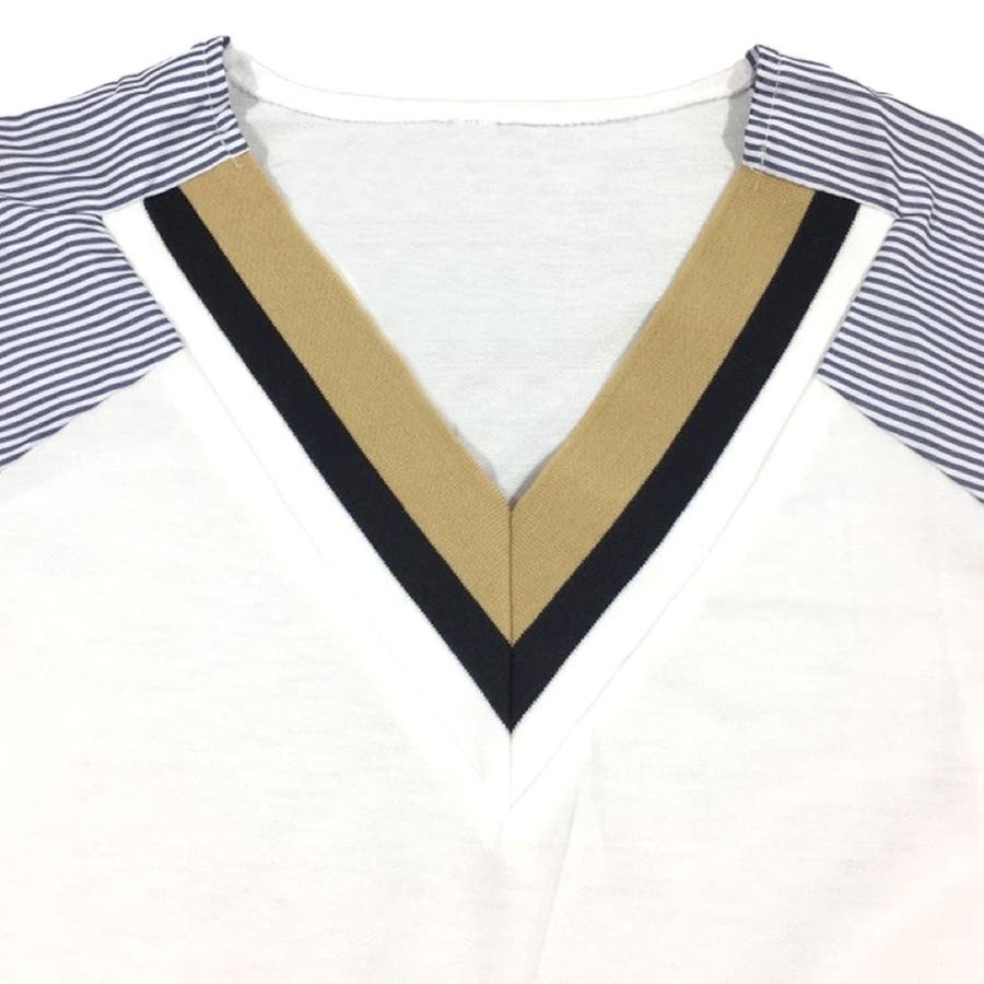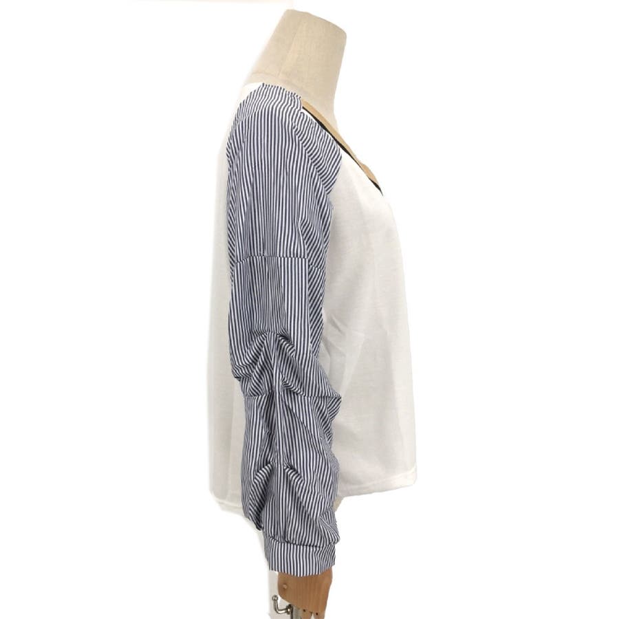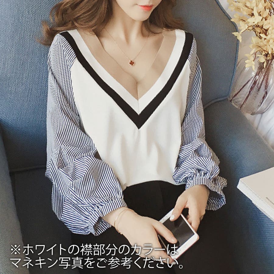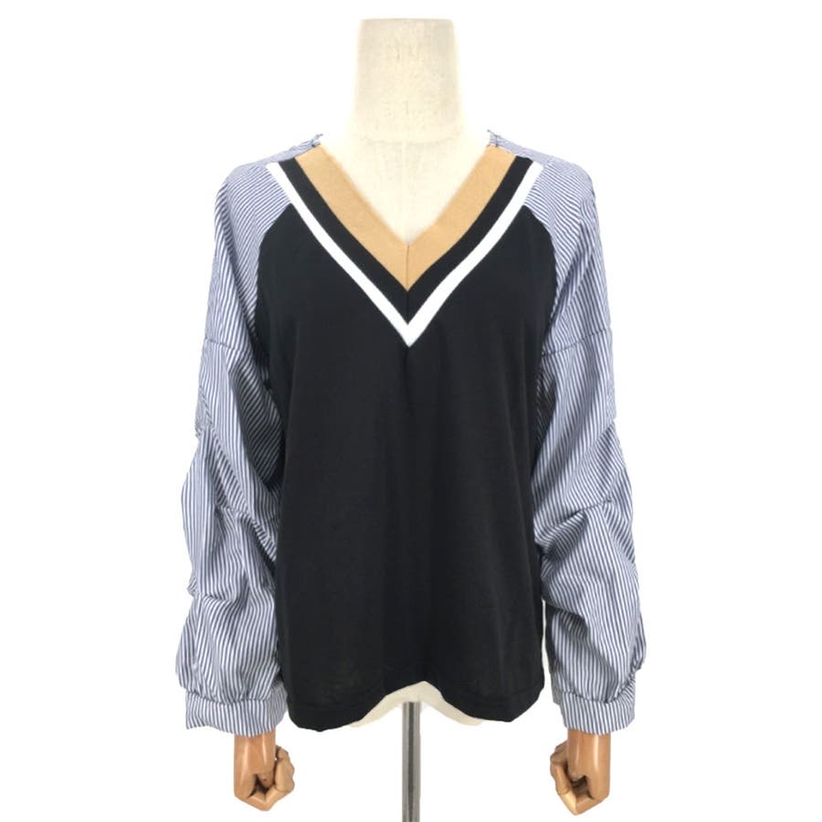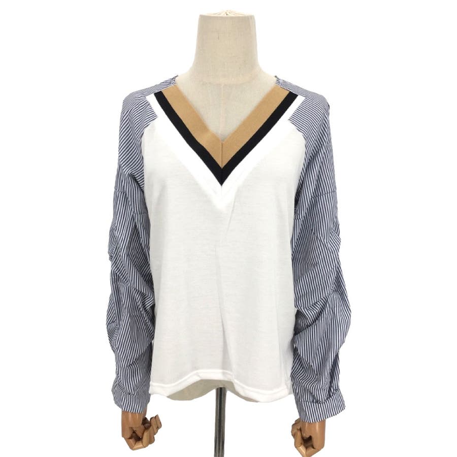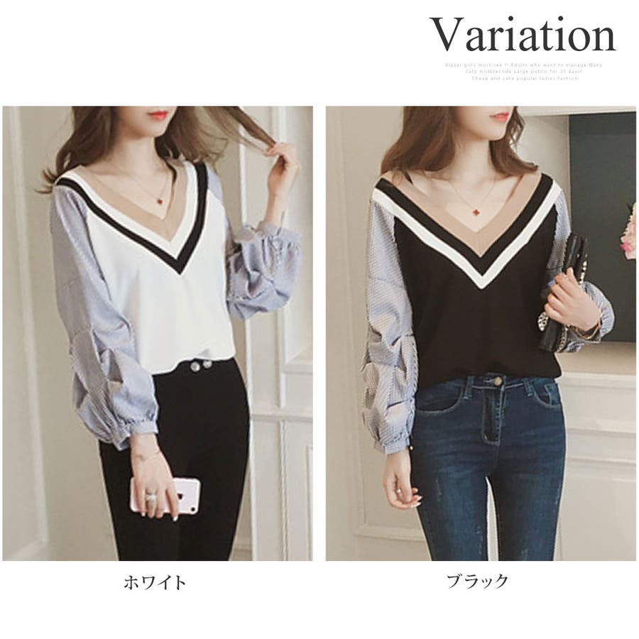 Vネックドッキングブラウス レディース 長袖