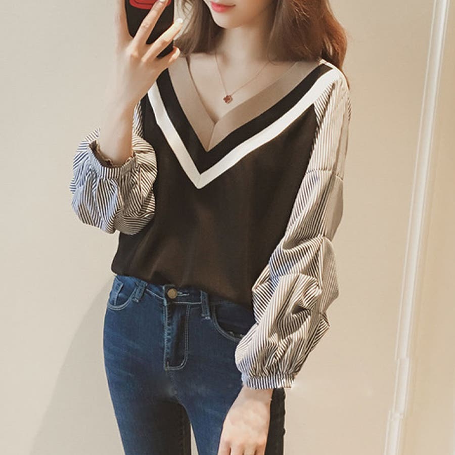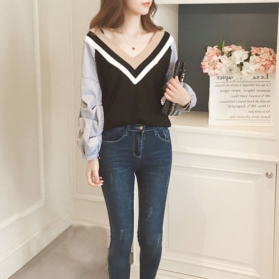 ・Vネックでさりげない肌見せと袖周りのボリューム感がバランスよく絶妙にマッチ!