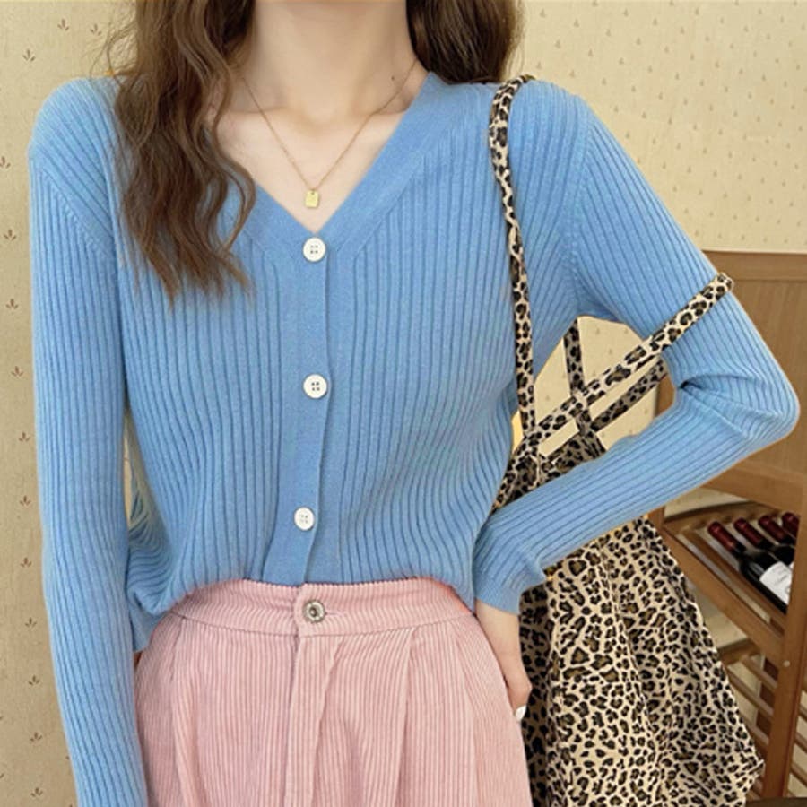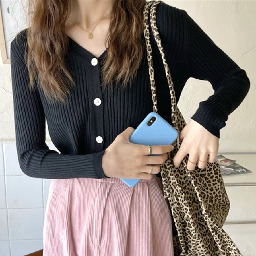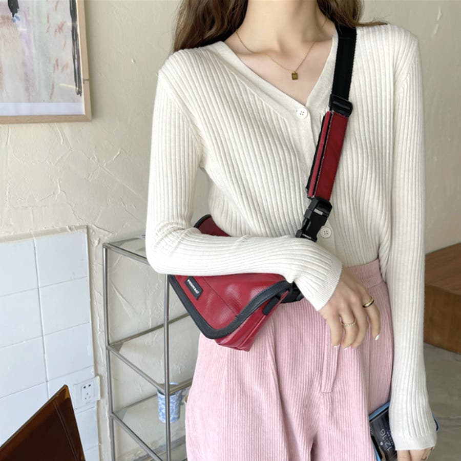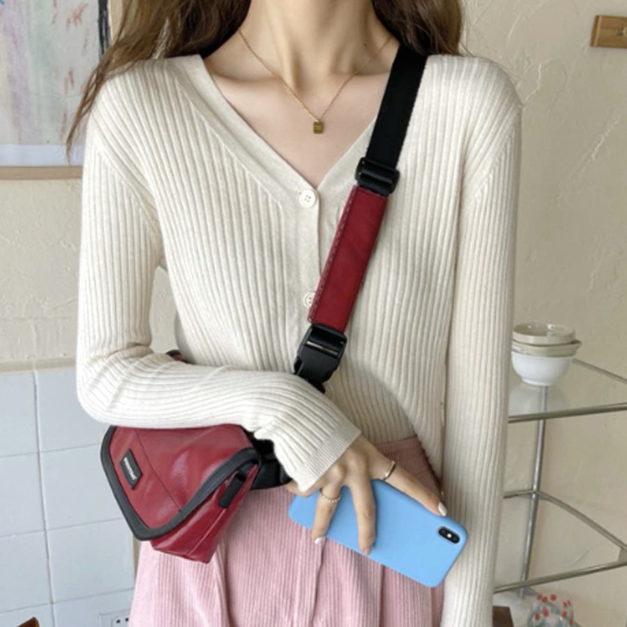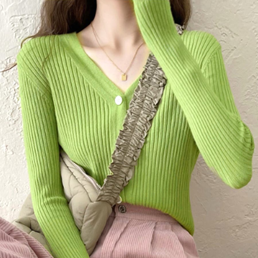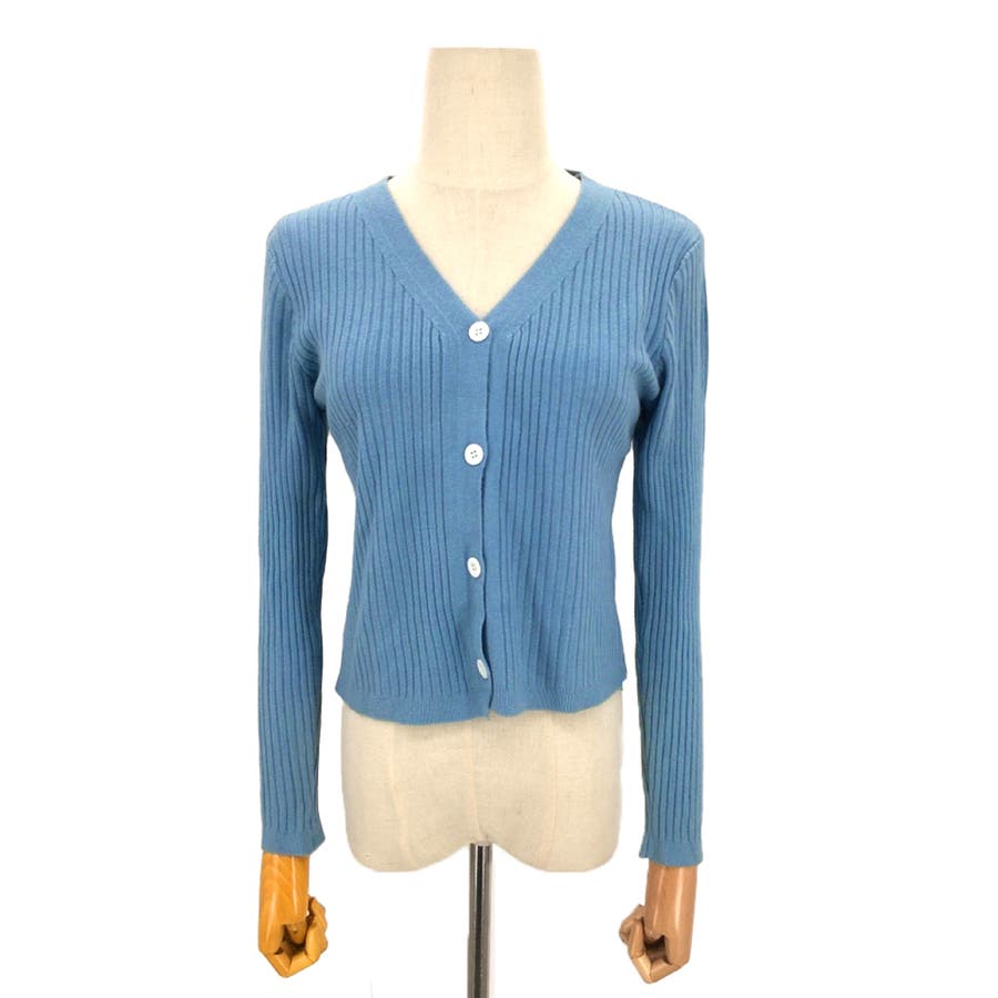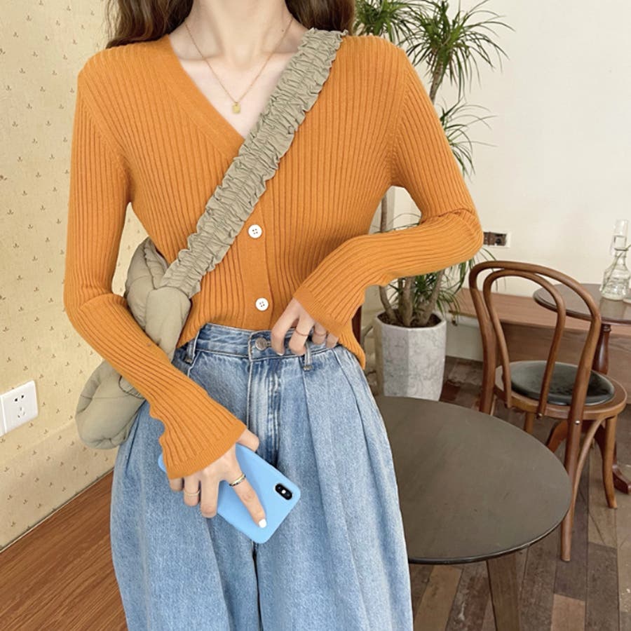 ・伸縮性のあるリブニットが、心地よく体にフィットするニットカーディガンでデイリー使いにも◎
