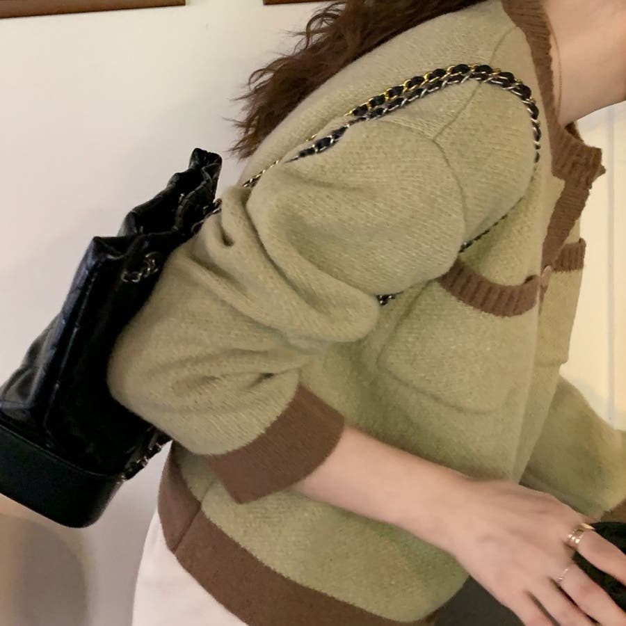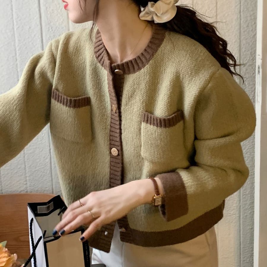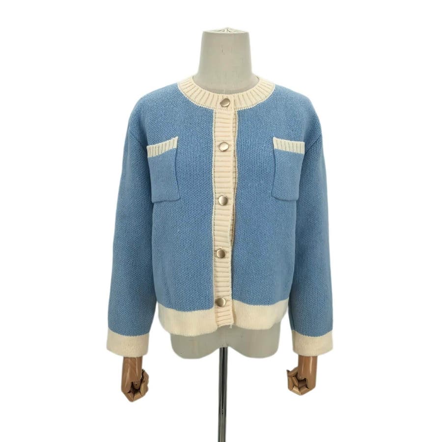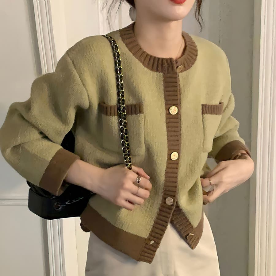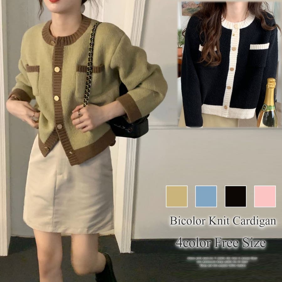 バイカラーニットカーディガン レディース 長袖
