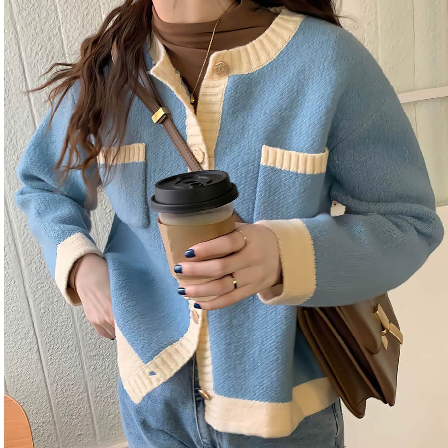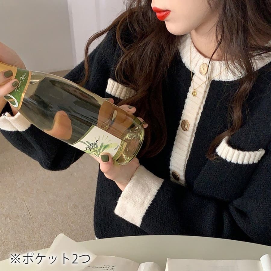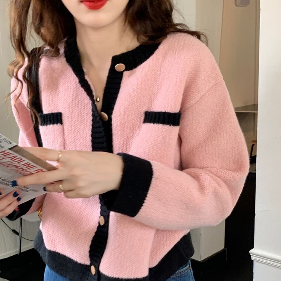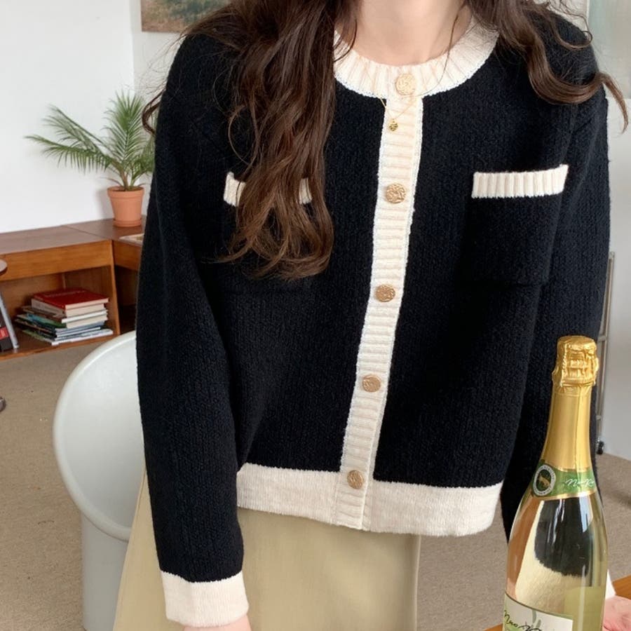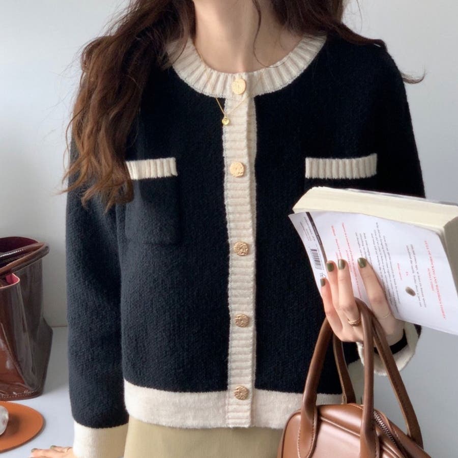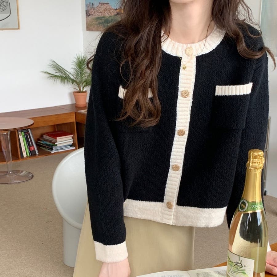 バイカラーニットカーディガン レディース 長袖