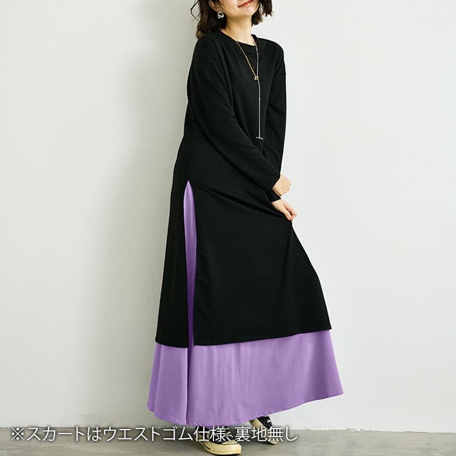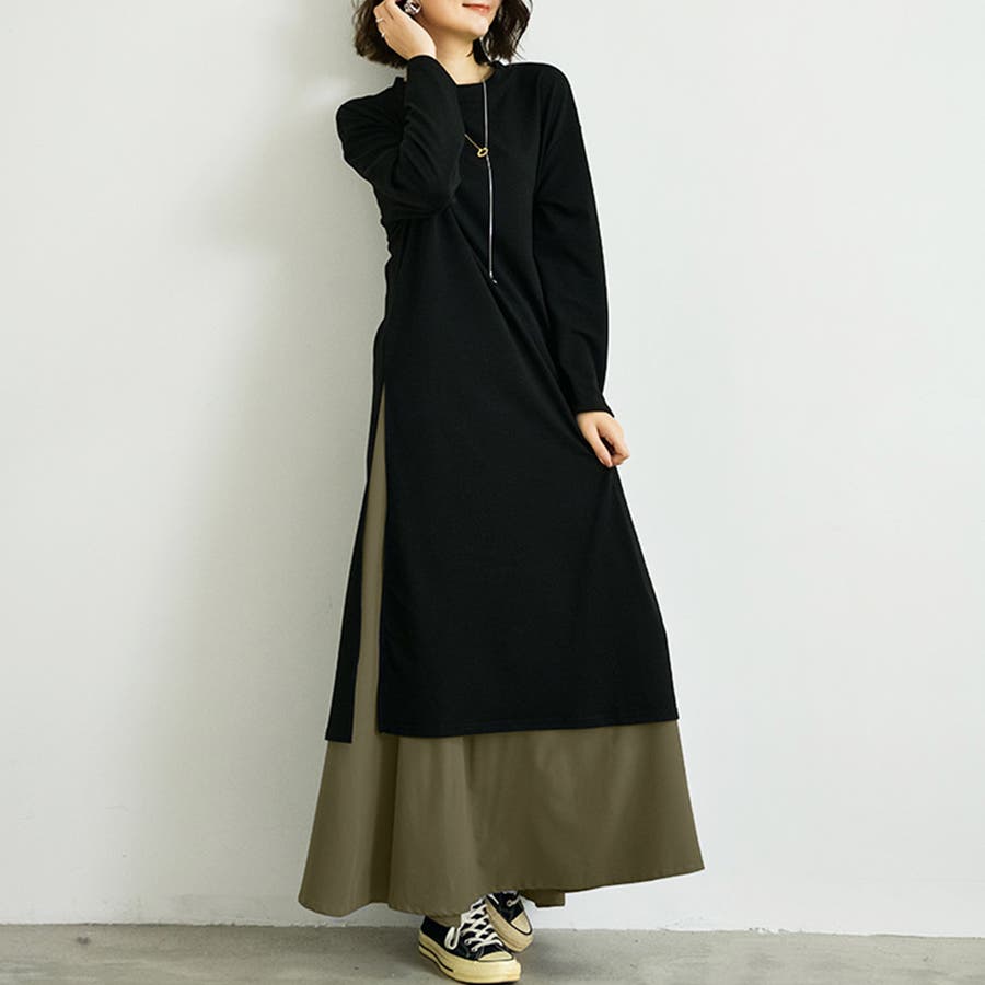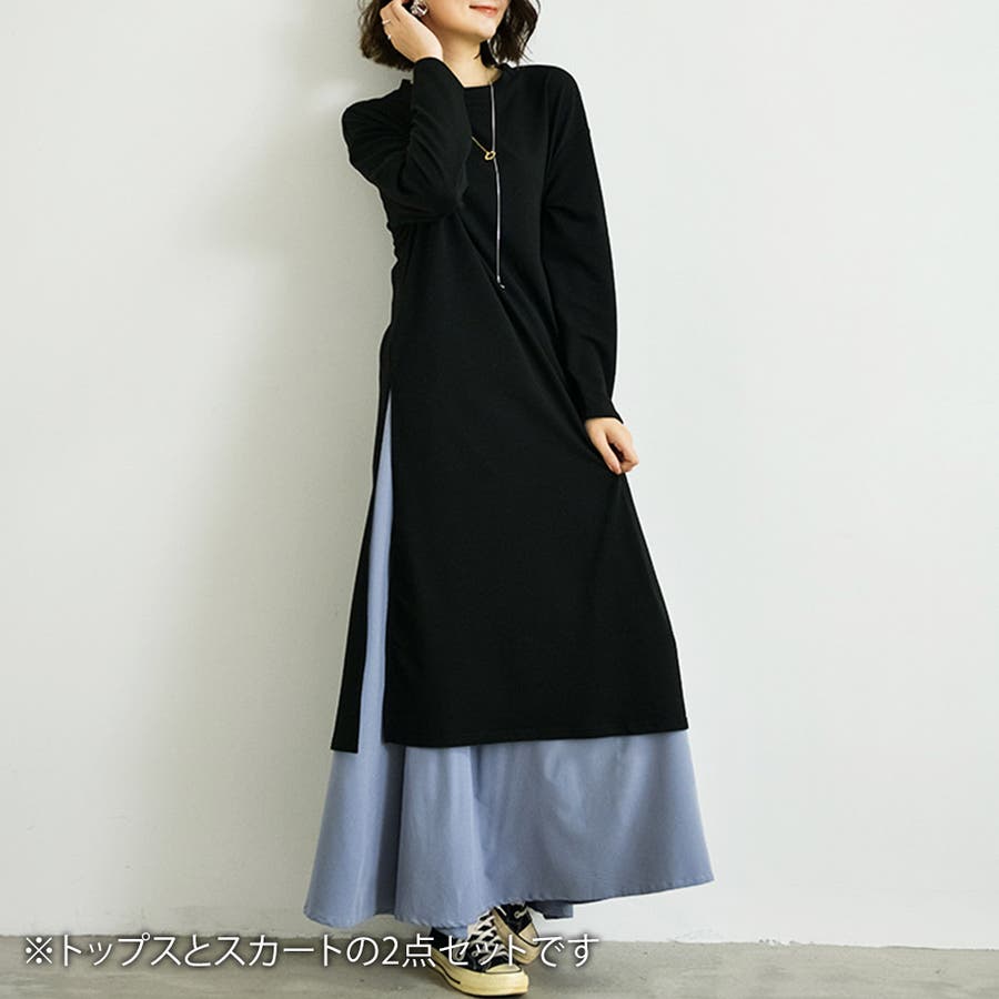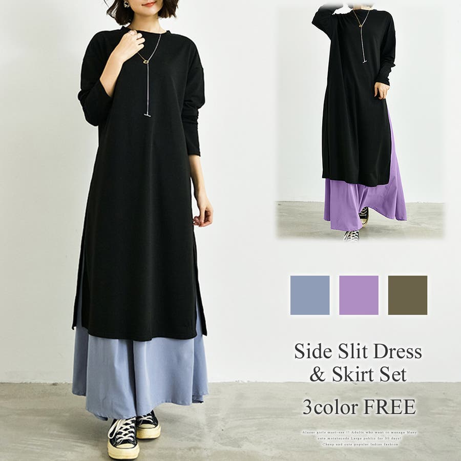 サイドスリットワンピース&スカートセット レディース 長袖