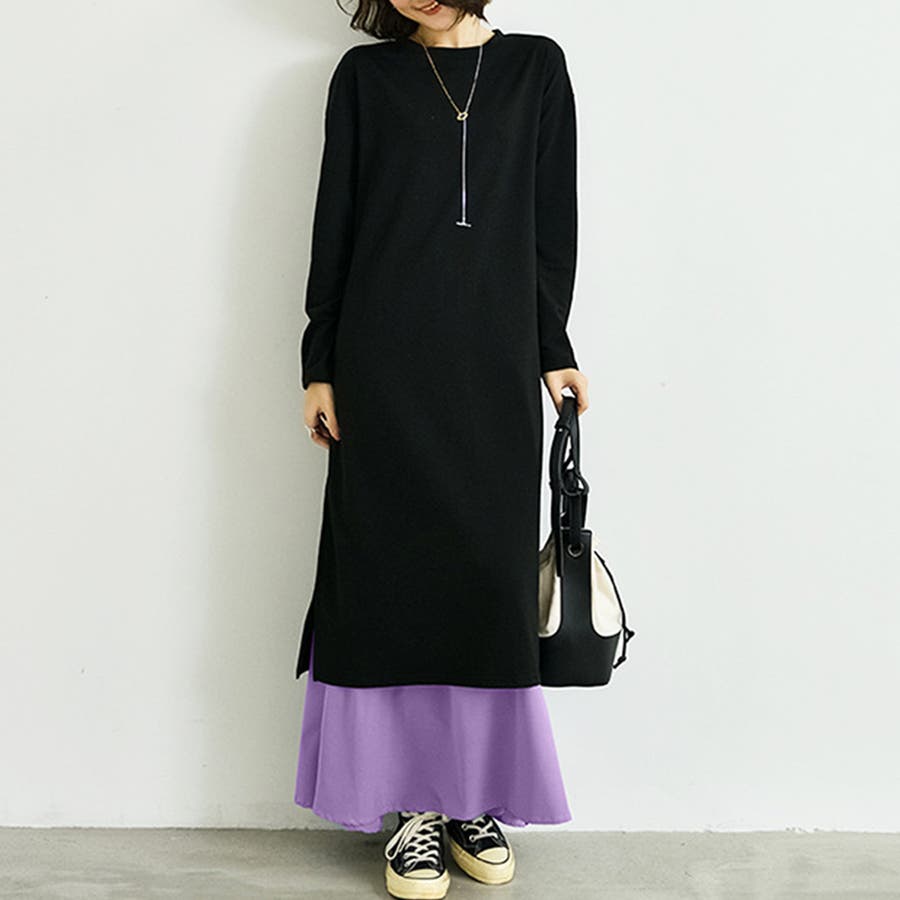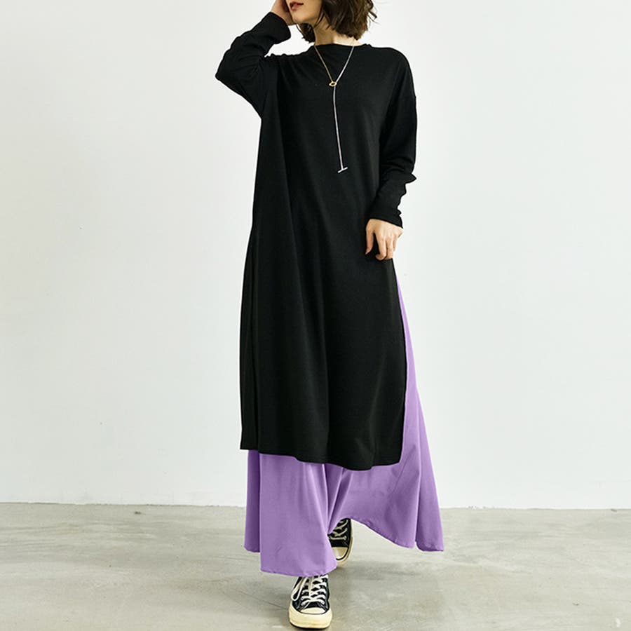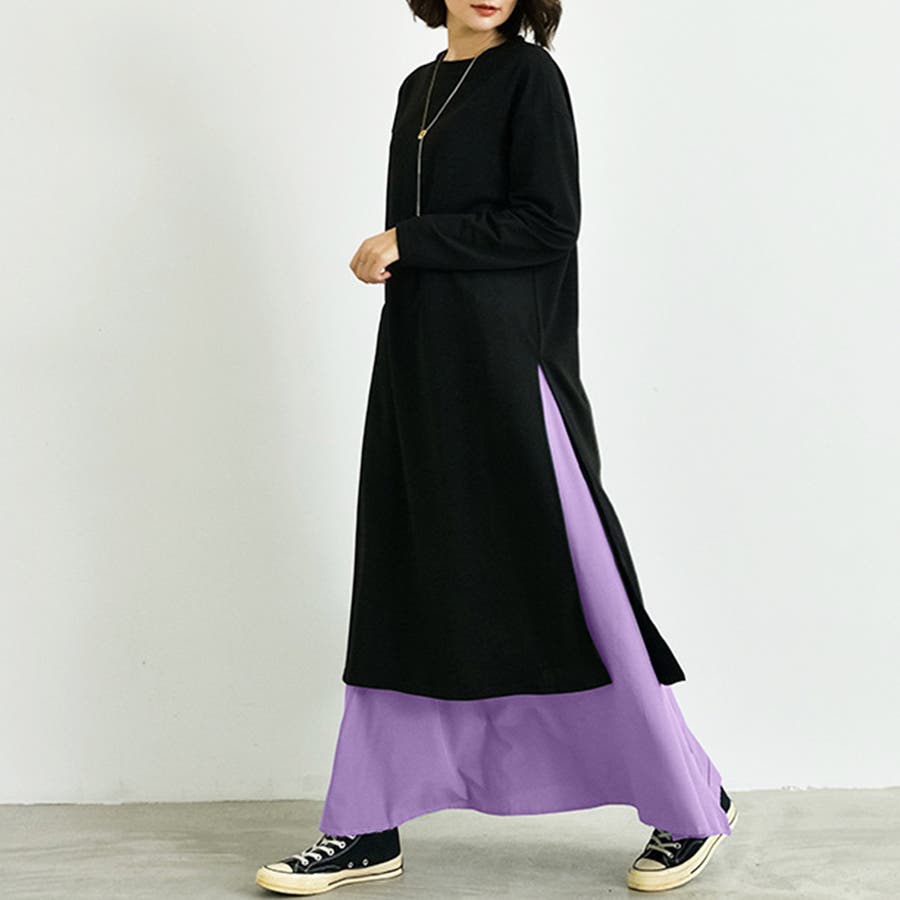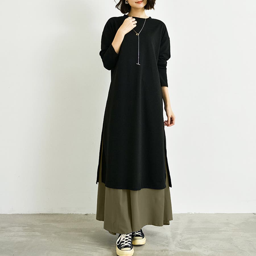 サイドスリットワンピース&スカートセット レディース 長袖
