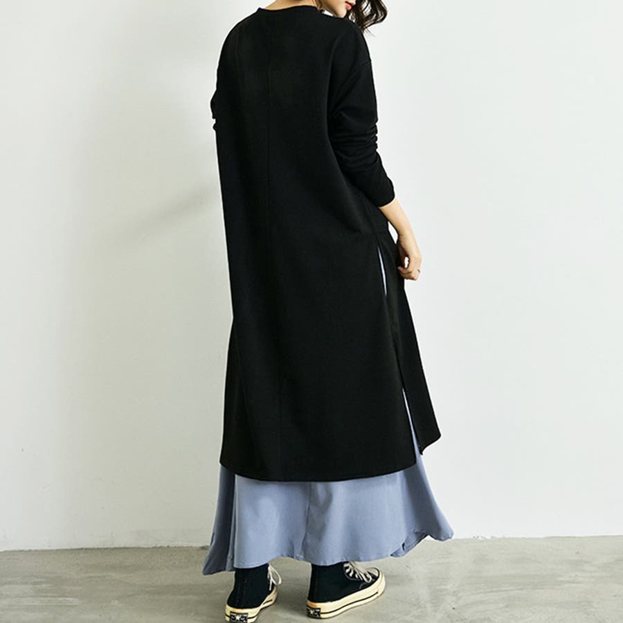 ロング丈でウエストのところまで、両サイドにスリットが入っているので、パンツでもロングスカートでも合わせやすい。