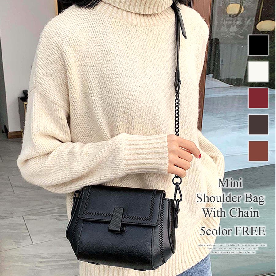 ・チェーン風のショルダーが特徴的。肩に触れる部分はベルトになっているので、お洋服が傷まず快適にご使用いただけます♪