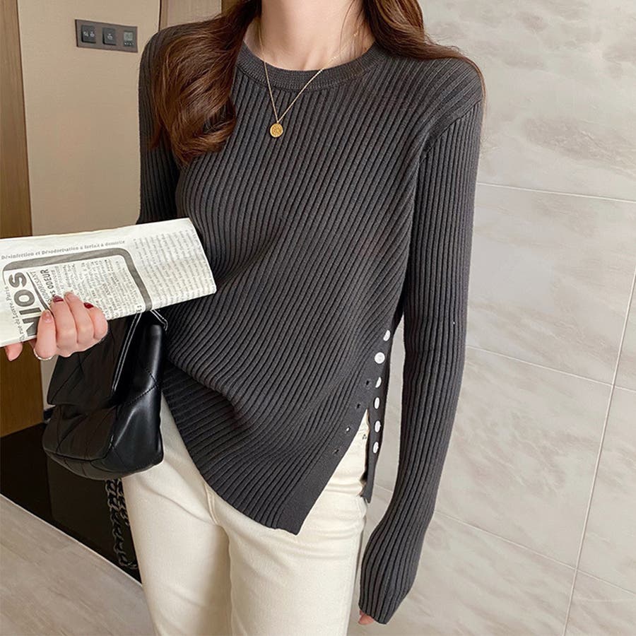 ・シンプルながらもサイドスリットで簡単にオシャレな着こなしが作れる!メリハリのあるデザインで大人なカジュアルコーデに◎