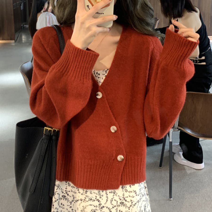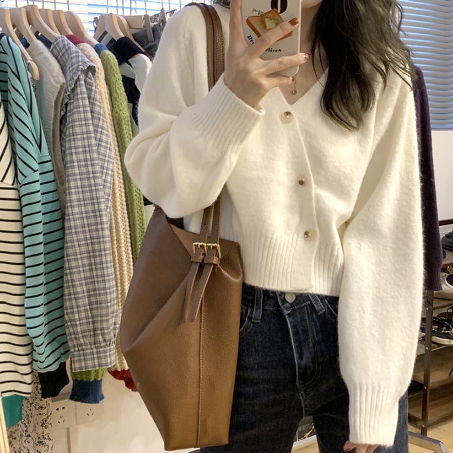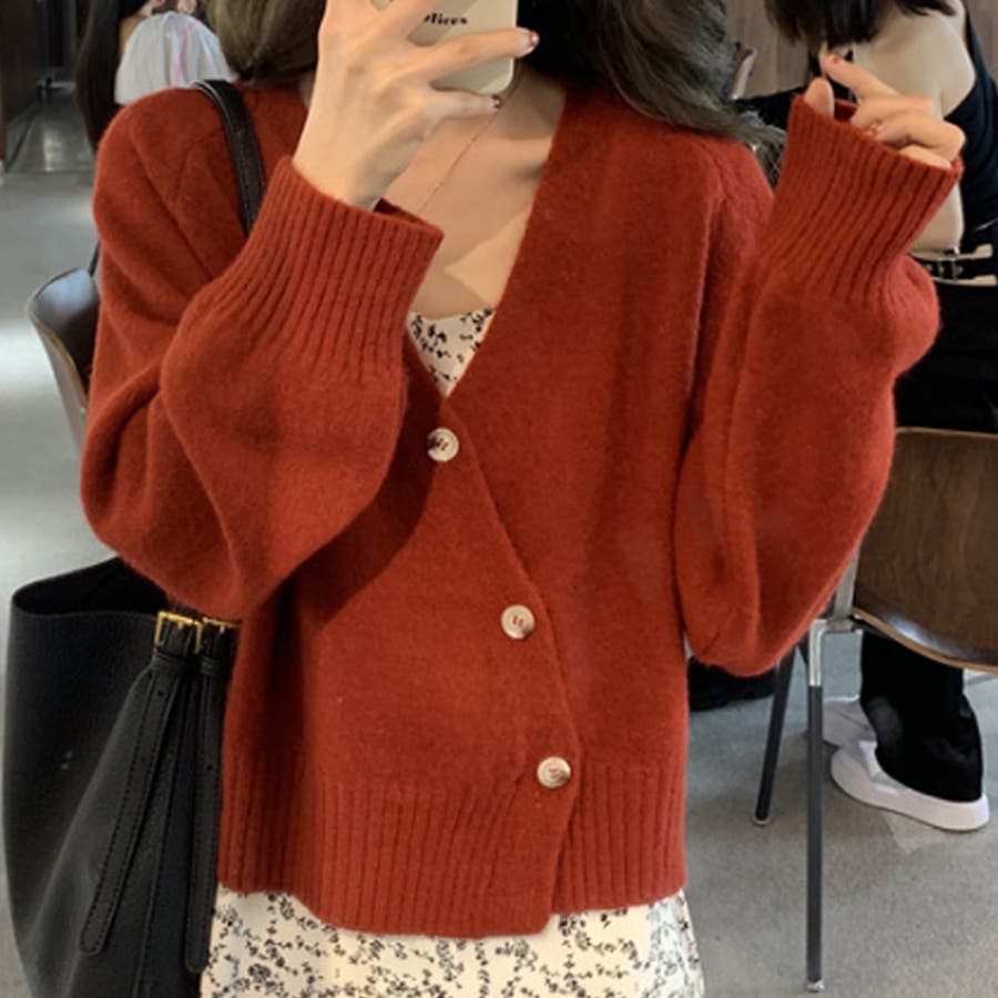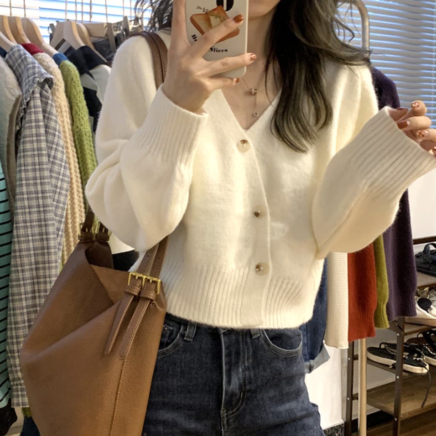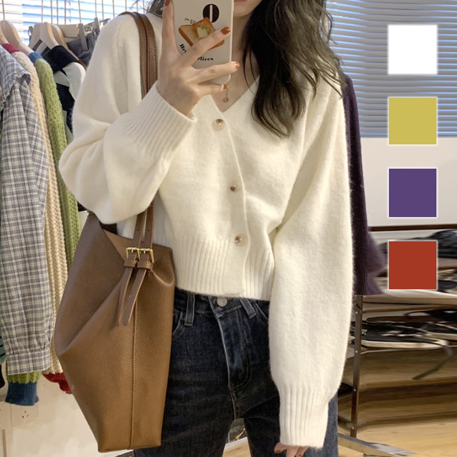 ・Vネックでスッキリとした印象に仕上がるから小顔効果もばっちり!インナーにハイネックを合わせるのもおすすめです。