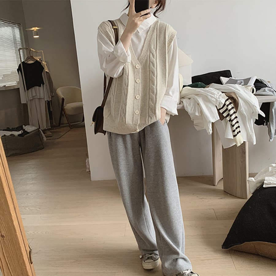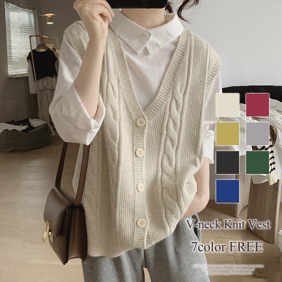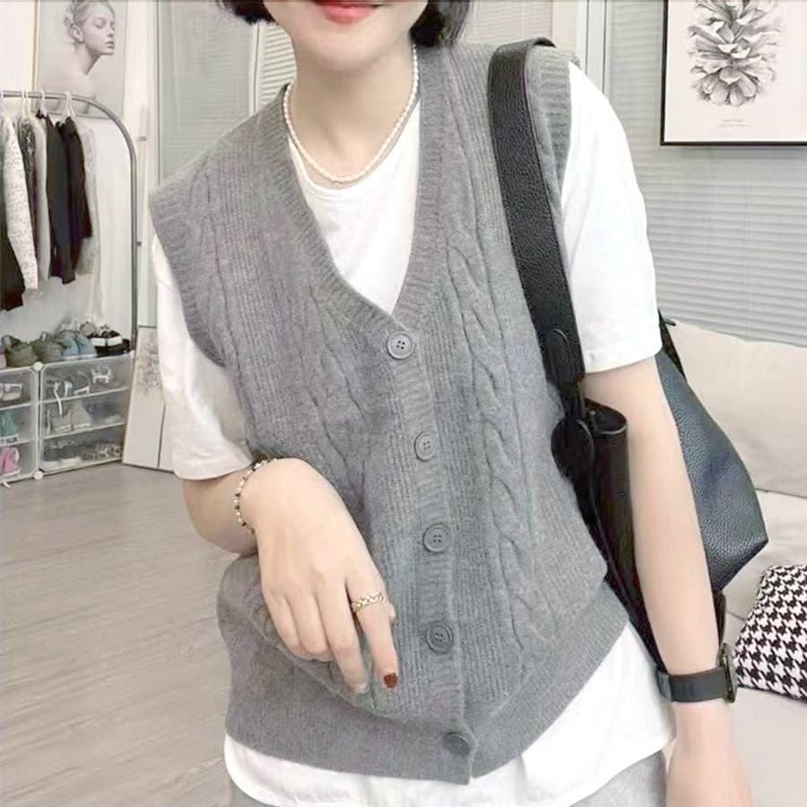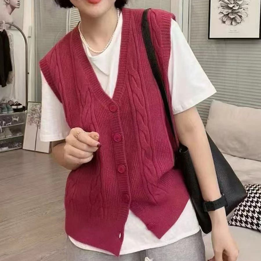 Vネックニットベスト レディース トップス