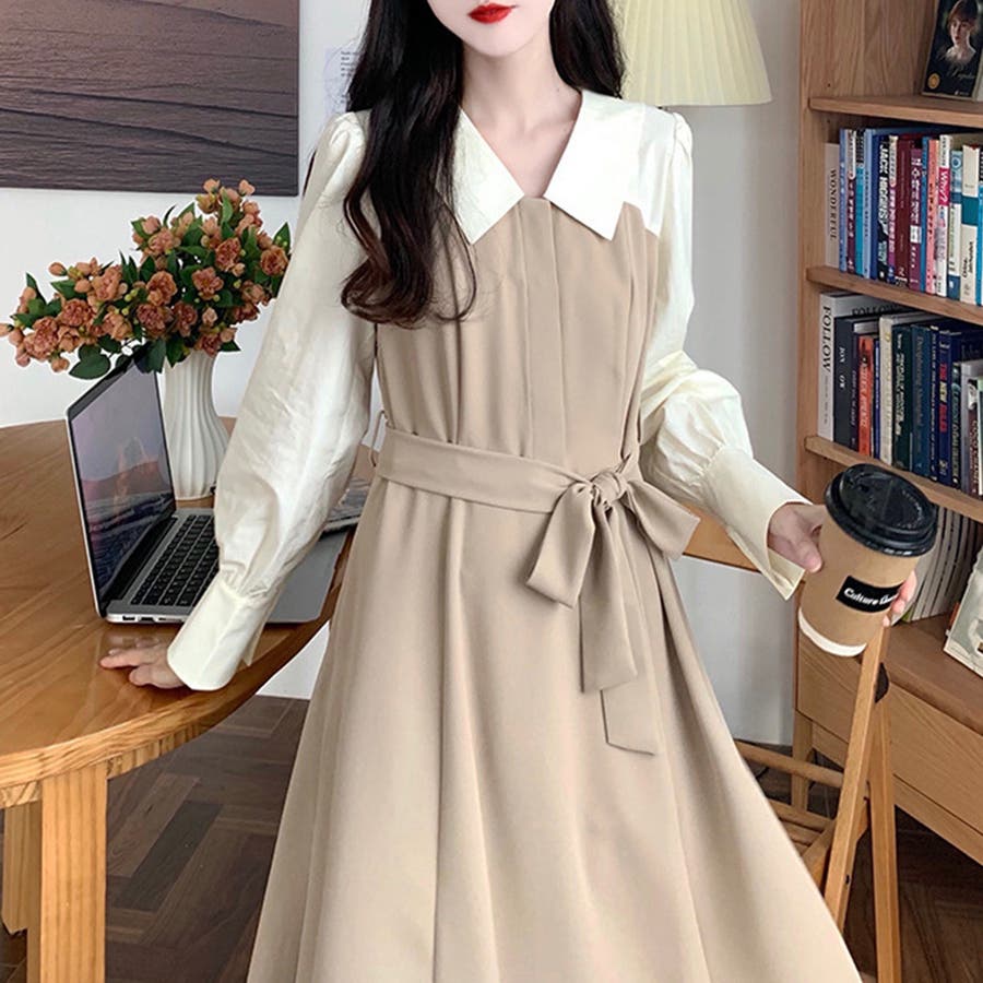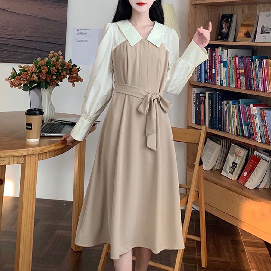 ウエストマークドッキングワンピース レディース 長袖