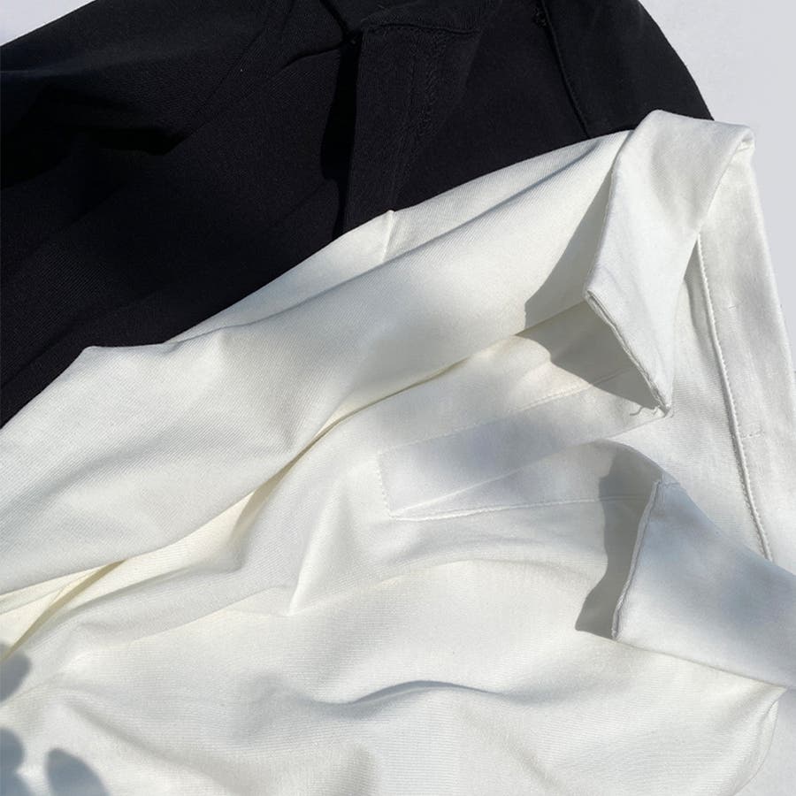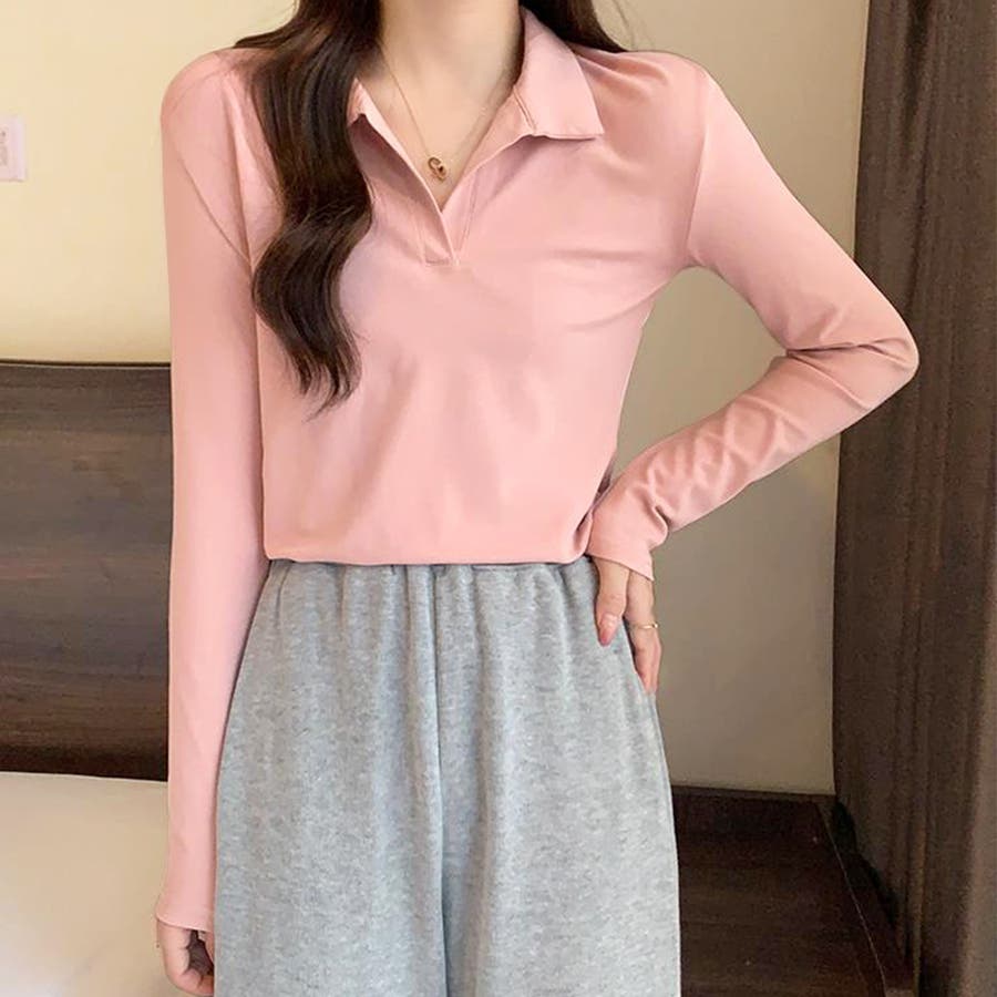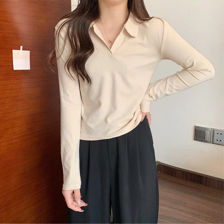・スキッパーカラーで首元すっきり!お気に入りのネックレスを合わせてキレイ目コーデに☆