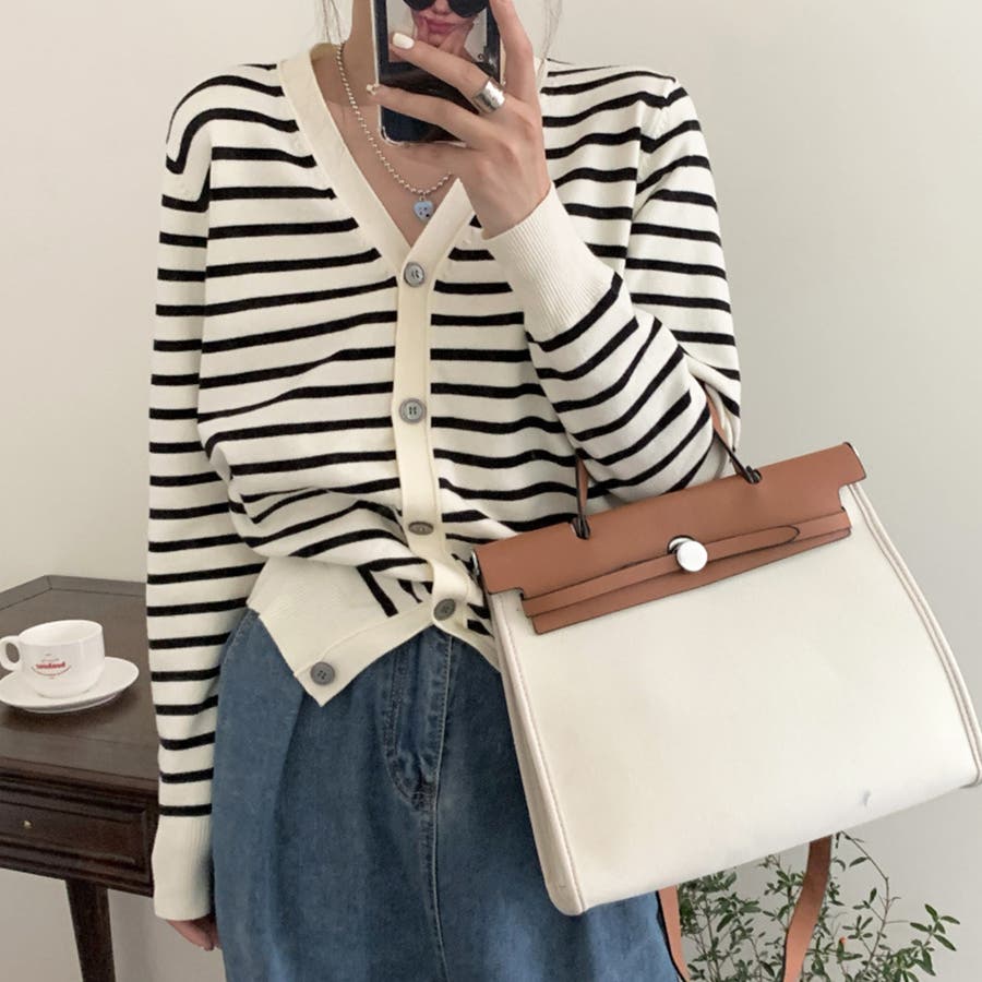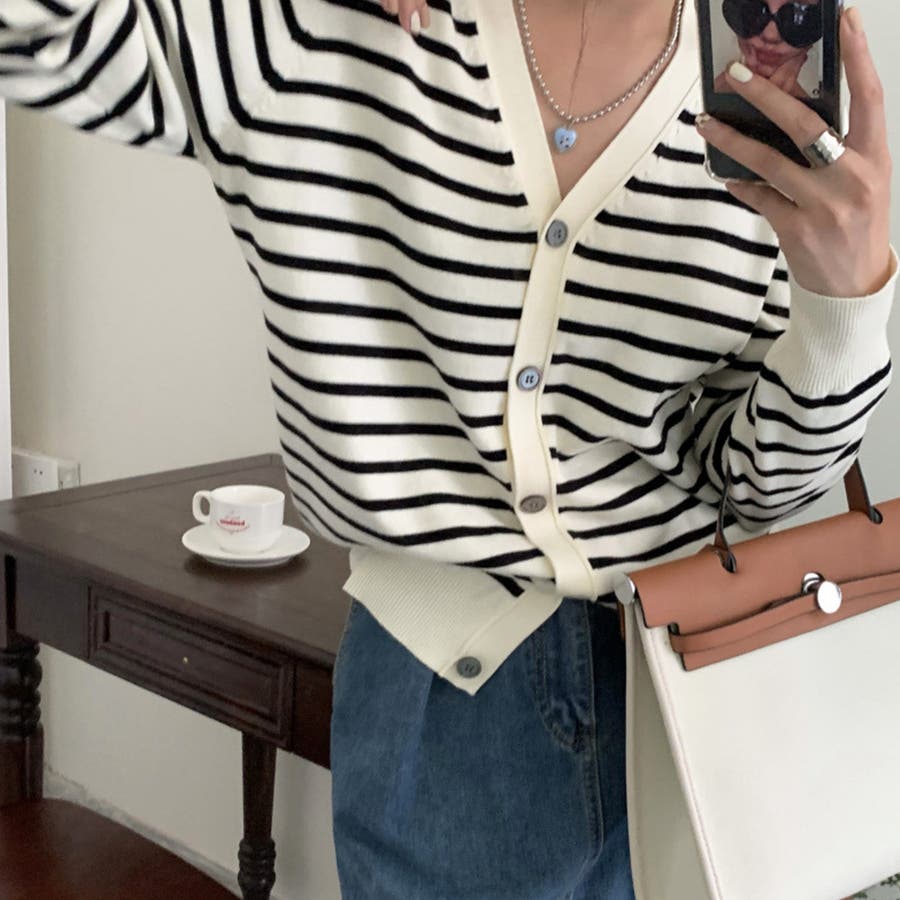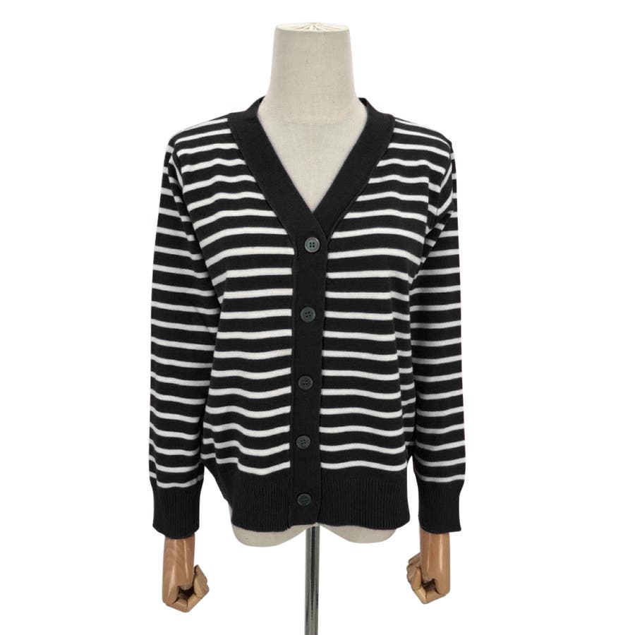 Vネックボーダーカーディガン レディース トップス