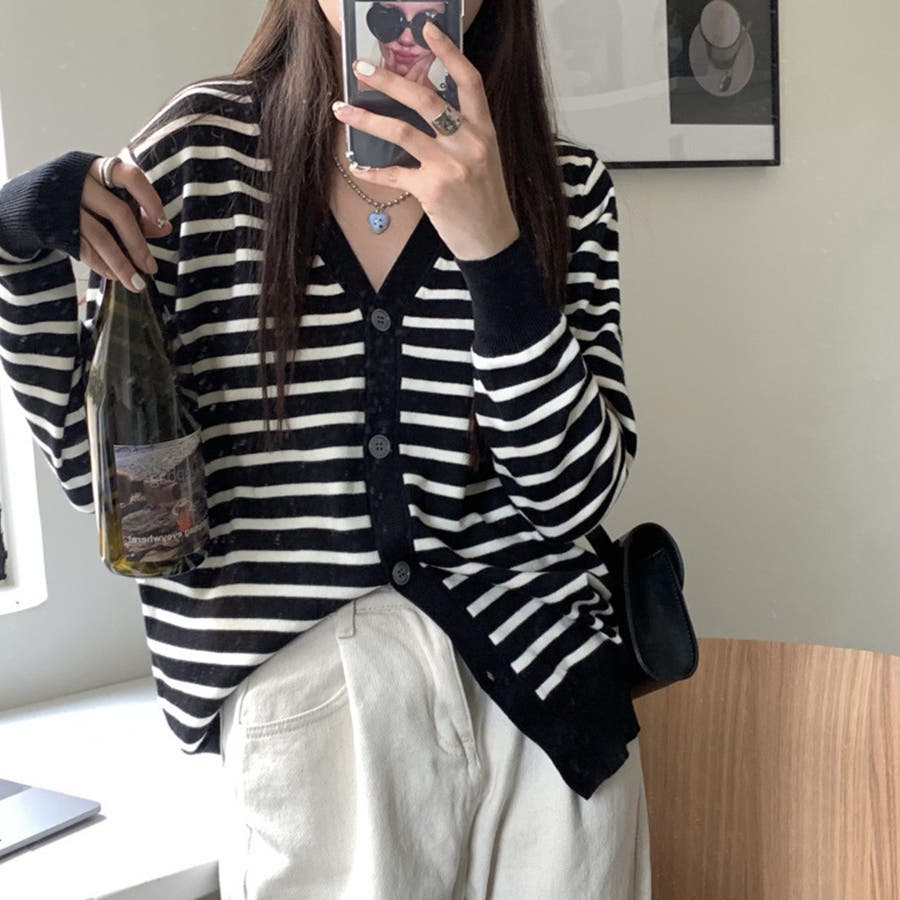 ・シンプルなボーダーがコーデのアクセントに!どんなアイテムにもサッと合わせられる使い勝手の良いカーディガン♪