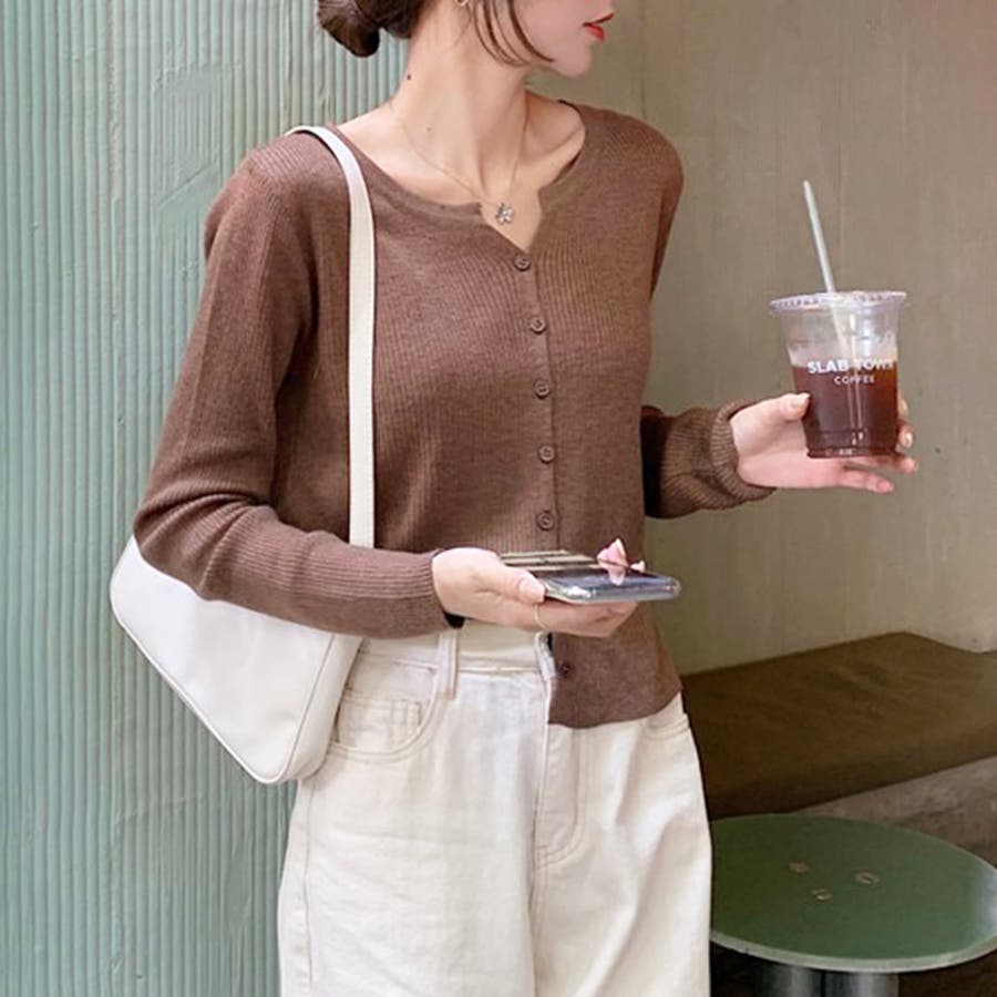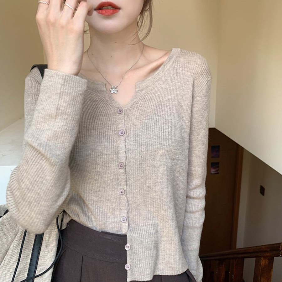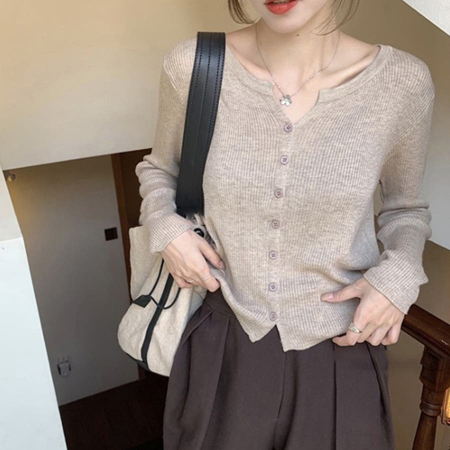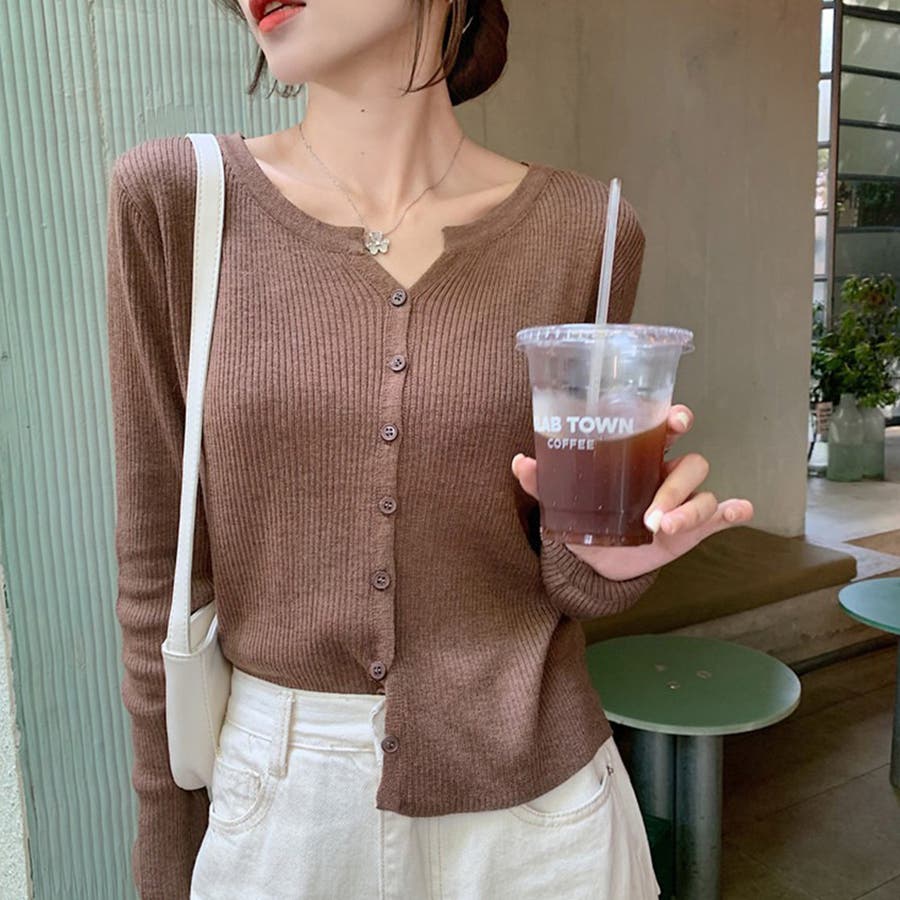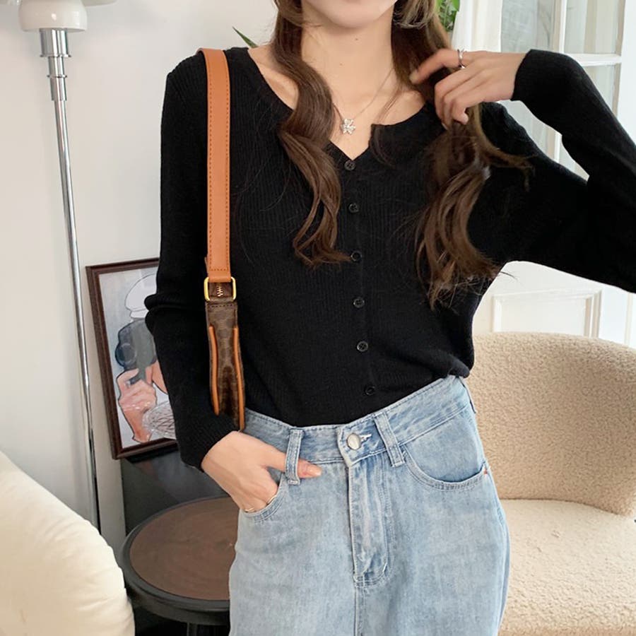 ・スタイル良く魅せる細リブがポイントのシンプルカーディガン。すっきりとした着こなしができるフィット感のあるシルエットです☆