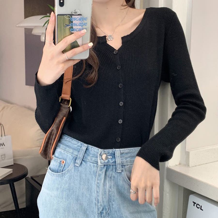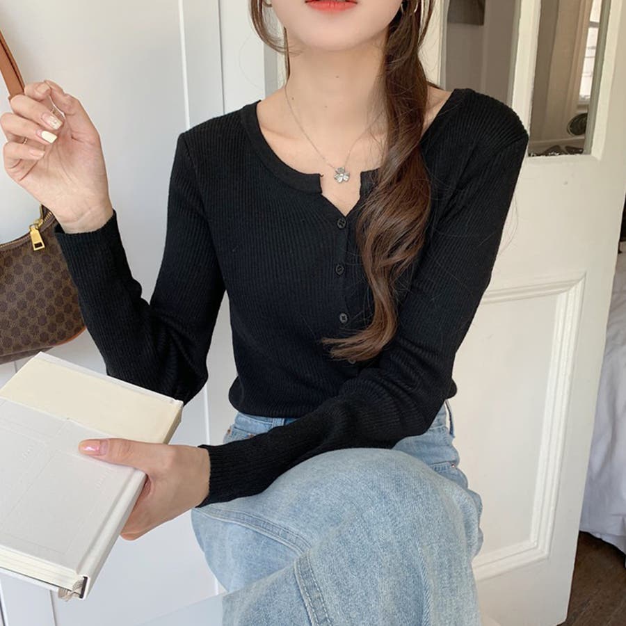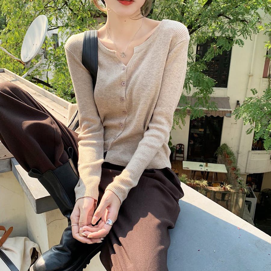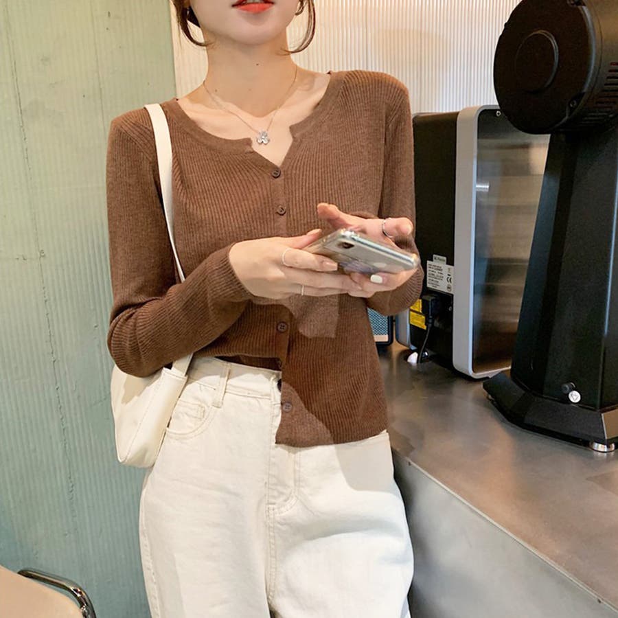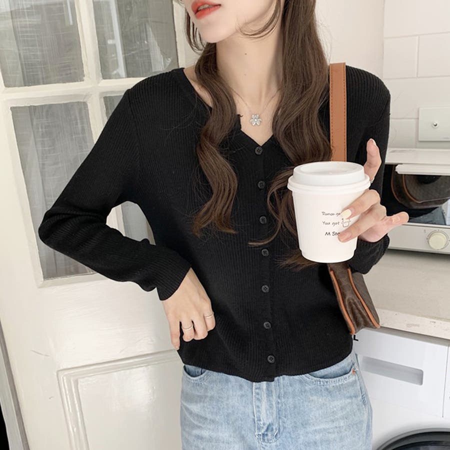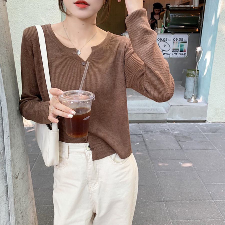 ・スタイル良く魅せる細リブがポイントのシンプルカーディガン。すっきりとした着こなしができるフィット感のあるシルエットです☆