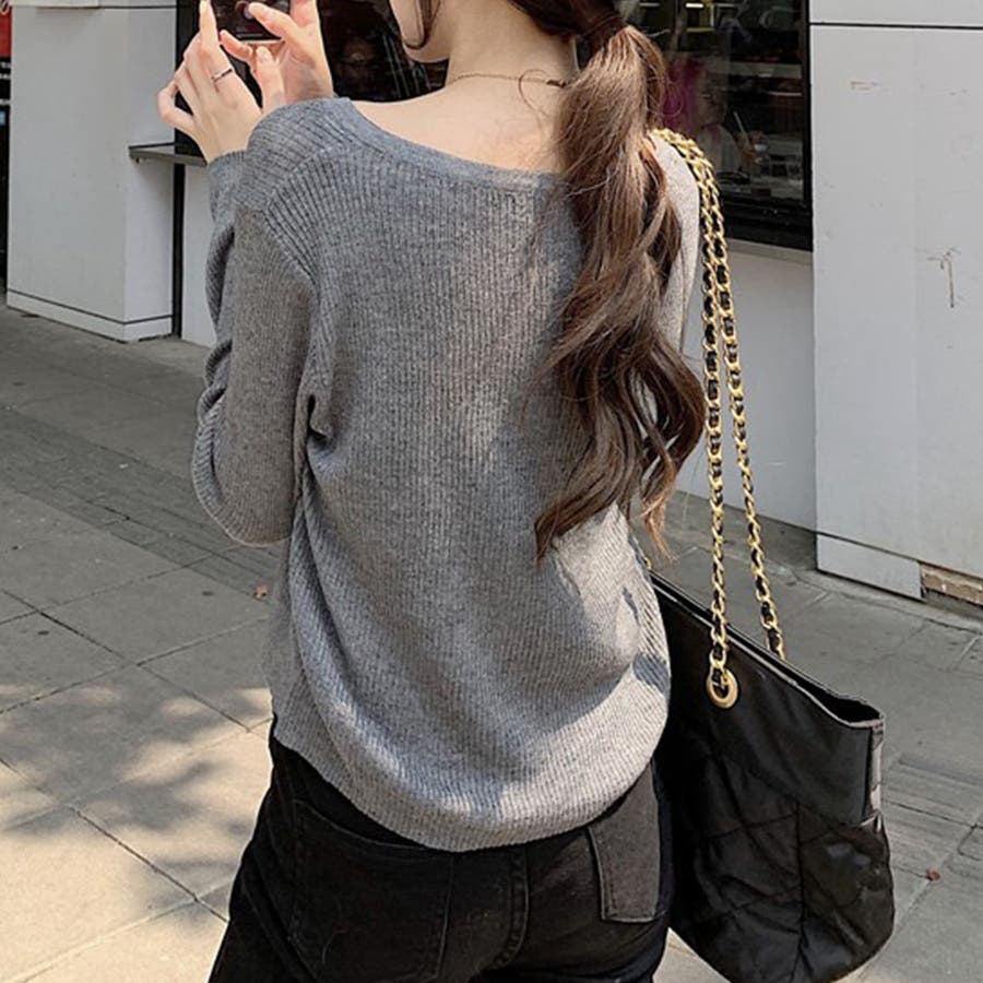 ・上品なクルーネックで柔らかな印象♪ほんのり甘くてセクシーな雰囲気をプラスした大人のキレイ感が魅力的!