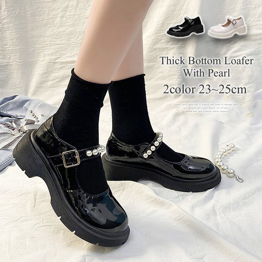パール付き厚底ローファー レディース シューズ