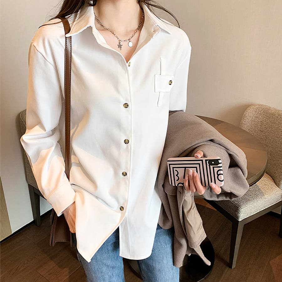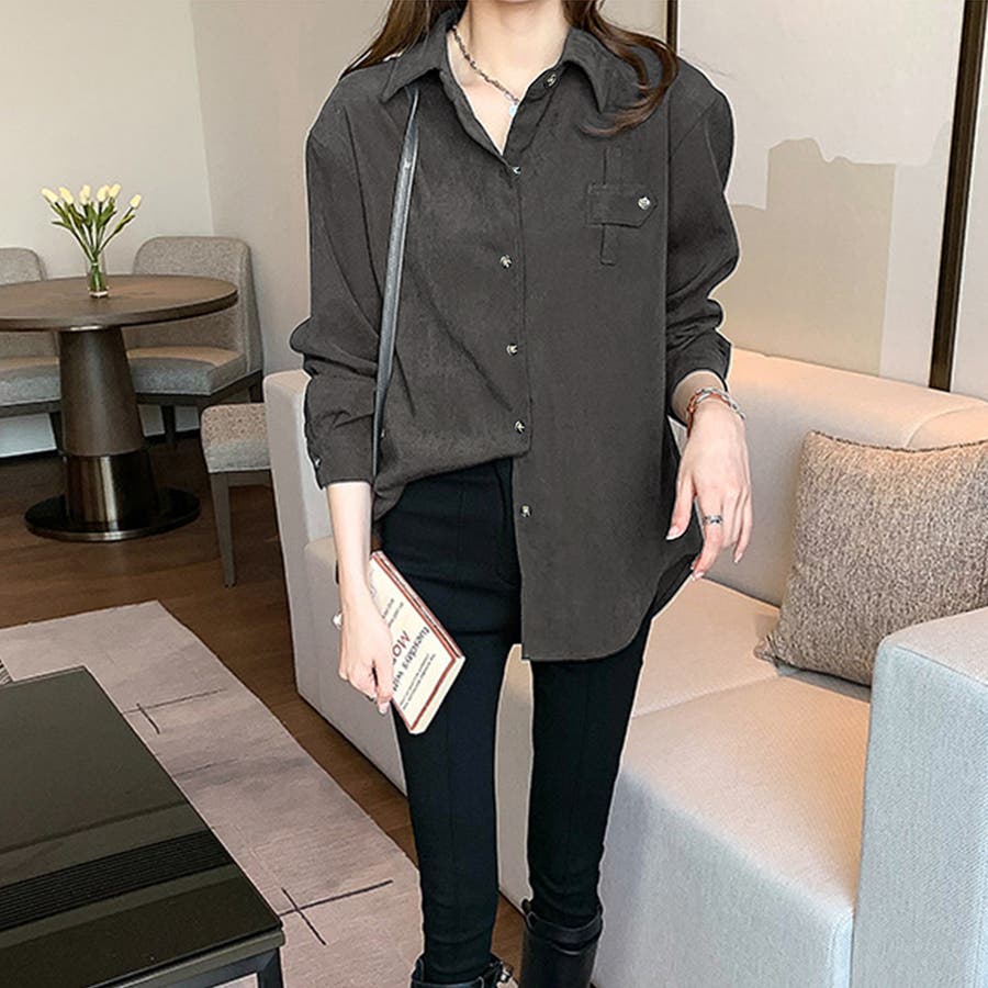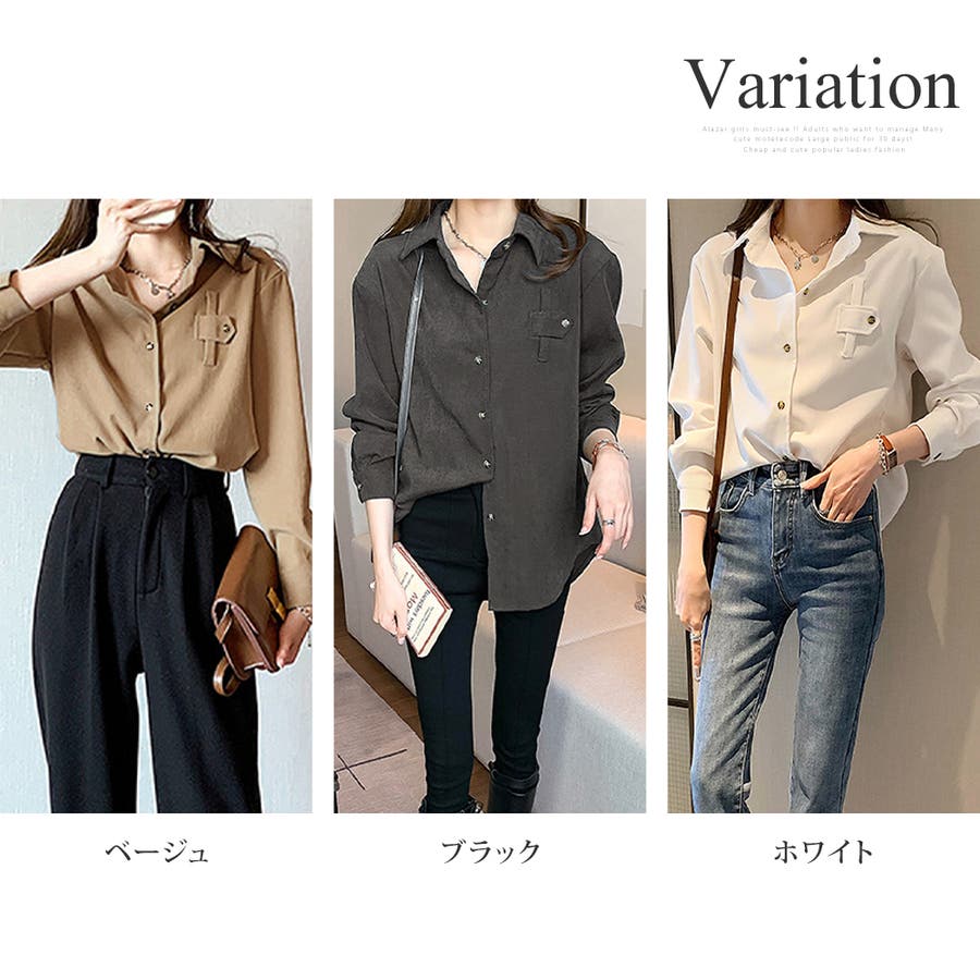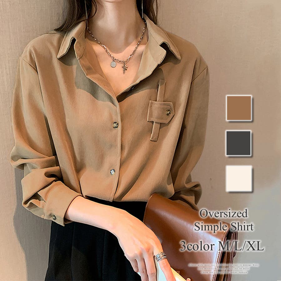 ・シンプルなシャツにポイントとなる胸元のデザイン。一枚でも着られる着こなしが楽ちんなシャツ♪