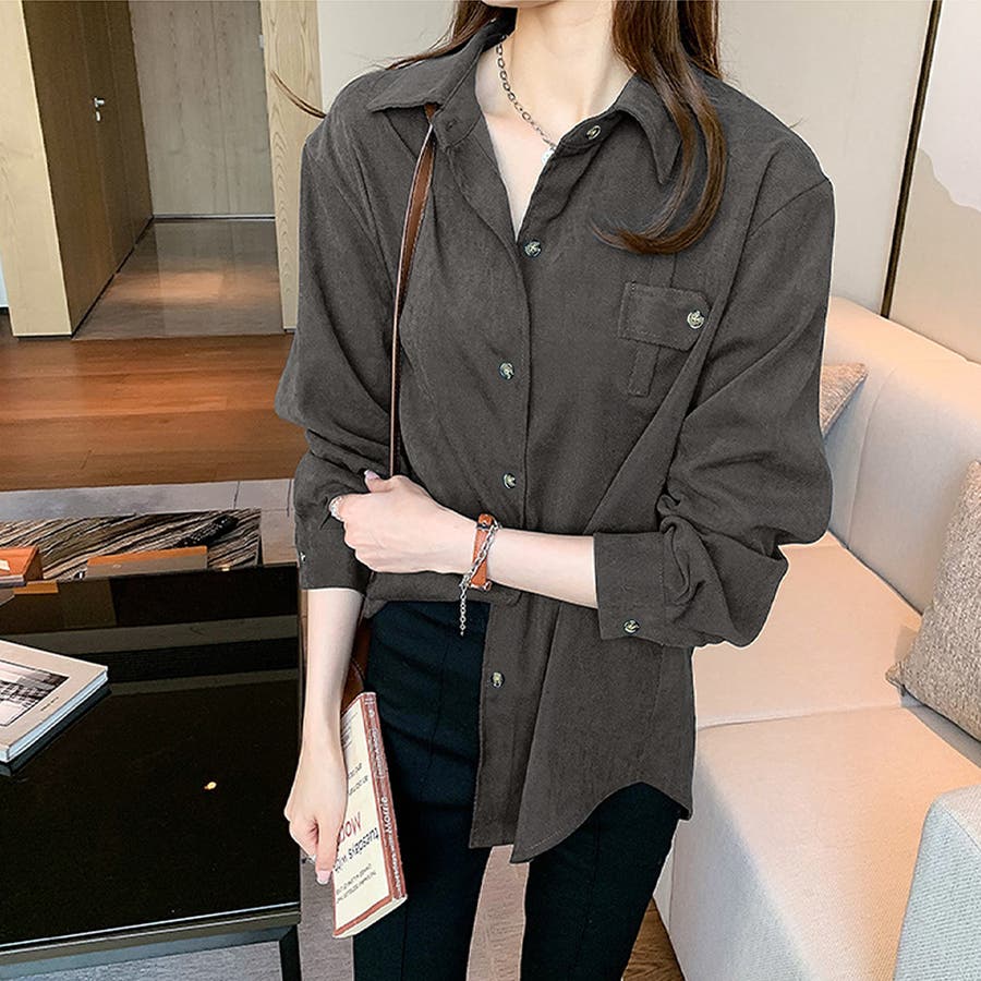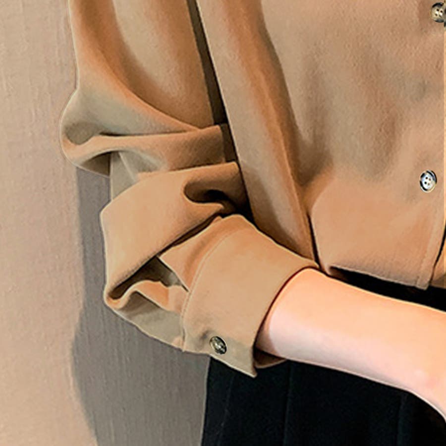 色は黒に近いグレーで、少し厚めのブラウスを探していたので、とても気に入りました。さん (40代 / 女性 / 身長155~160cm / 体重50~54kg)購入アイテム:カラー ブラックサイズ Mいつものトップスサイズ:Mサイズ感:ぴったり - やめたほうかよい