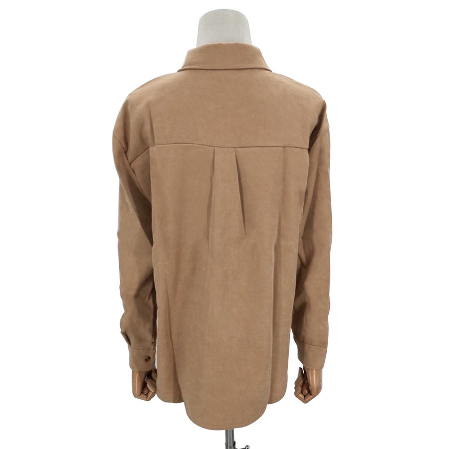 大きめに着たくてXLにしました。ちょうど良いです。到着時は多少のシワがありましたがアイロンをかけるととても綺麗になり、生地感が高見えして素敵です。しっかりしていて暖かめなので秋から春まで着れそうです。