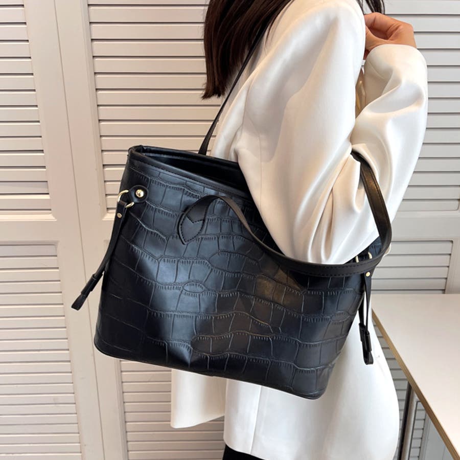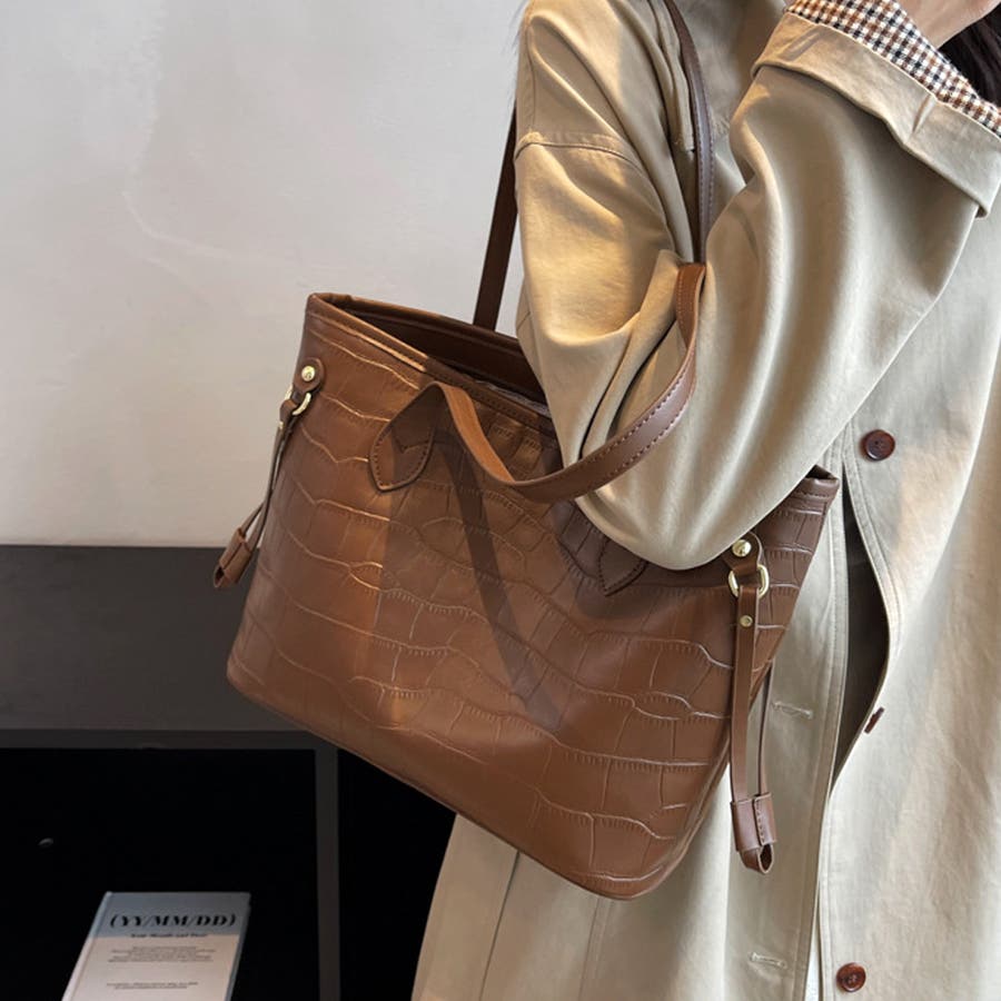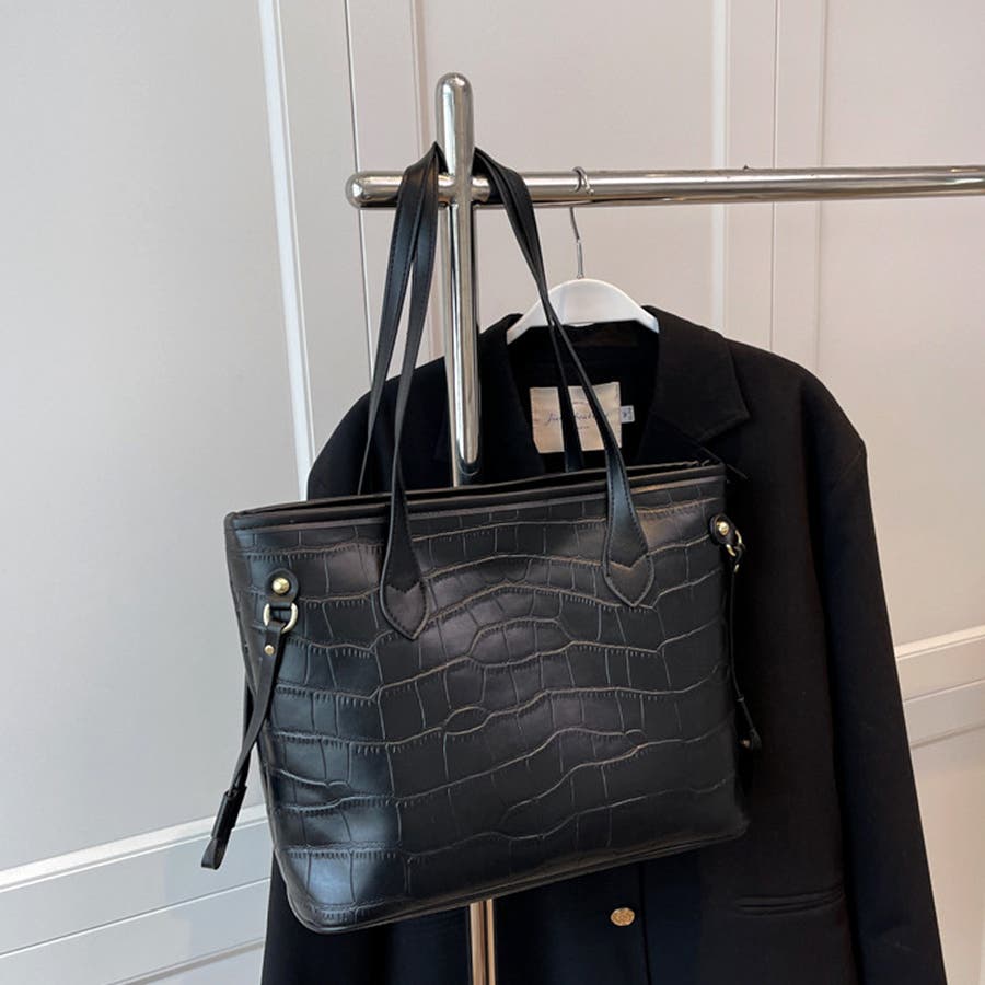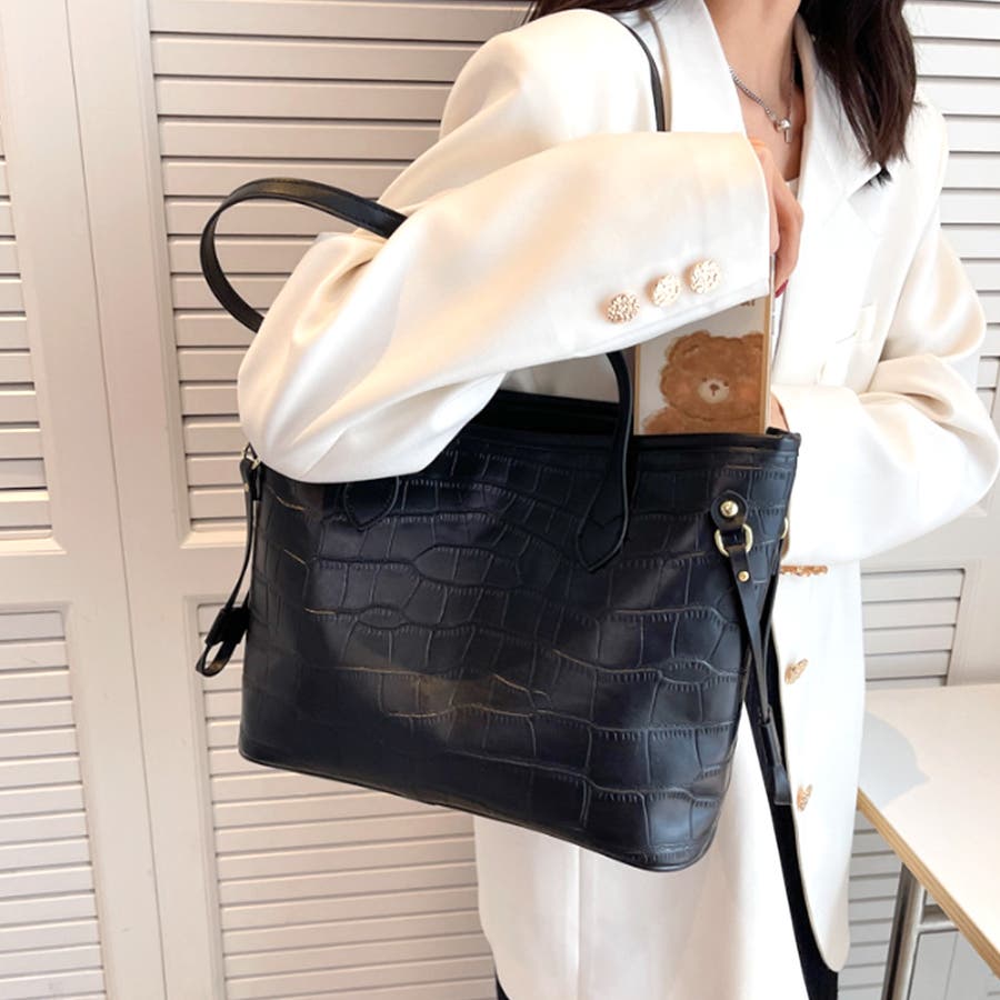 ・クロコ型押しデザインが大人っぽい印象に♪汚れにも強く雨の日も使えるので、オールシーズンお使いいただけます。