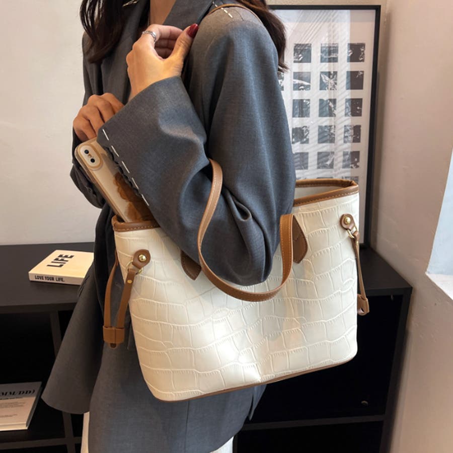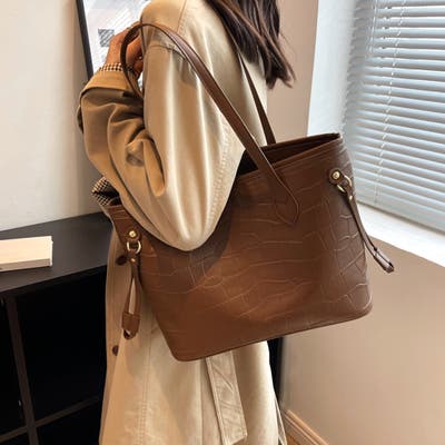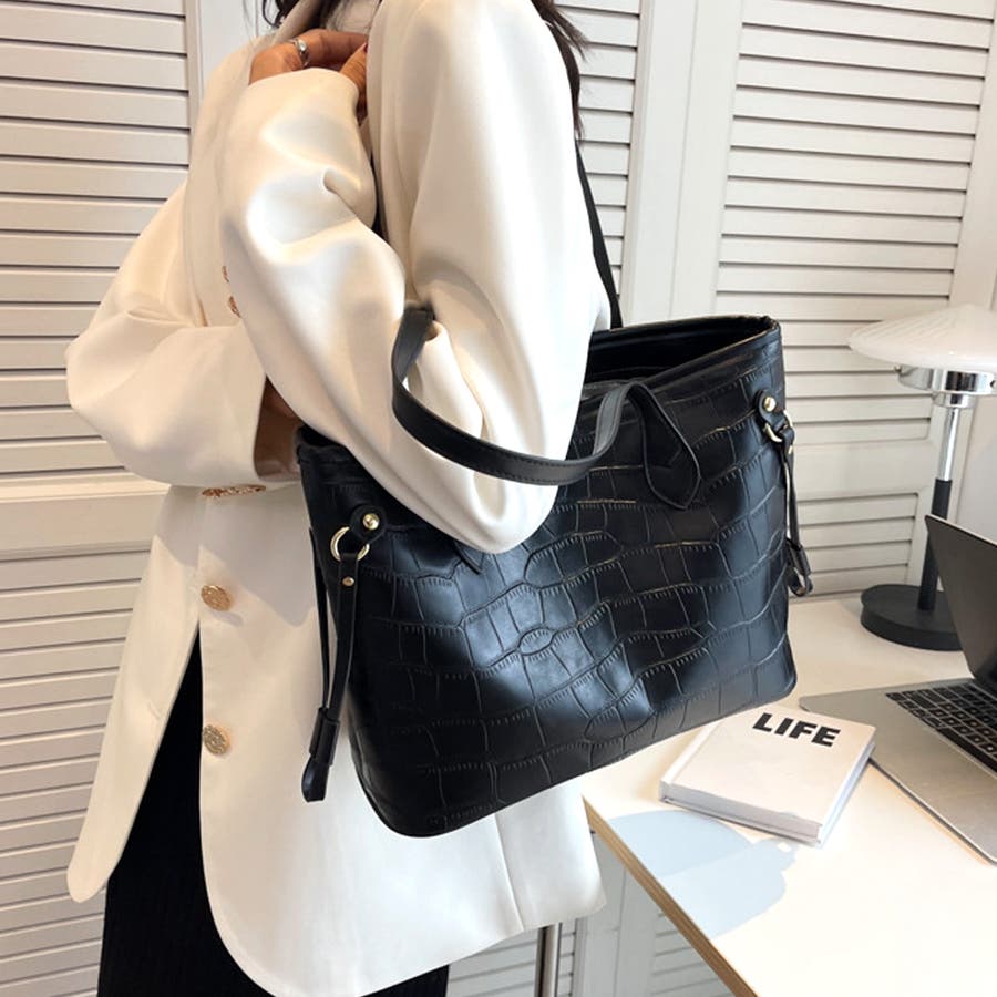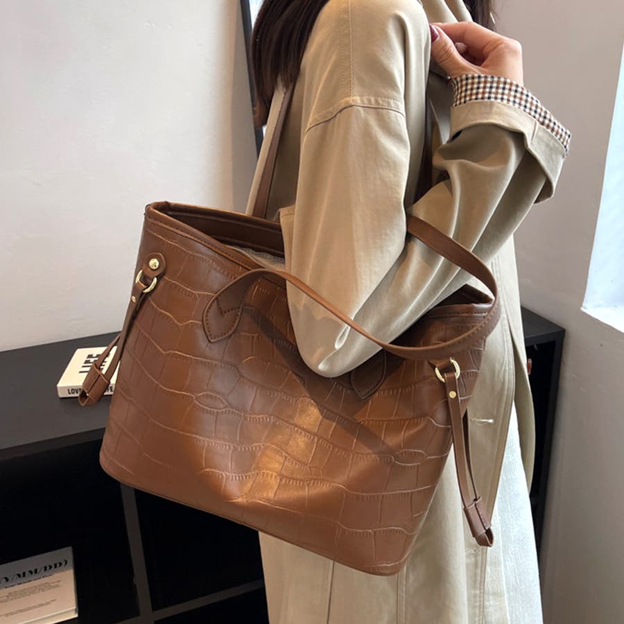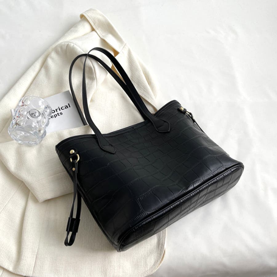 ・クロコ型押しデザインが大人っぽい印象に♪汚れにも強く雨の日も使えるので、オールシーズンお使いいただけます。