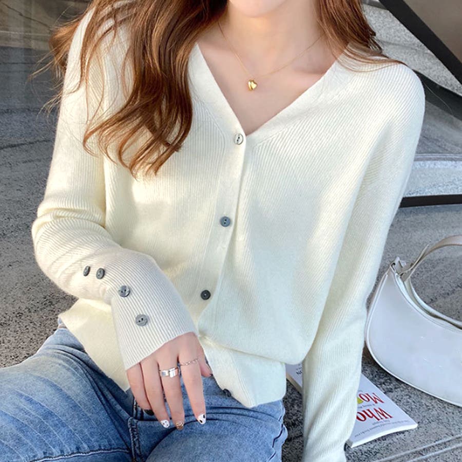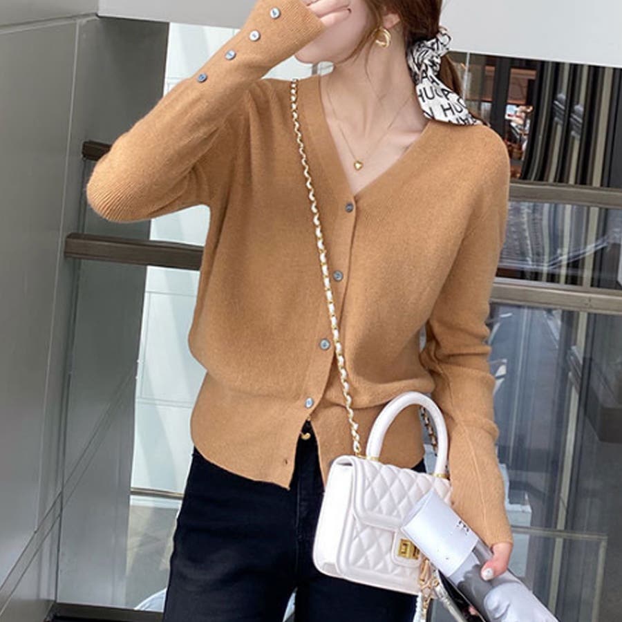 Vネックニットカーディガン レディーストップス 長袖