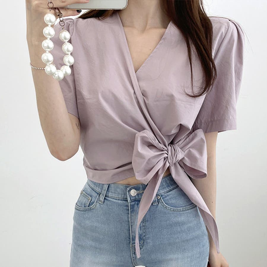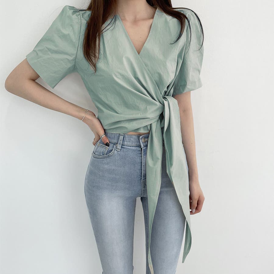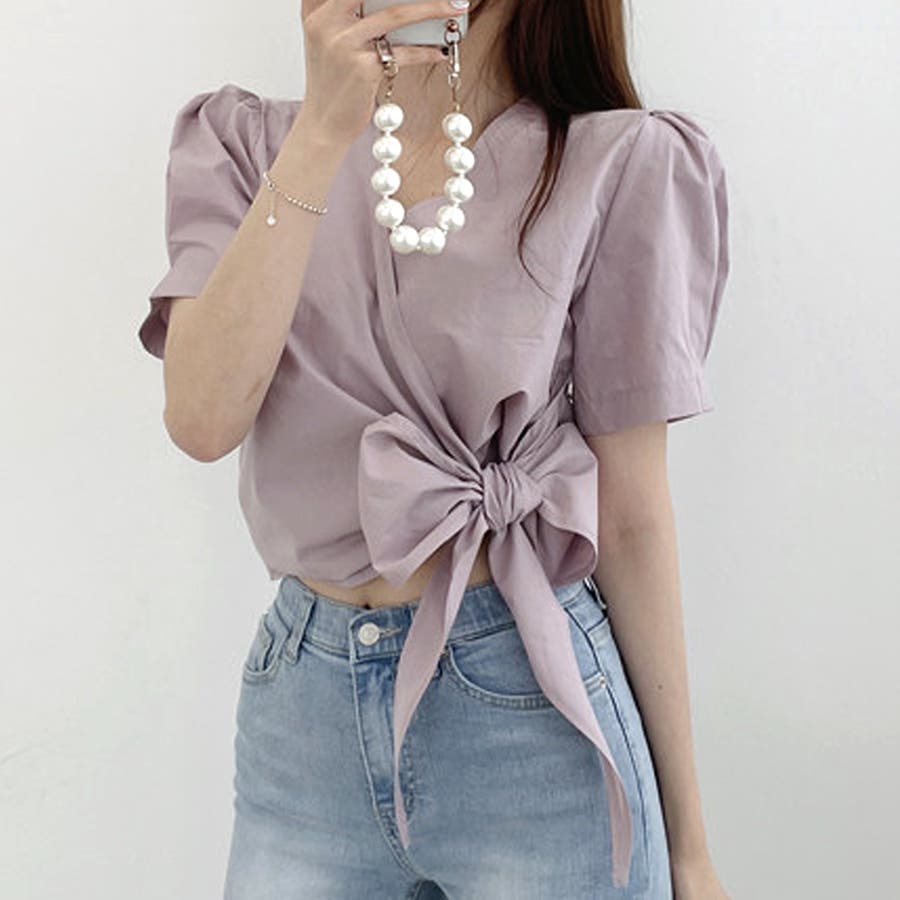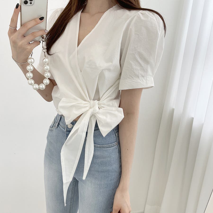 ・フロントで交差させて結ぶ大きめのリボンが印象的で、着こなしのアクセントとして目を引くこと間違いなし!