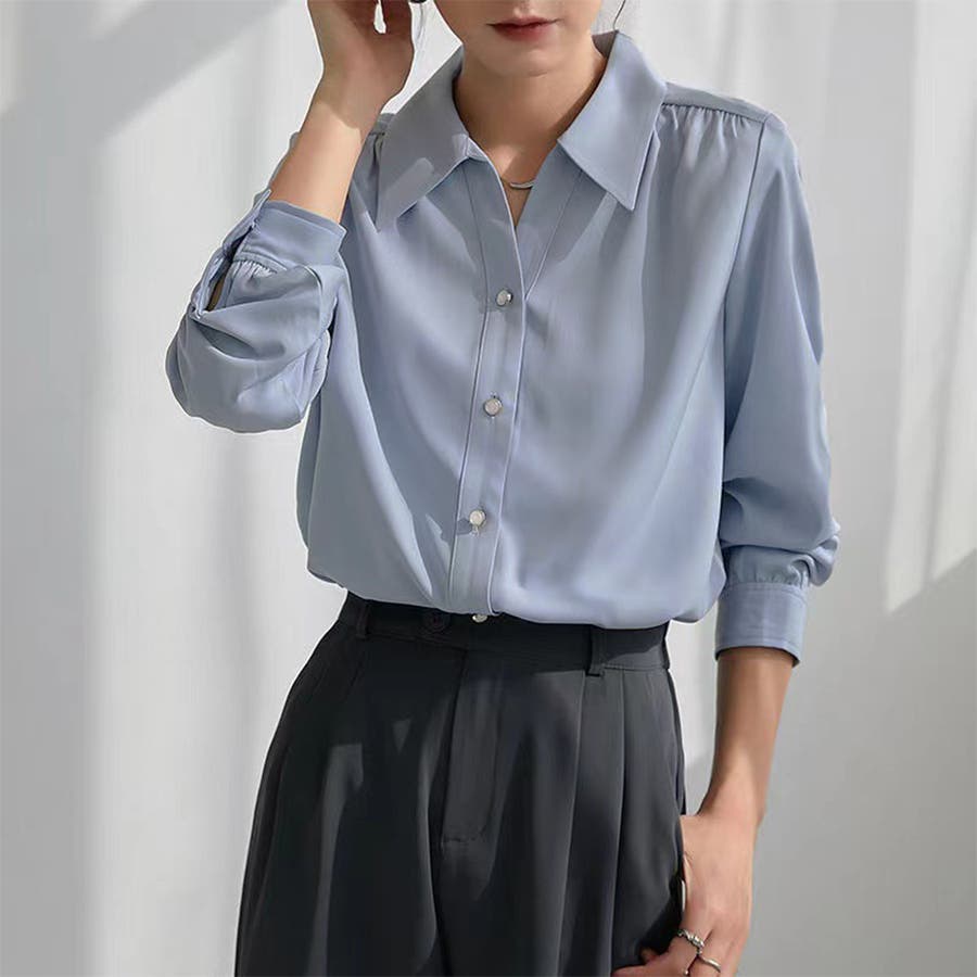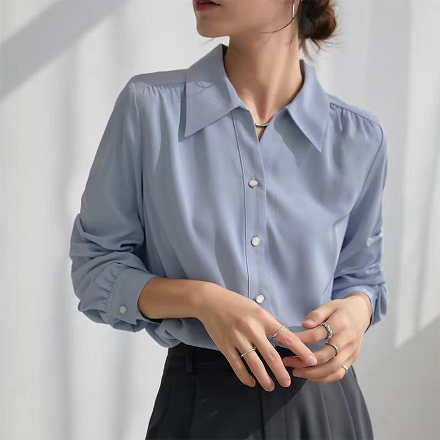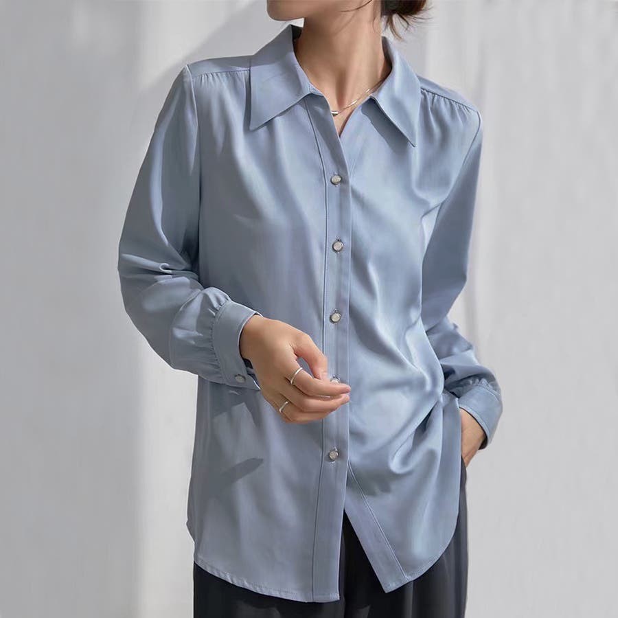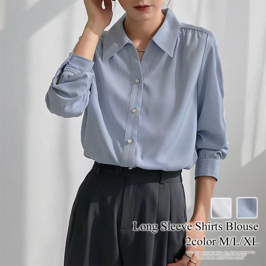 ・シンプルでキレイめのブラウス。上品なカラーは休日から職場まで、様々なシーンで着用できる♪