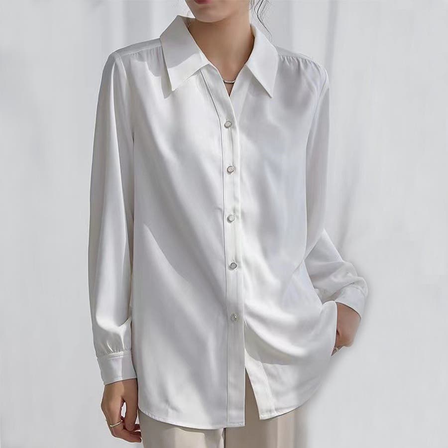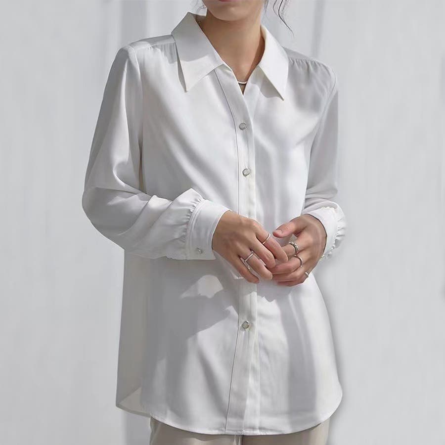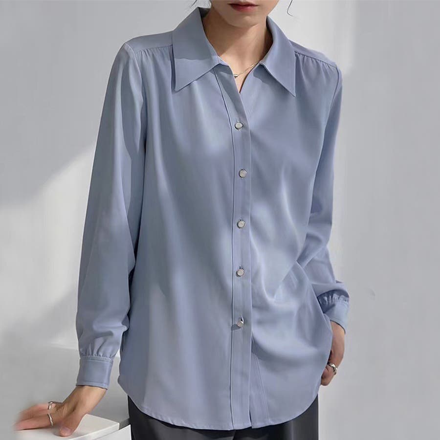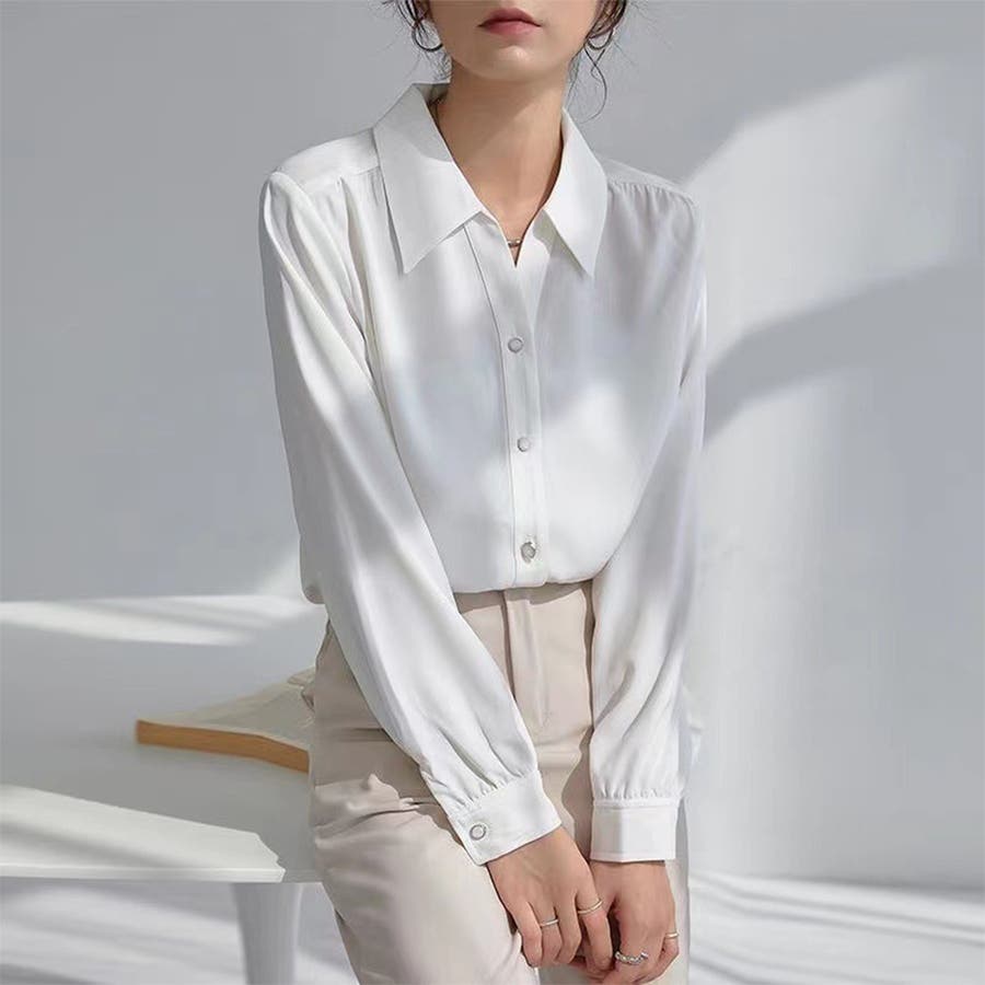 ・シンプルでキレイめのブラウス。上品なカラーは休日から職場まで、様々なシーンで着用できる♪