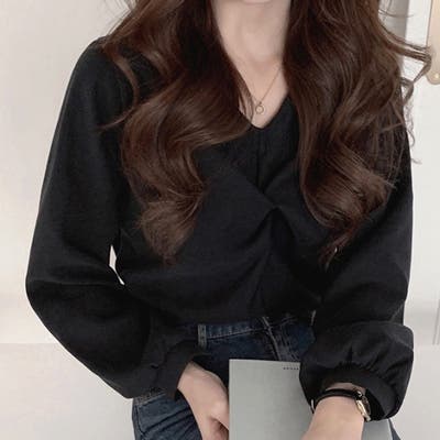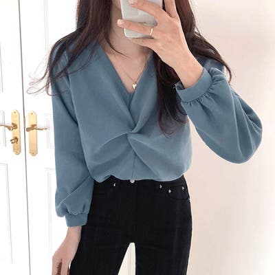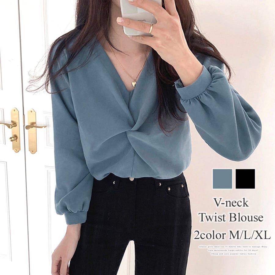 Vネックツイストブラウス レディース オフィス