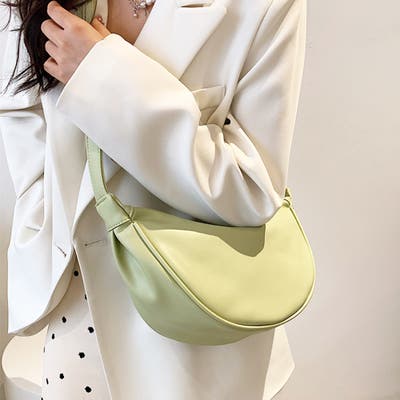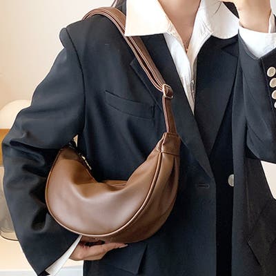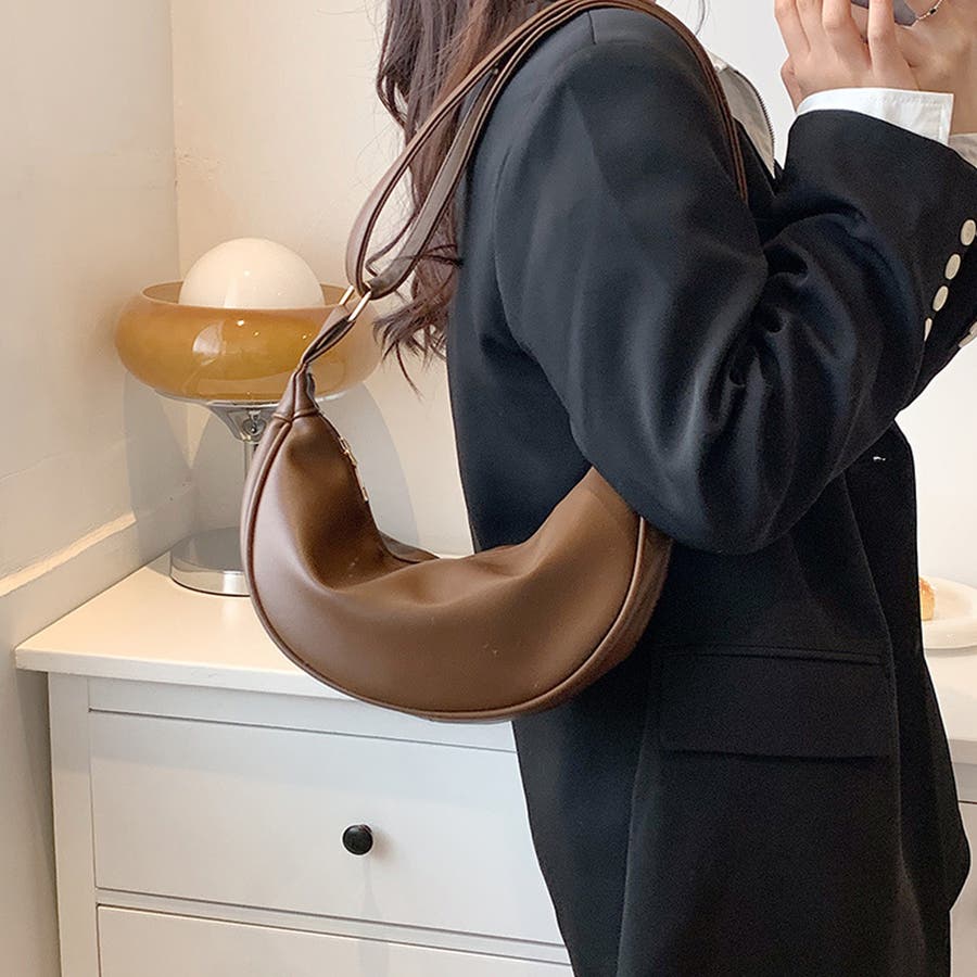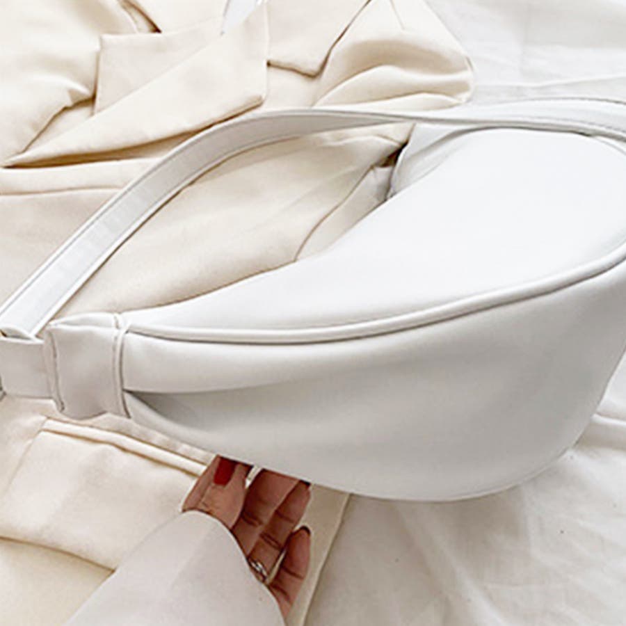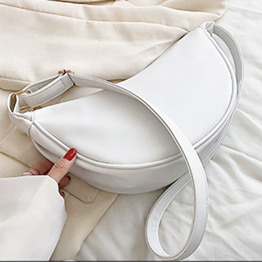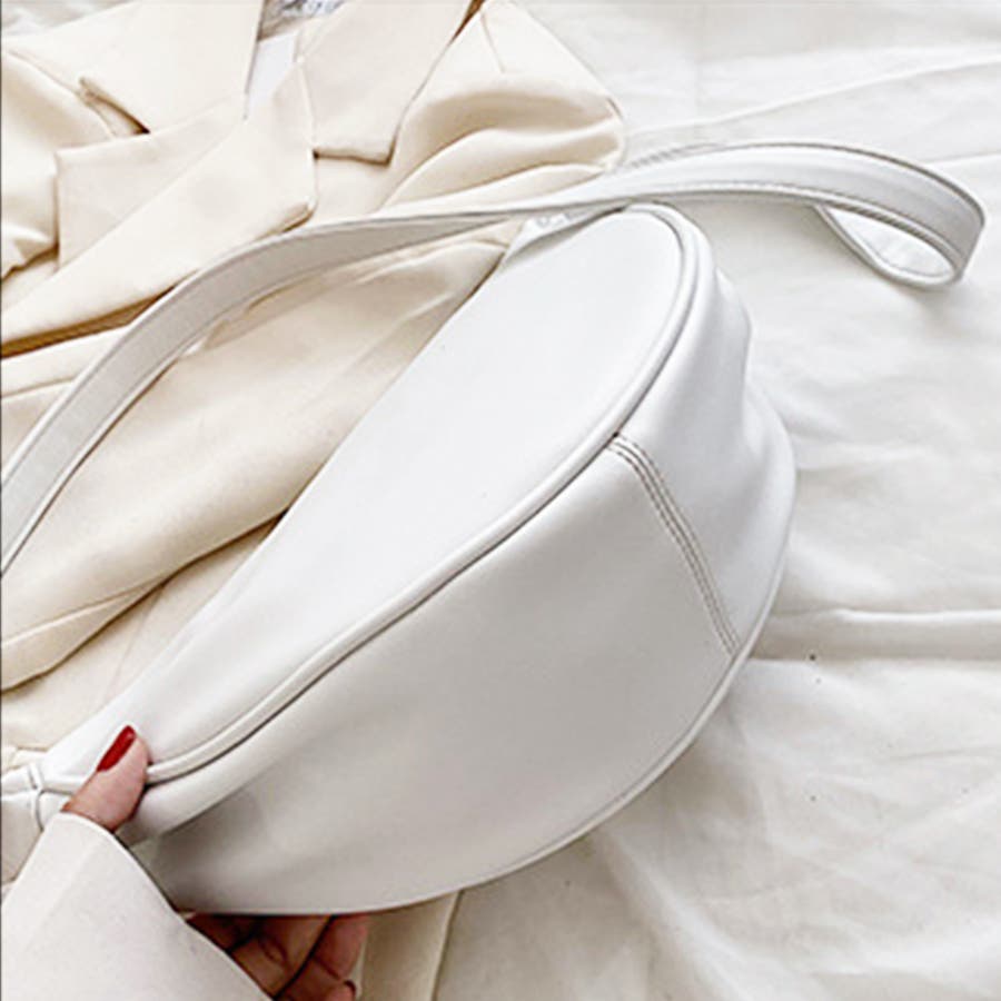 ・丸みのあるハーフムーン型がかわいい♪ワンポイントコーデに取り入れたくなる可愛いさ。シンプルなデザインで、ほど良いサイズ感が嬉しい!