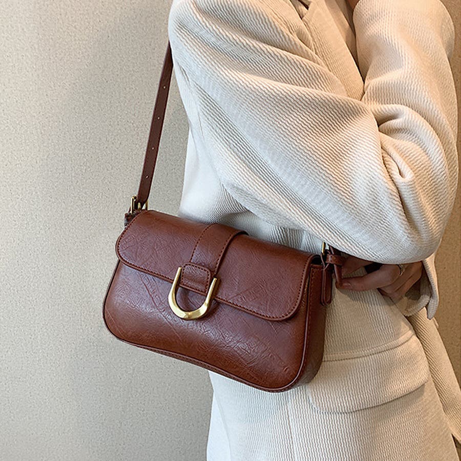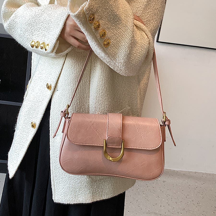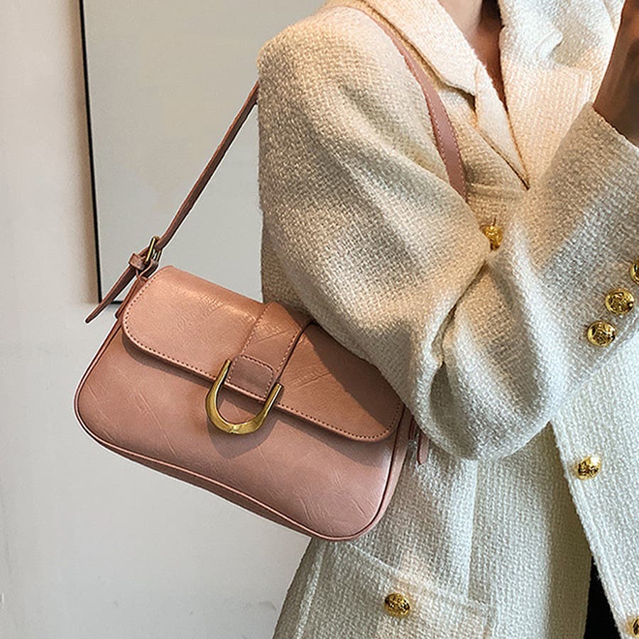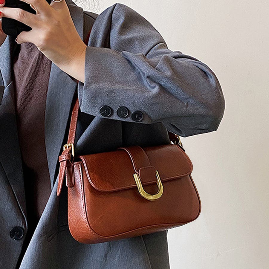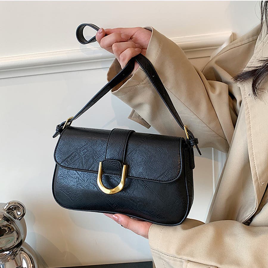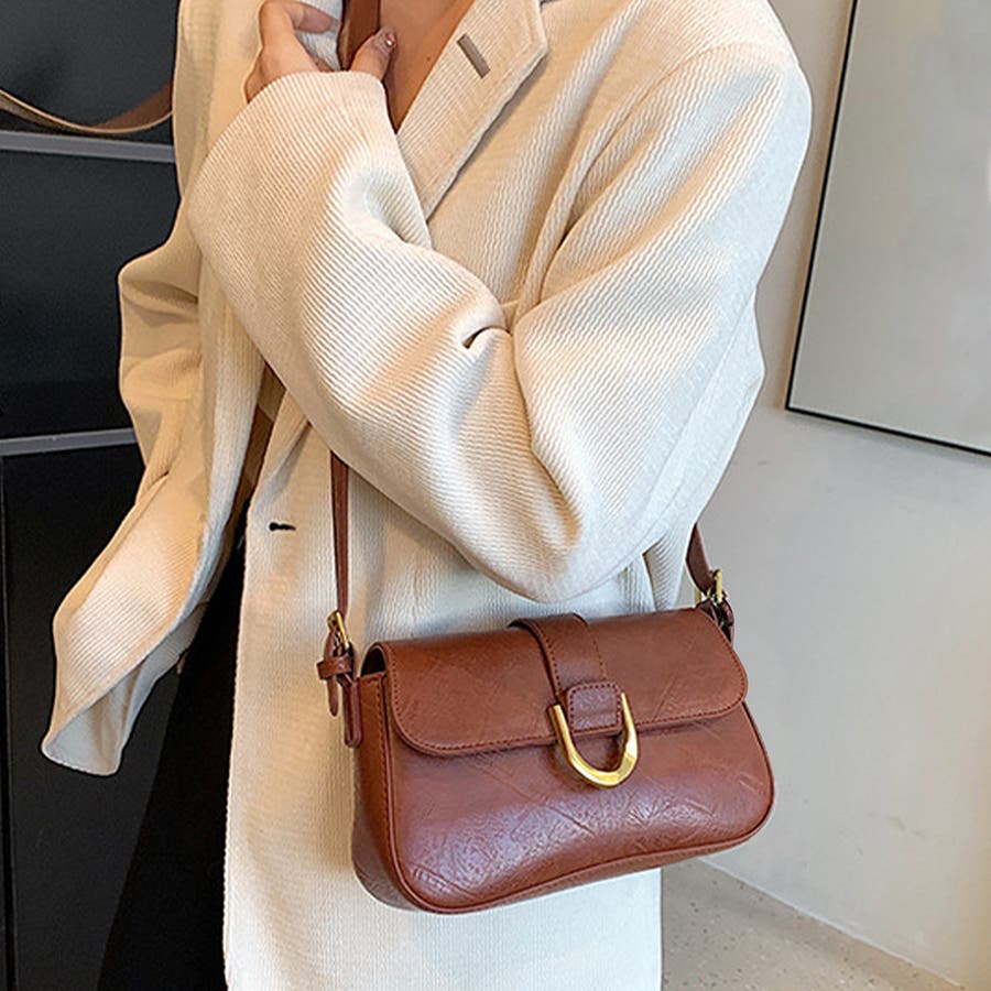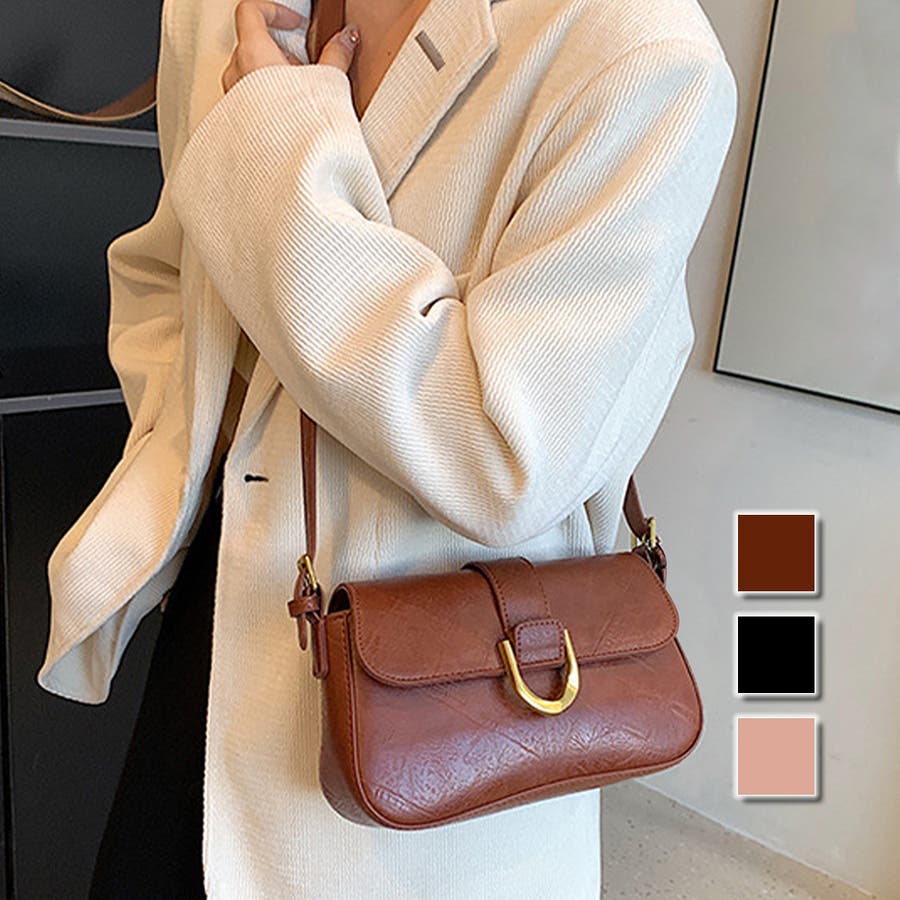・落ち着いた色味とデザイン。ゴールドのバックルに目が惹きつけられる大人な雰囲気の2WAYバッグ!派手じゃないのでコーディネートしやすい♪