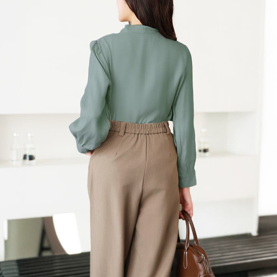 ・上品な光沢のある生地感で大人っぽい。大人女子の余裕を感じさせるブラウス!しっとり落ち着いたカラーバリエーションも色っぽい。