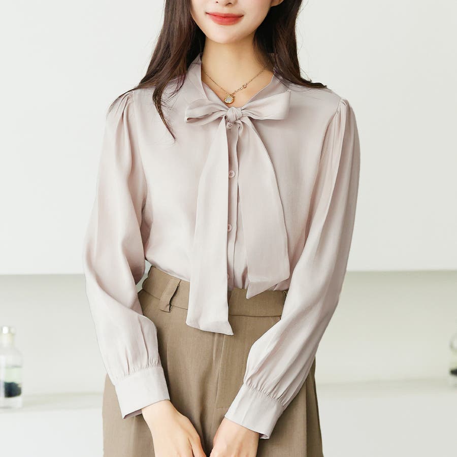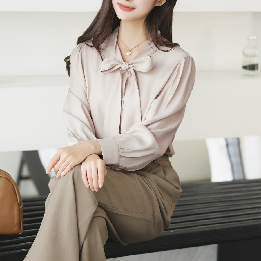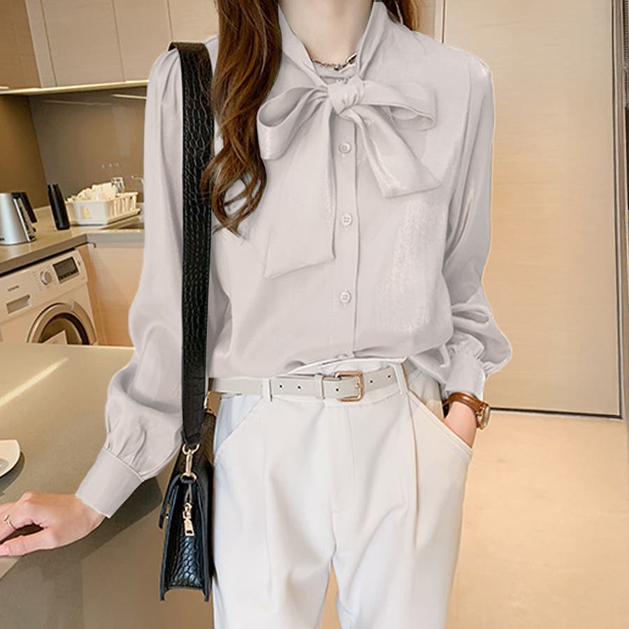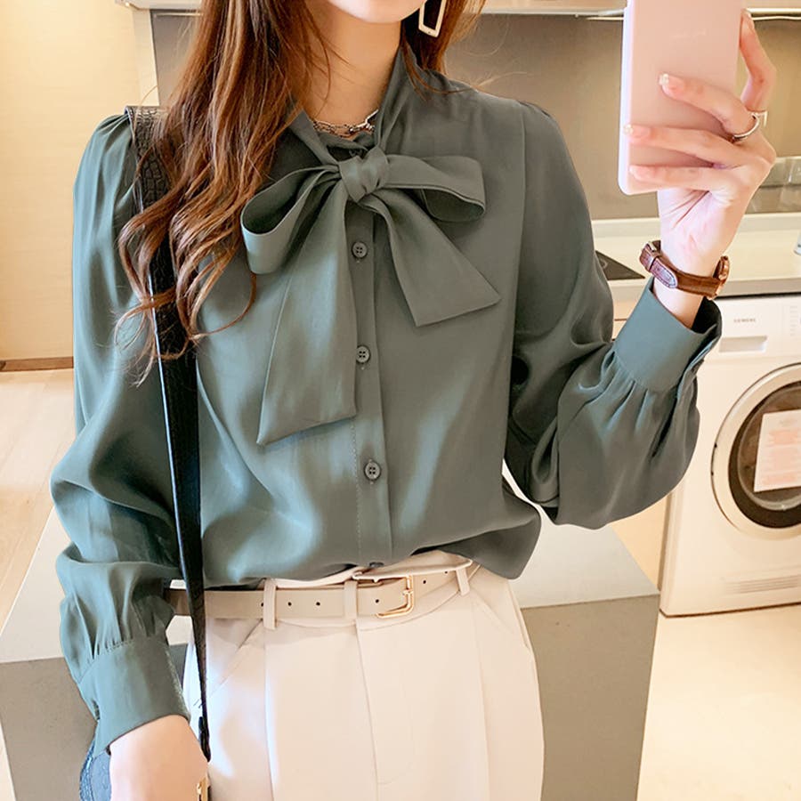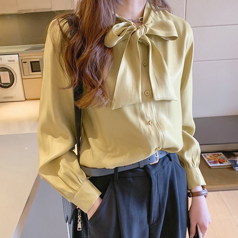 サテン風リボンブラウス レディース オフィス