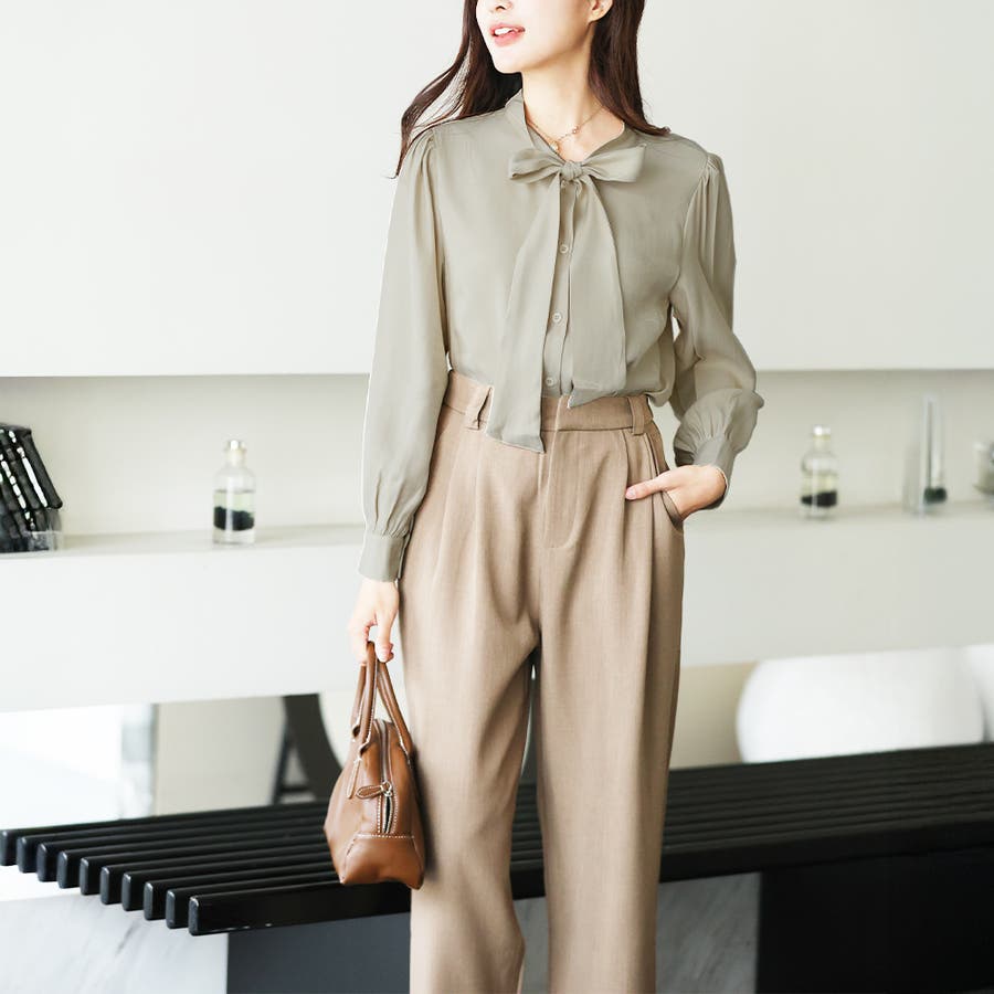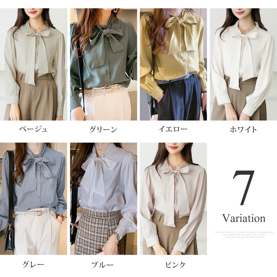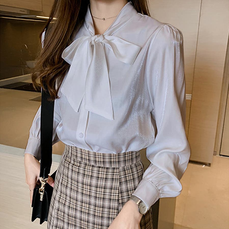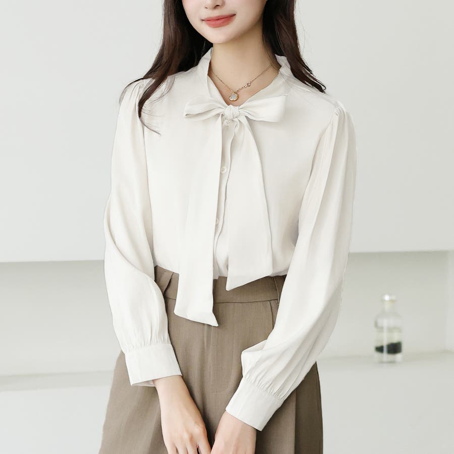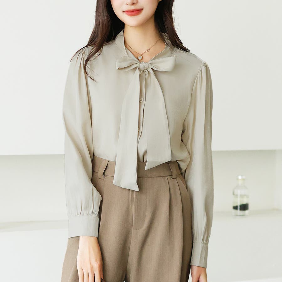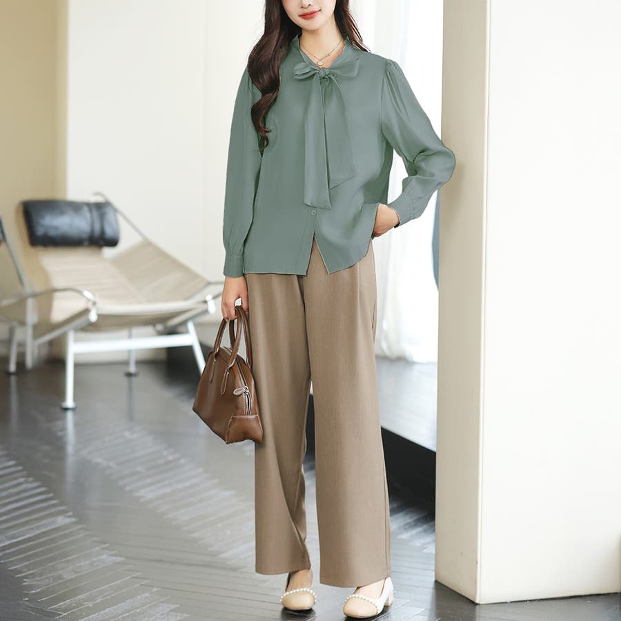 サテン風リボンブラウス レディース オフィス