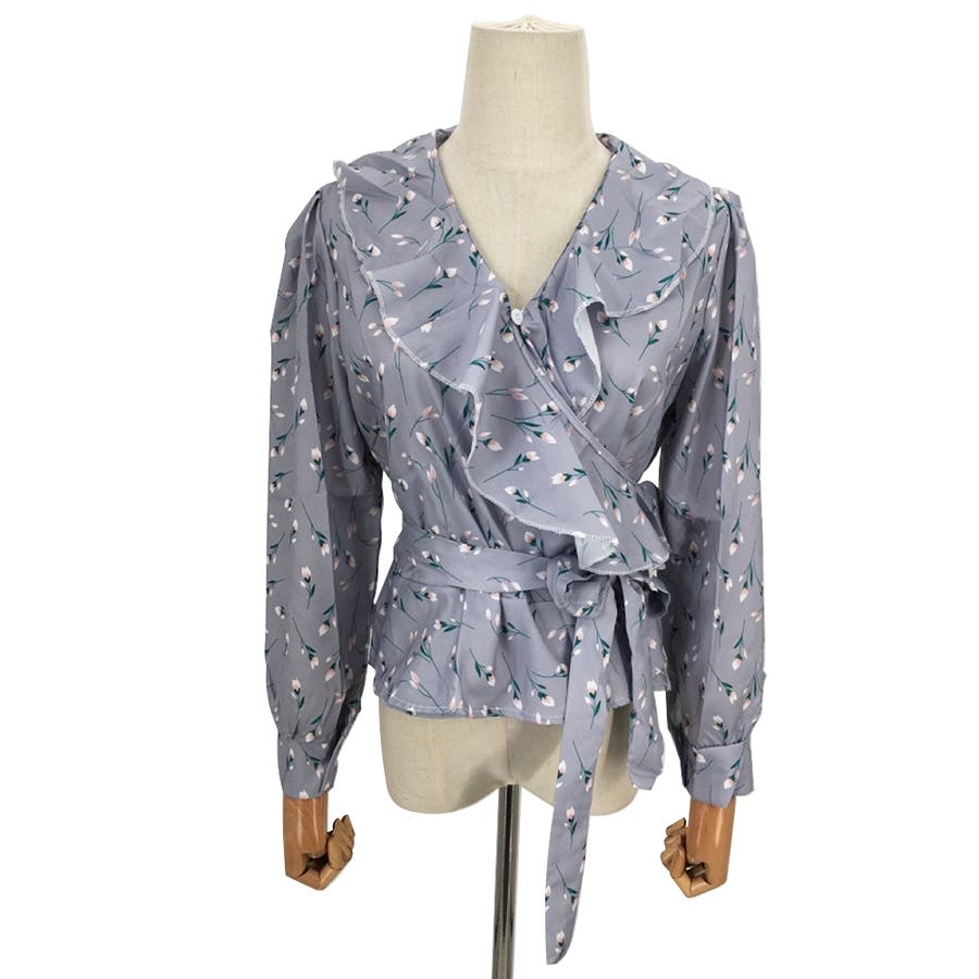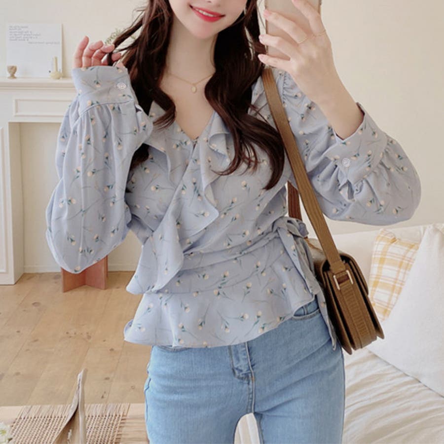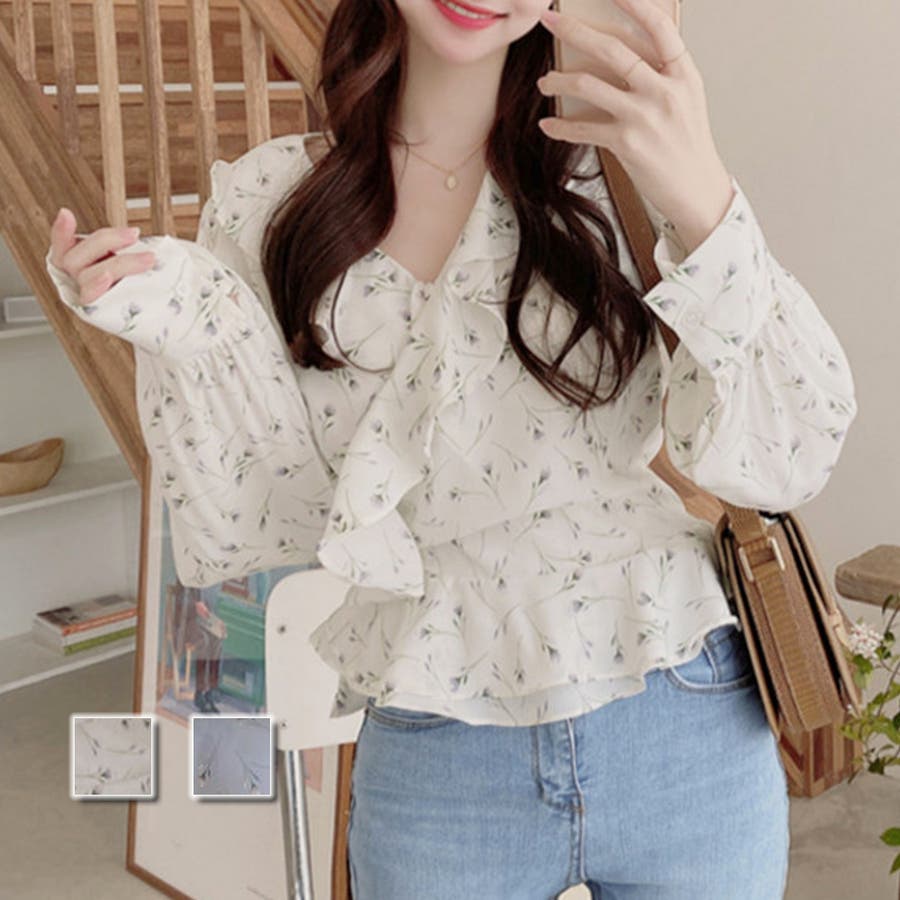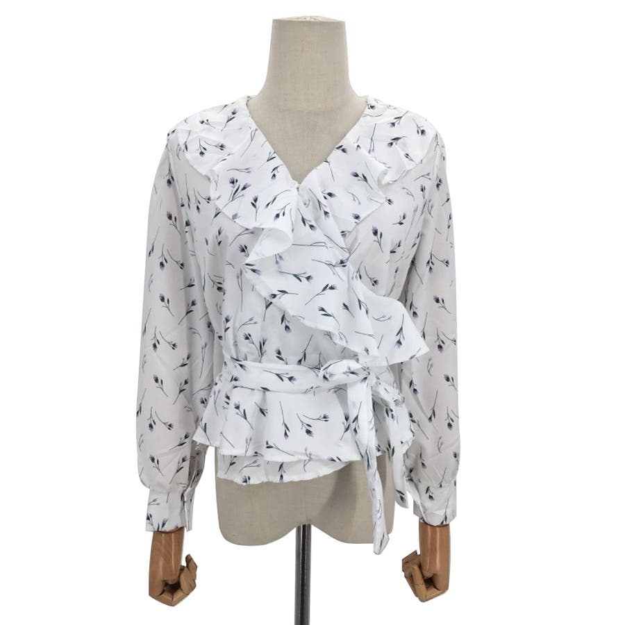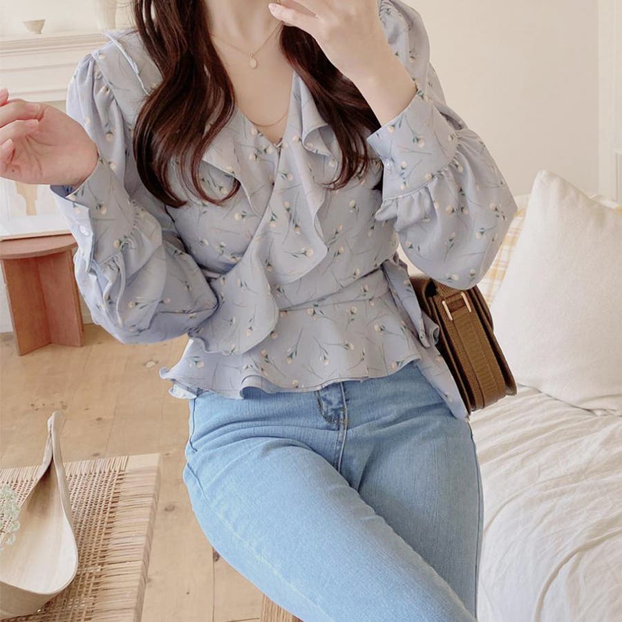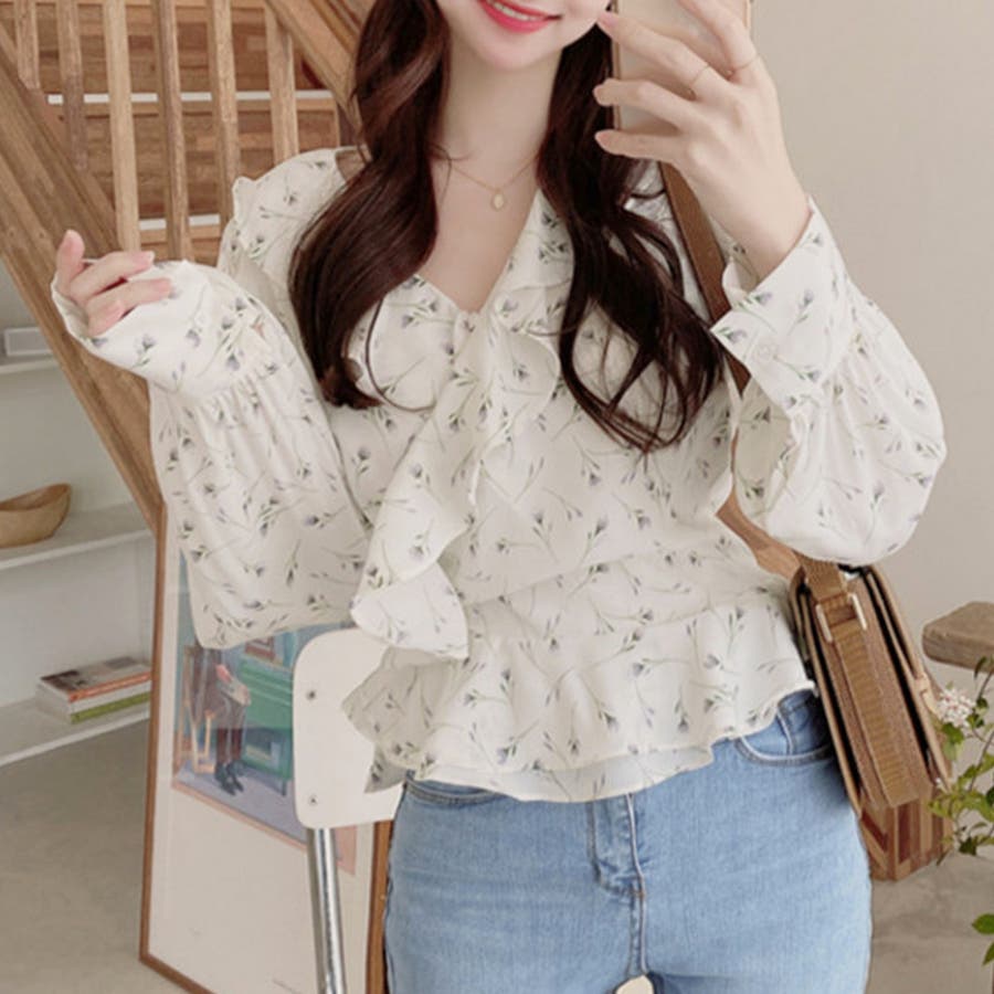 Vネック花柄ブラウス レディース トップス