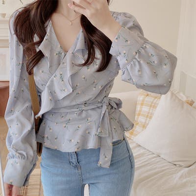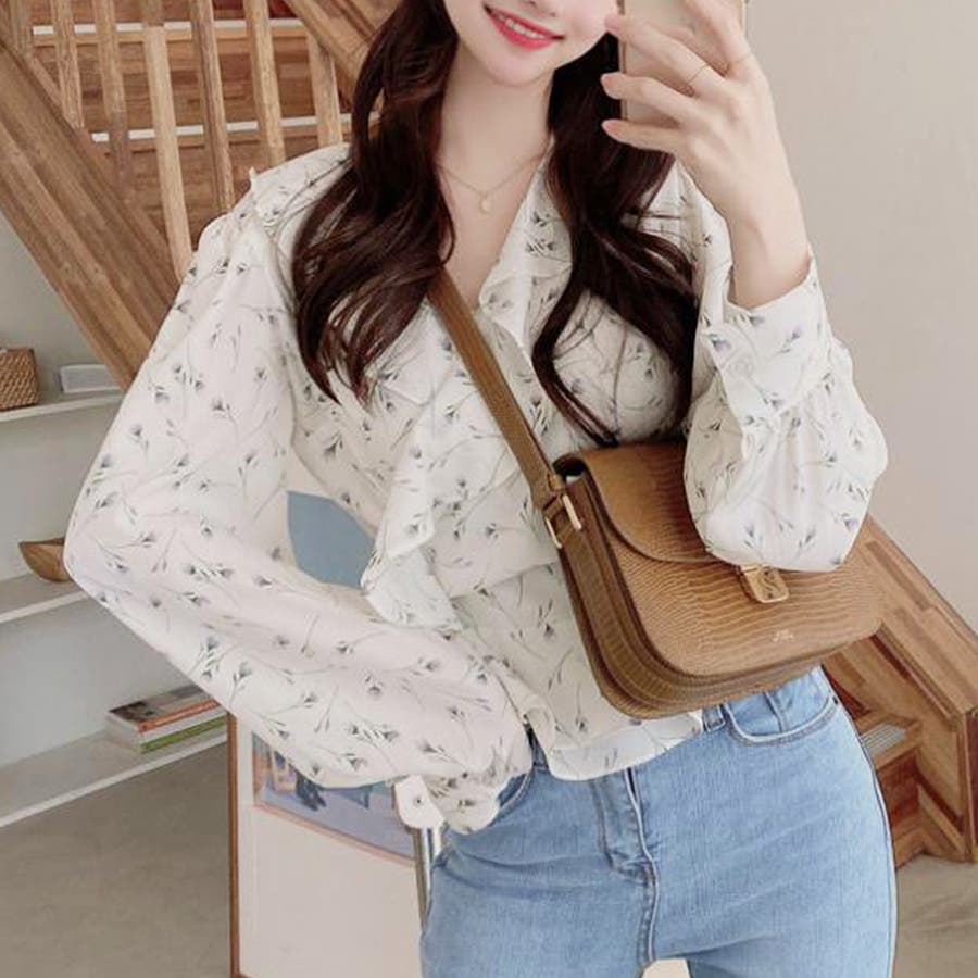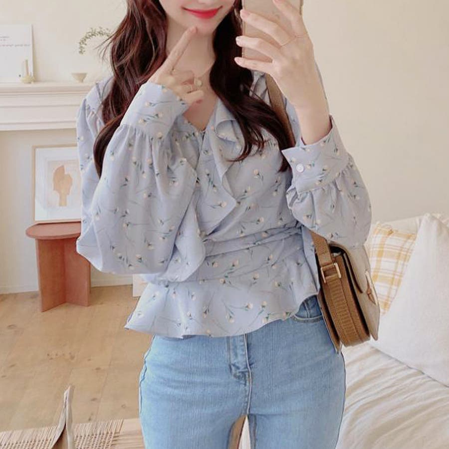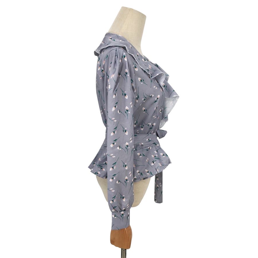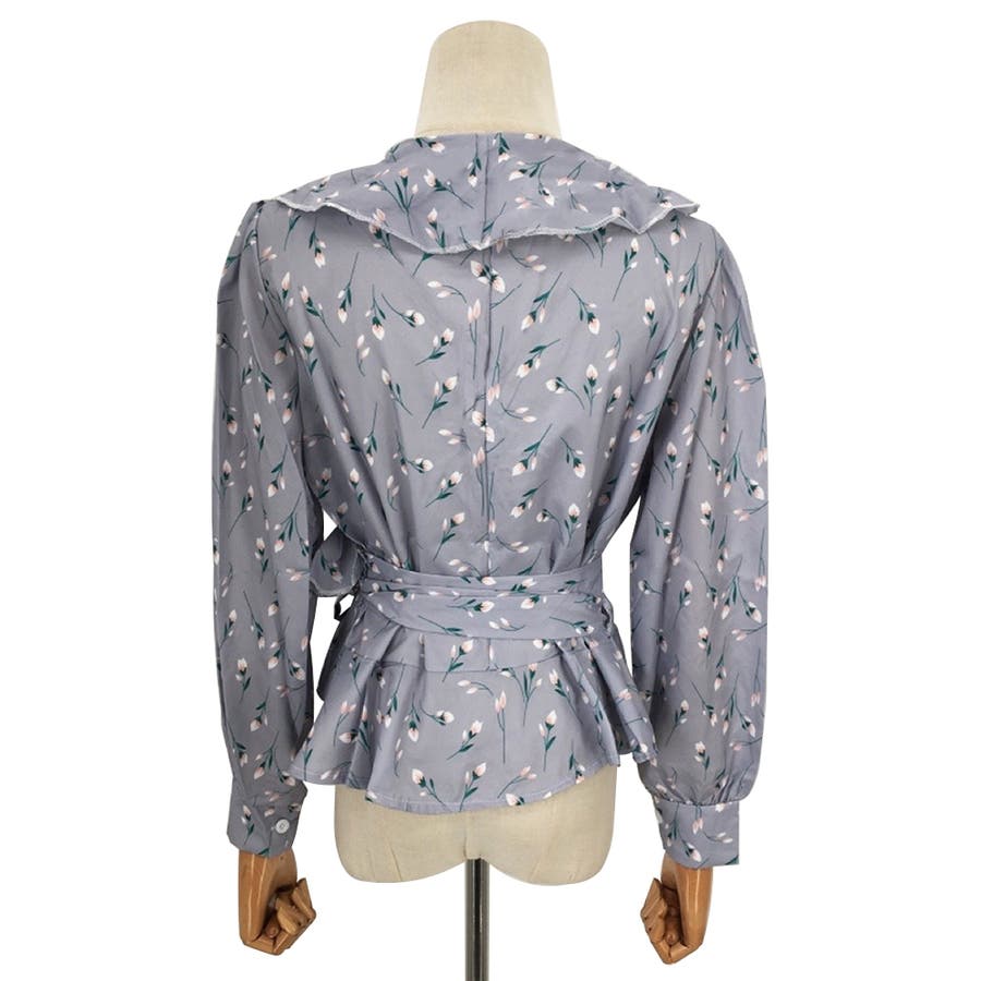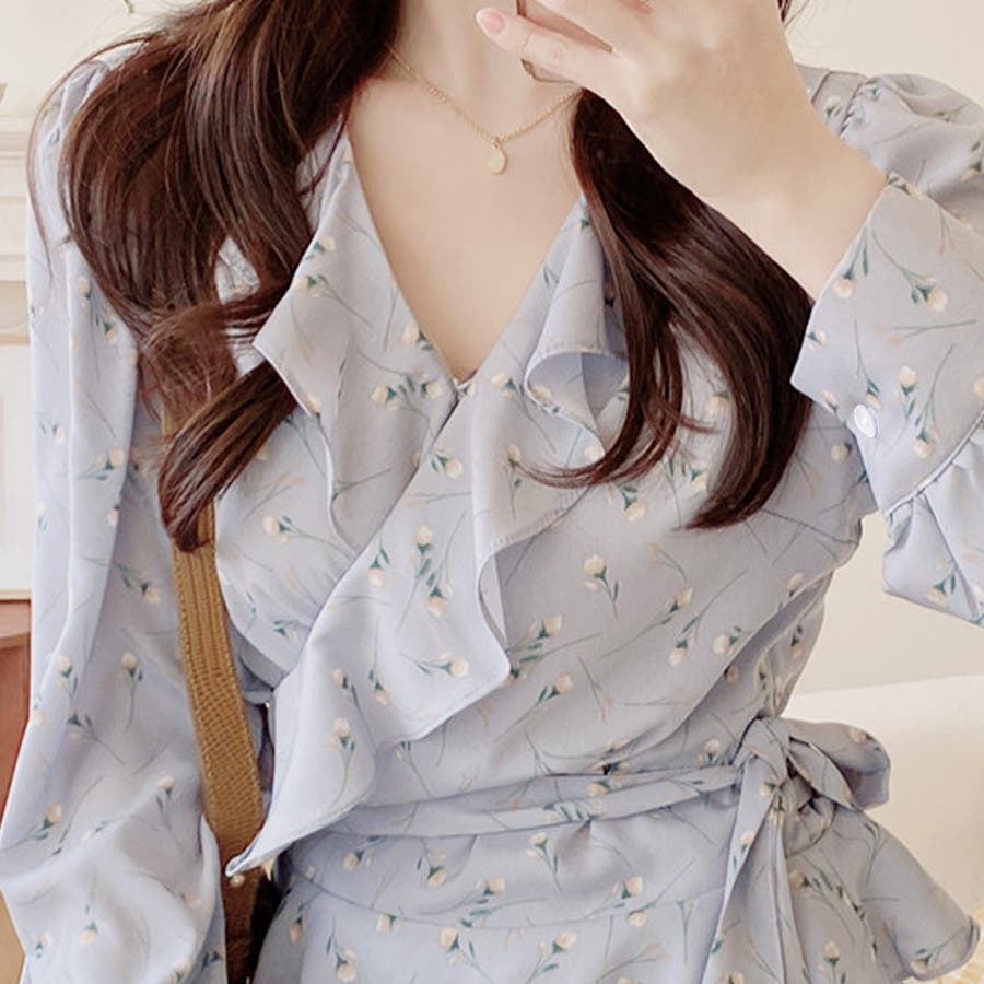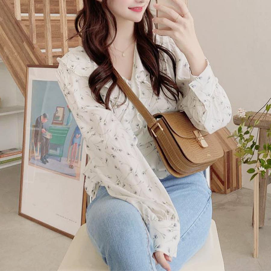 Vネック花柄ブラウス レディース トップス