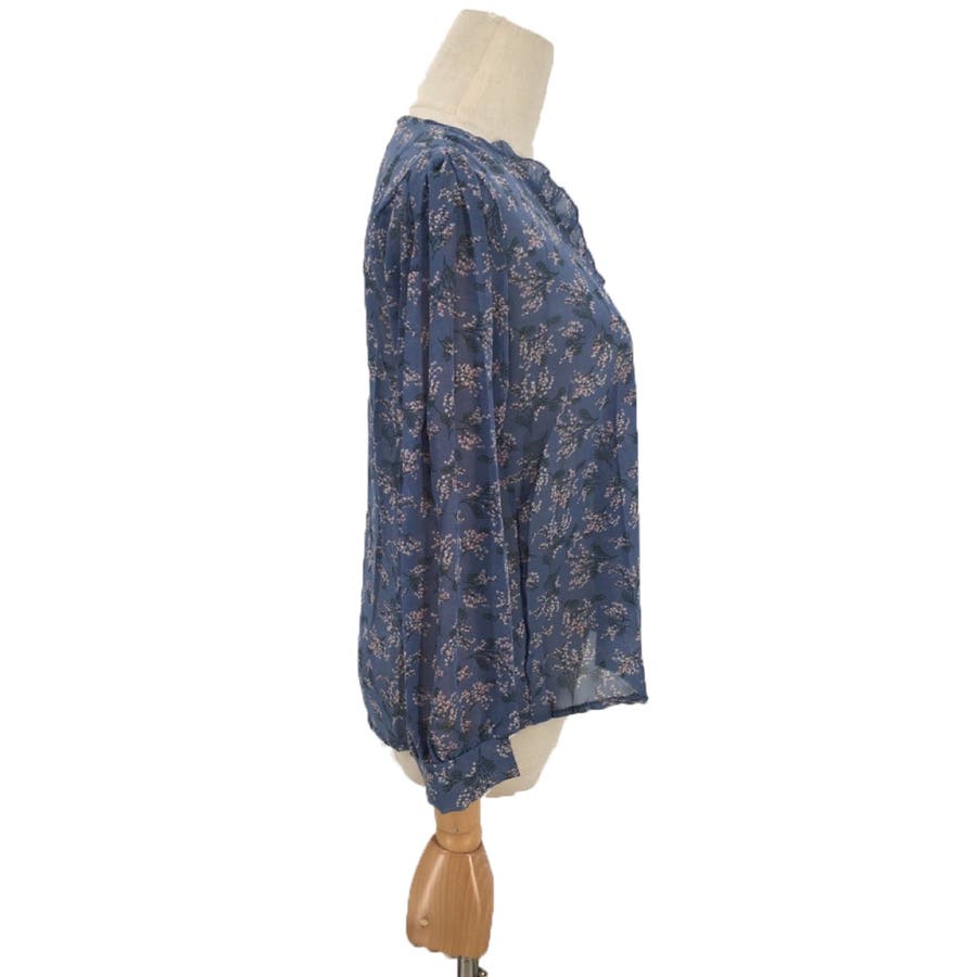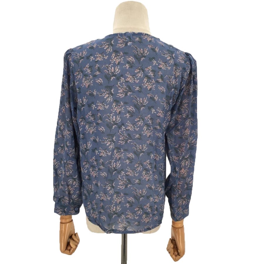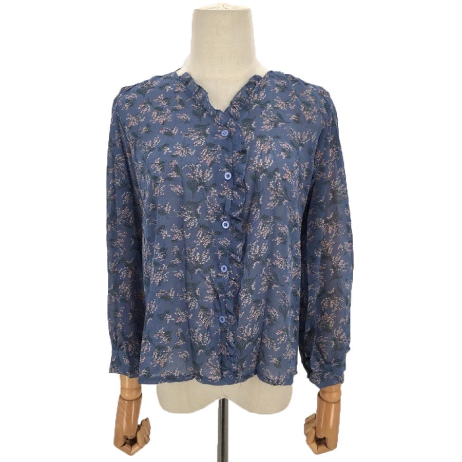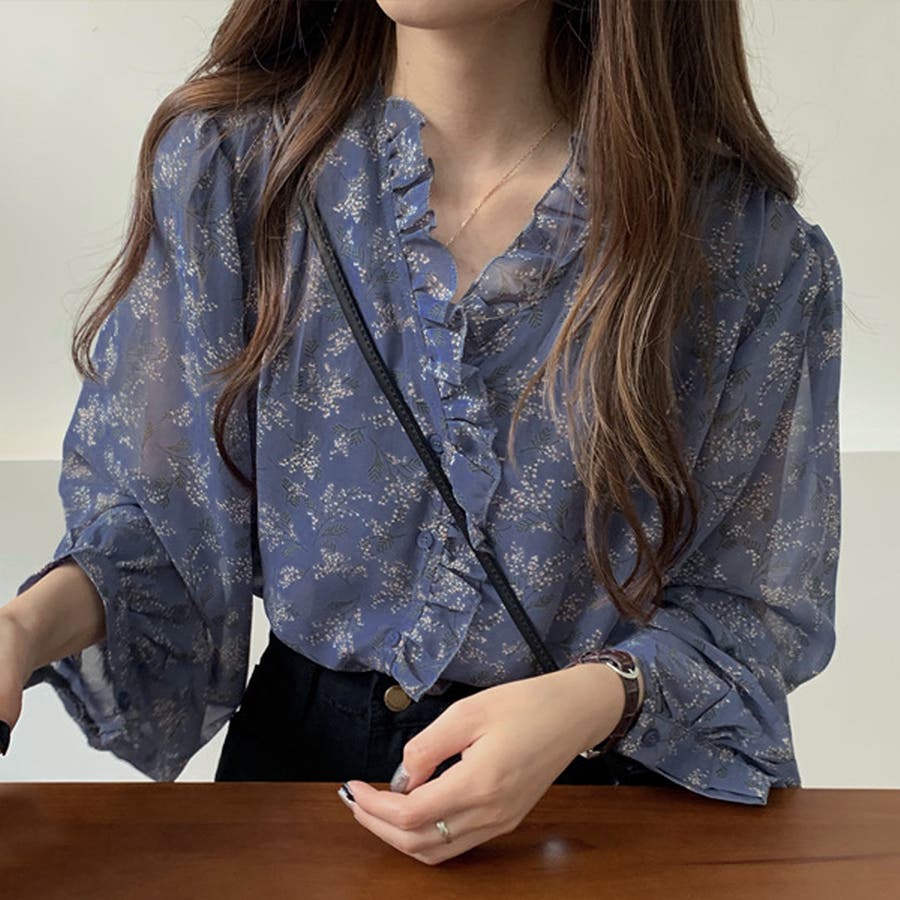 【ブルー】シースルー花柄ブラウス レディース カジュアル
