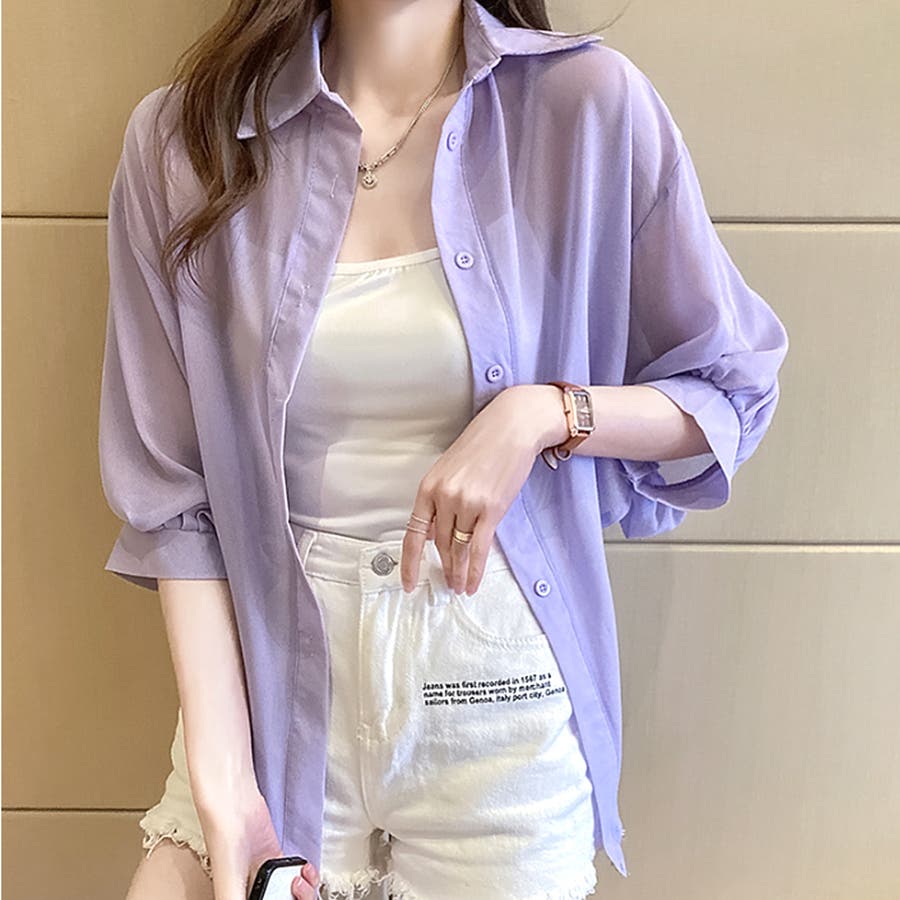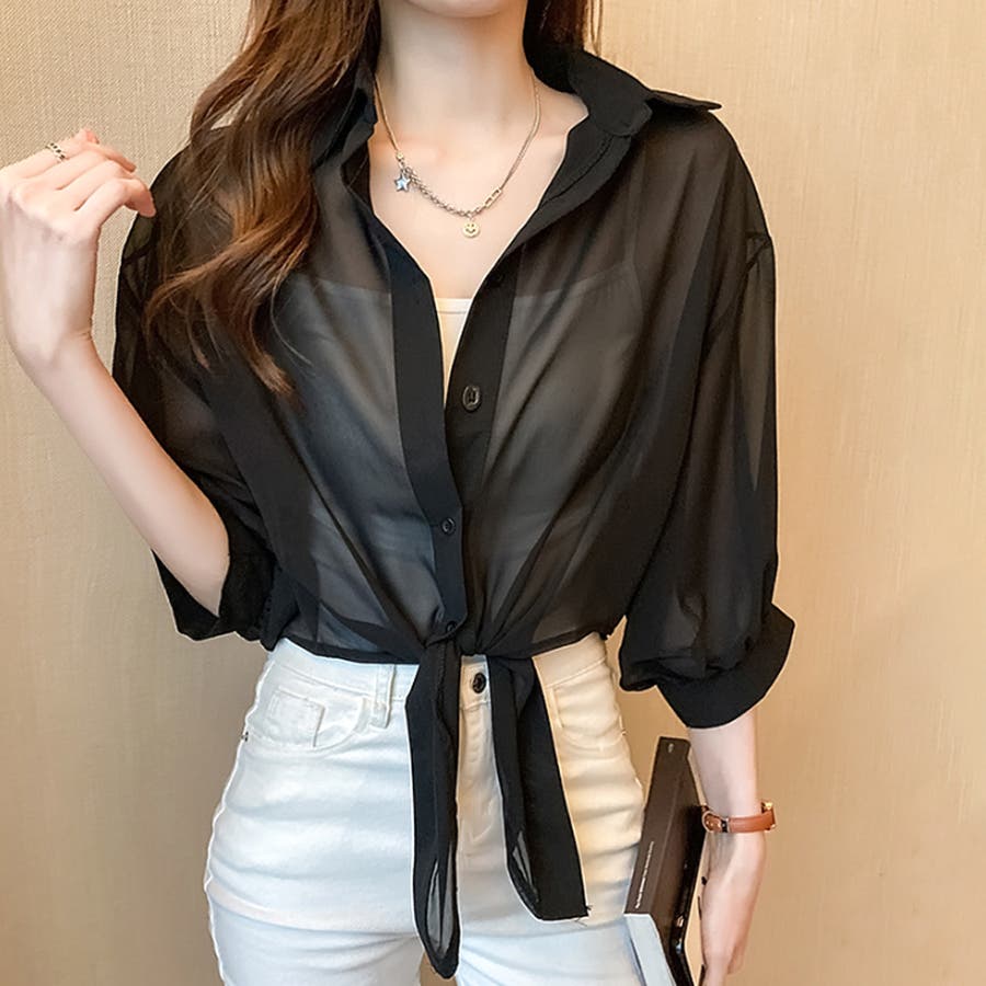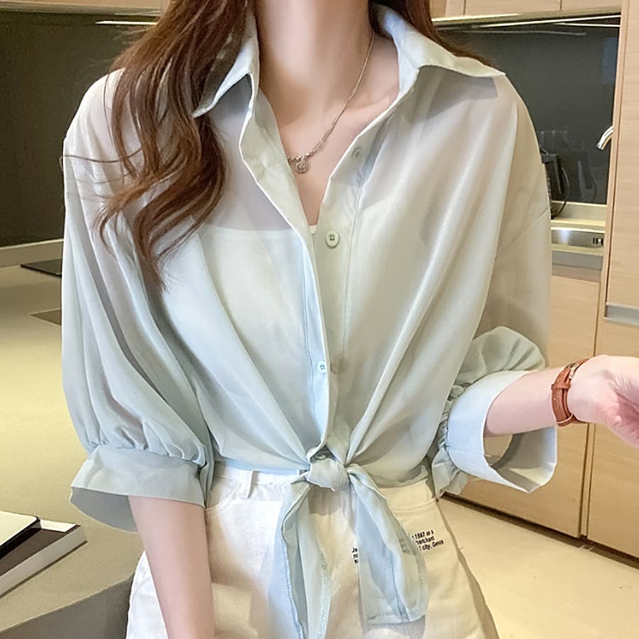 ・トレンドのシアー感のある軽やかな生地感で、さわやかなコーディネートに。