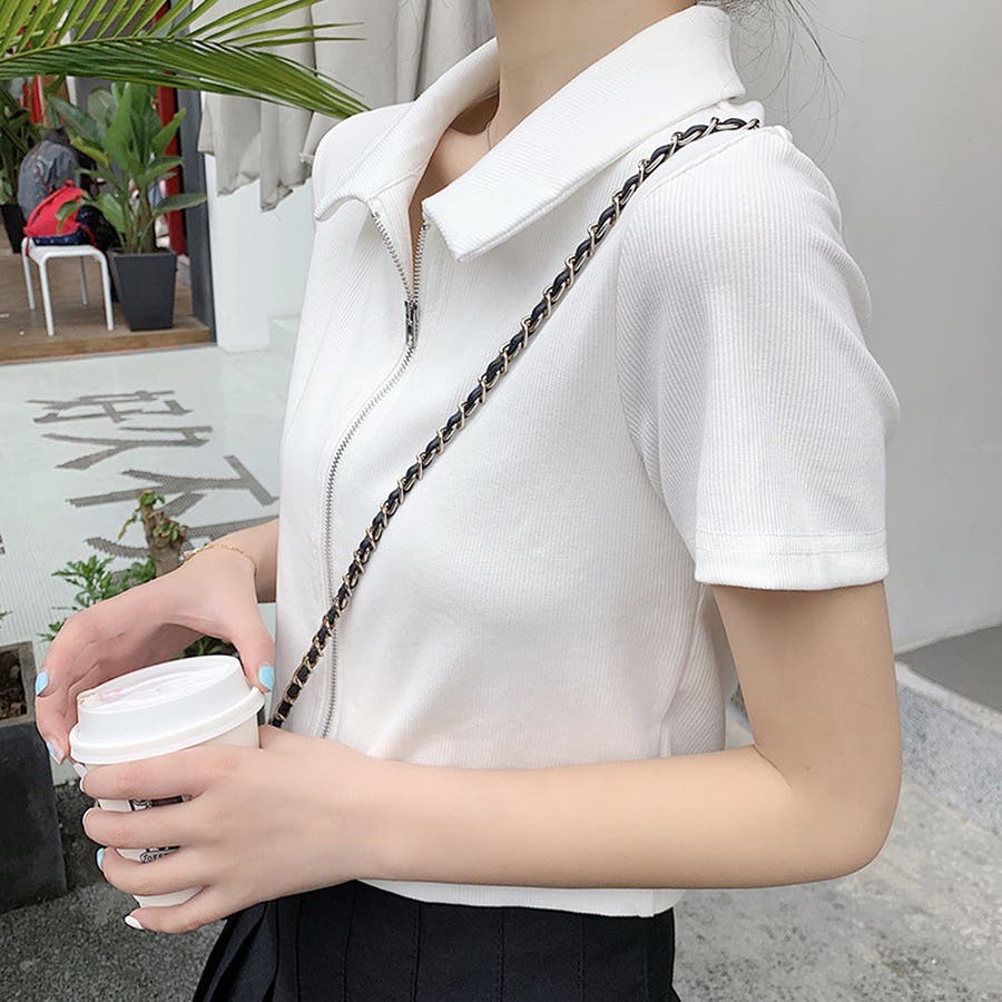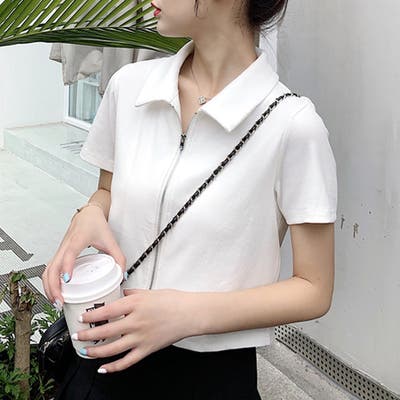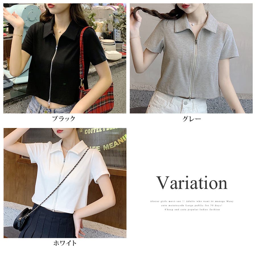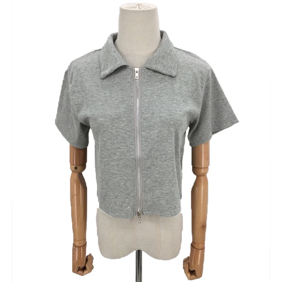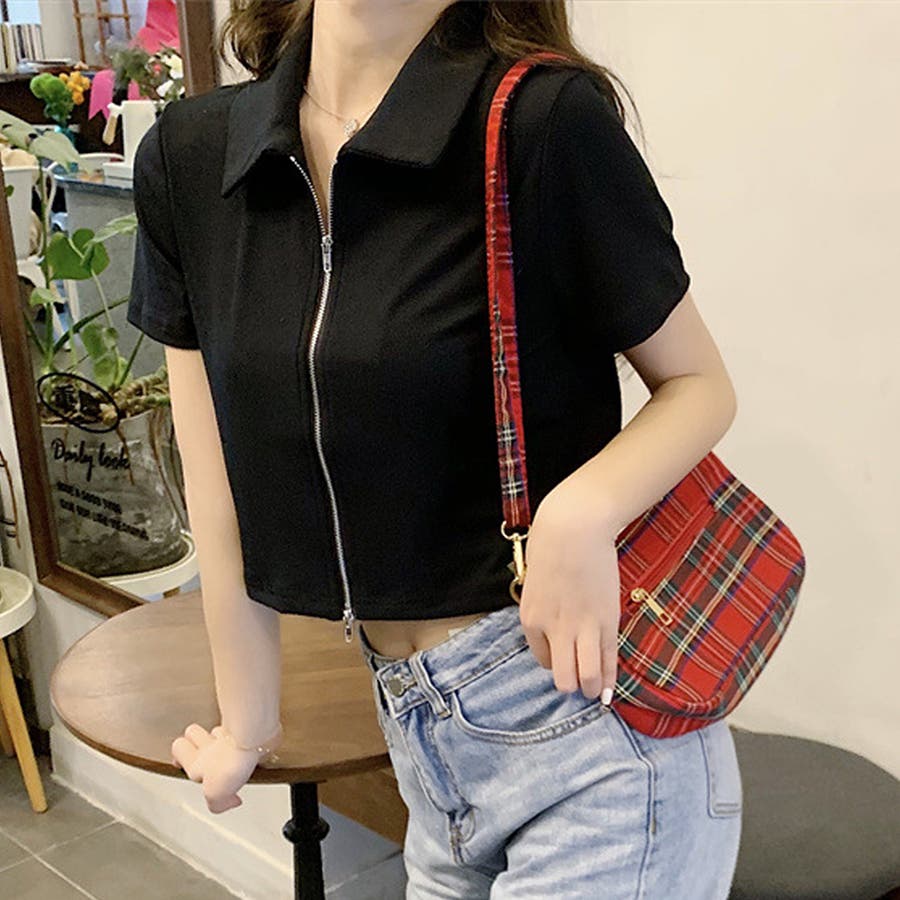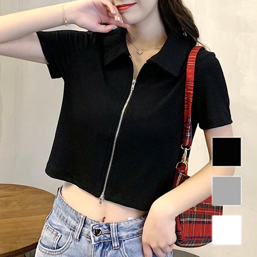 ・フロントのダブルジッパーがおしゃれな半袖トップスは、ショート丈で旬な雰囲気を演出♪