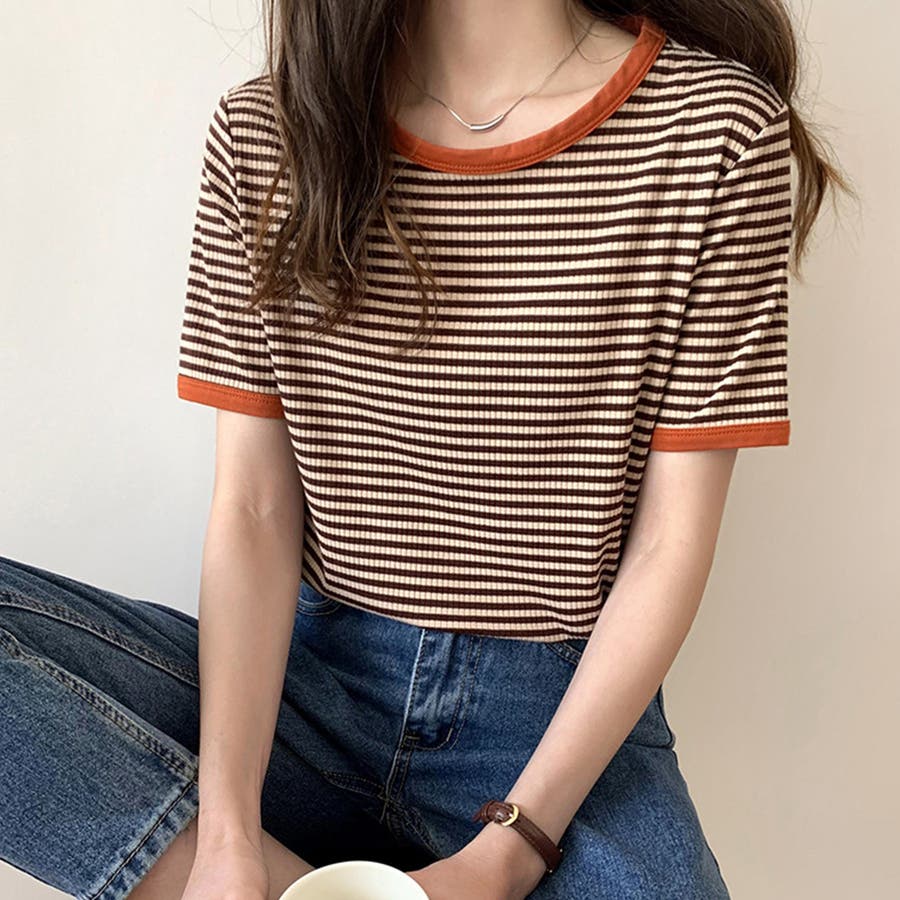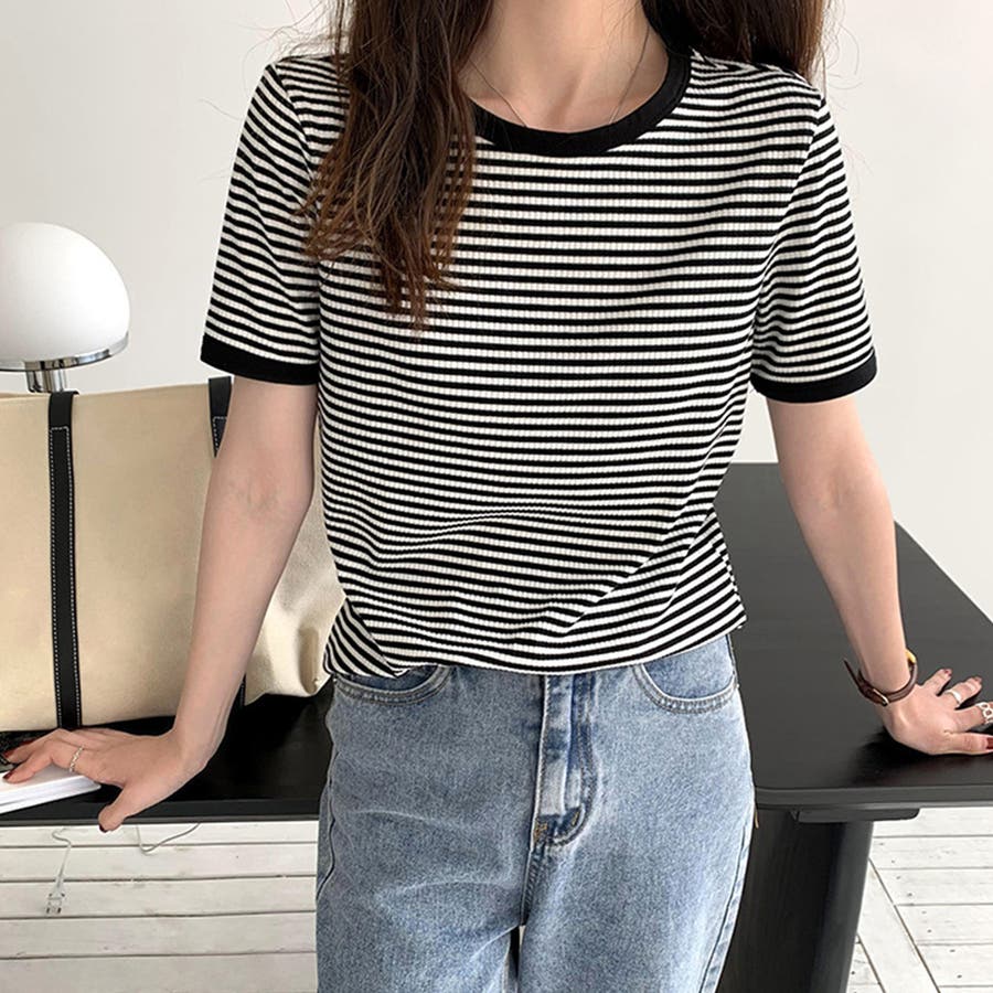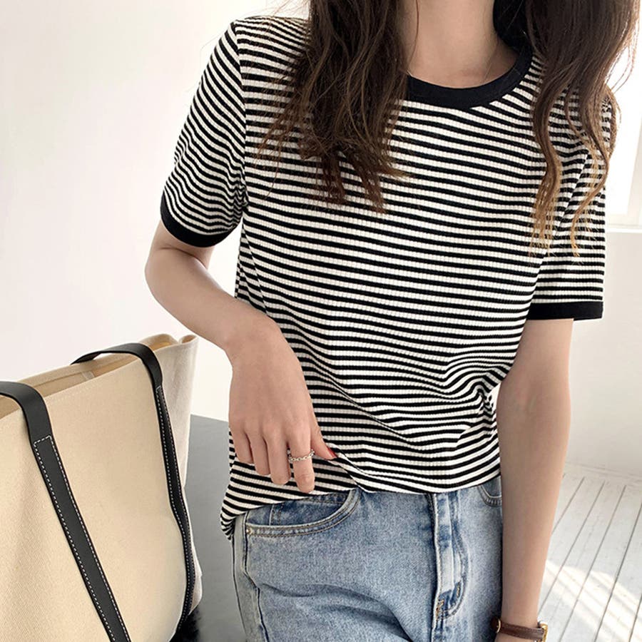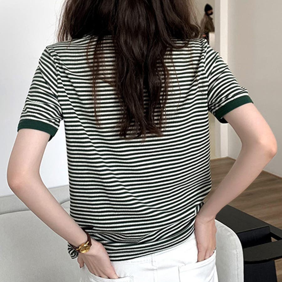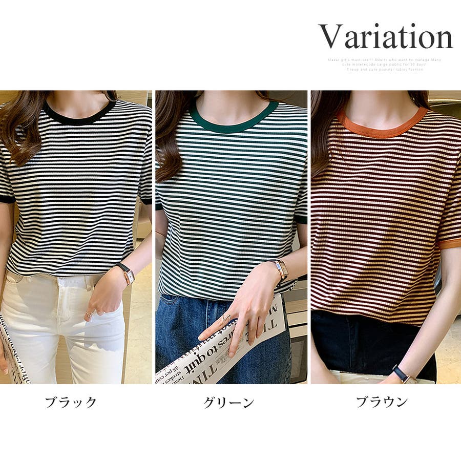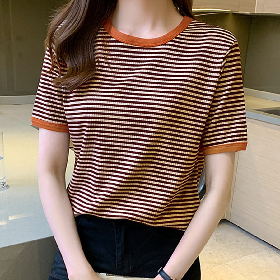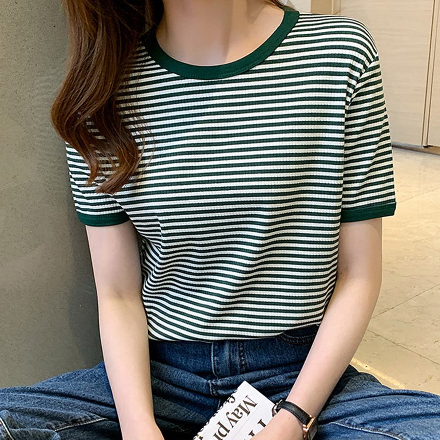 ボーダー半袖カットソー レディース トップス
