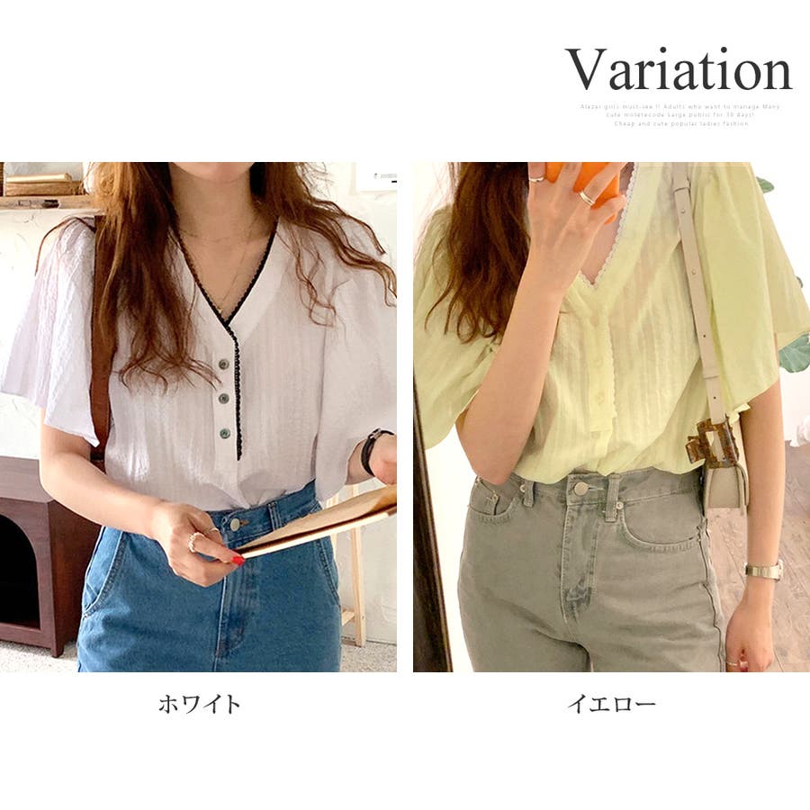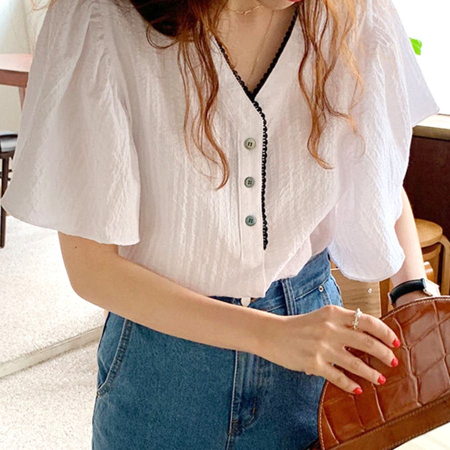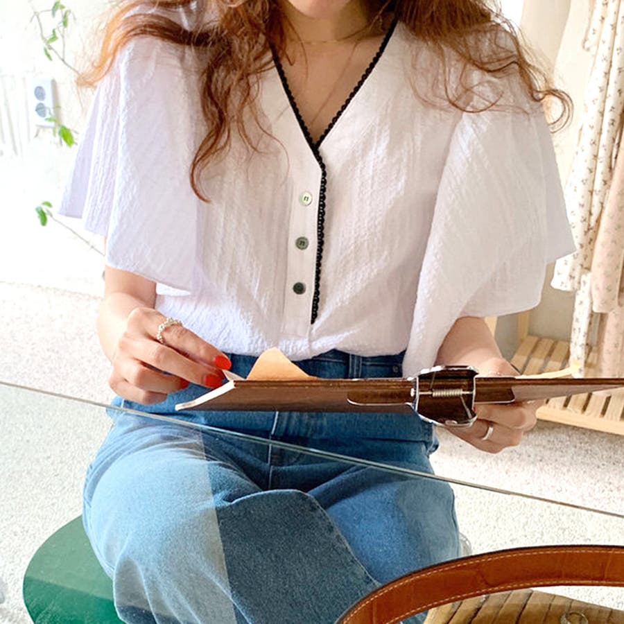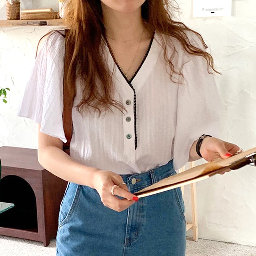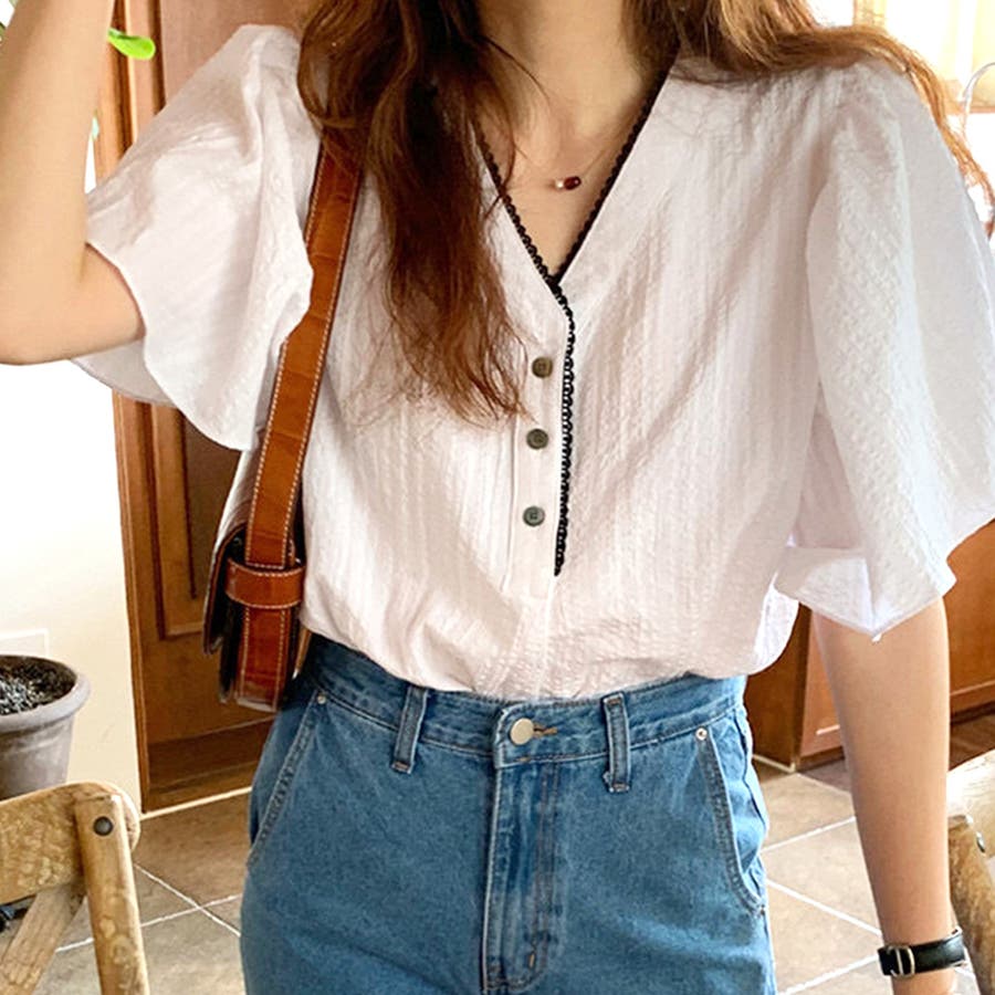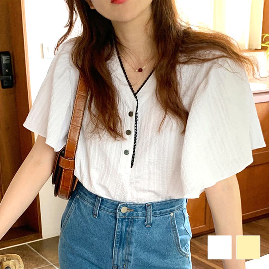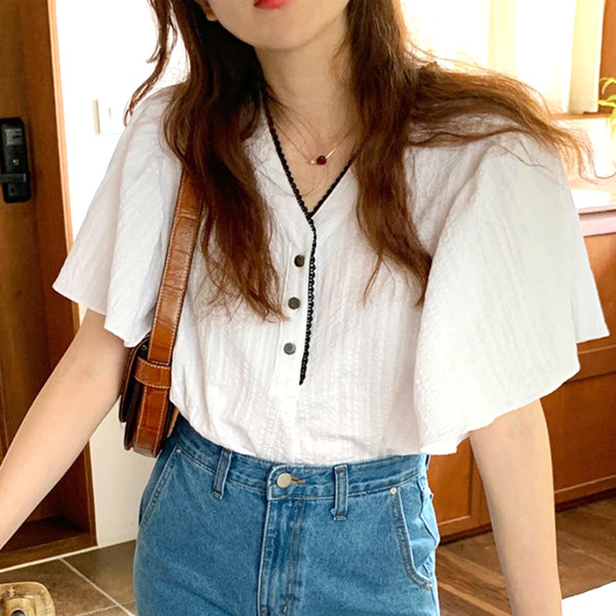 フレアスリーブVネックブラウス レディース トップス