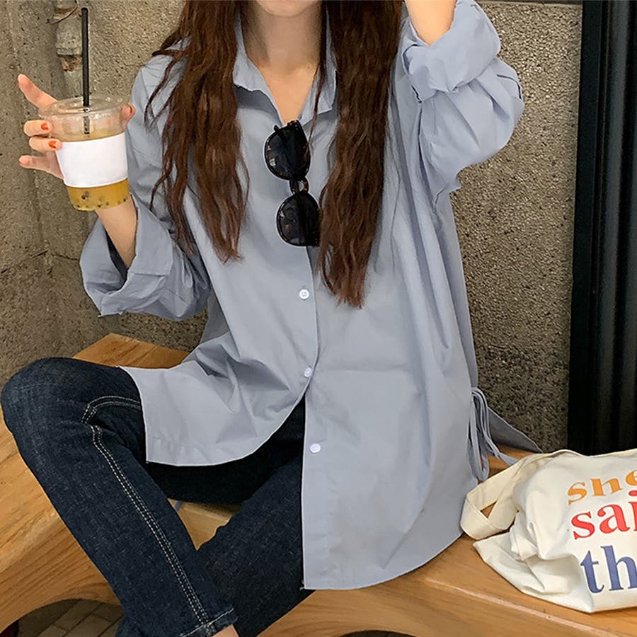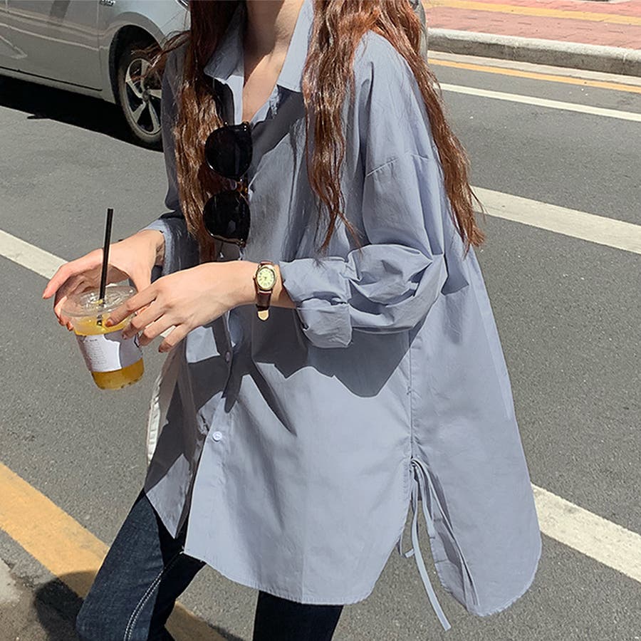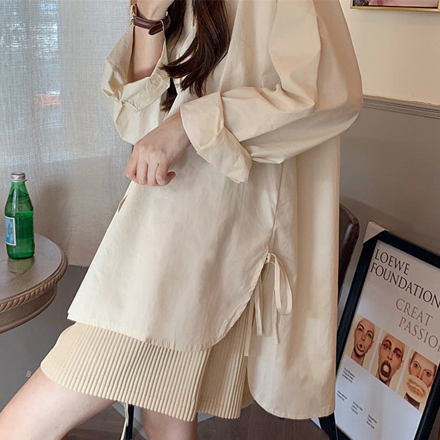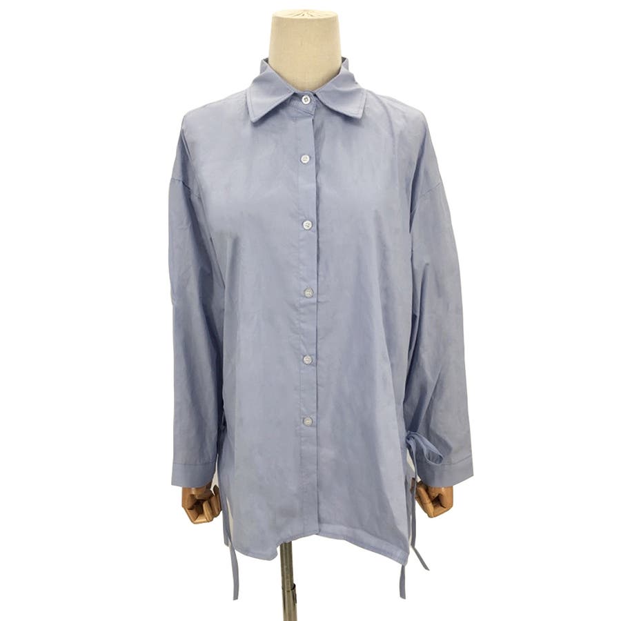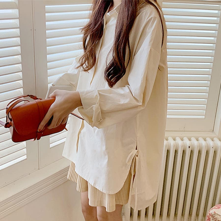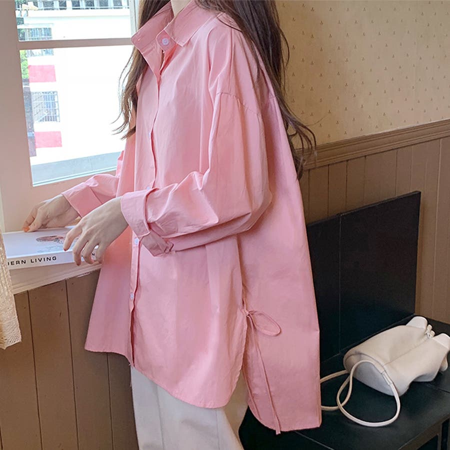 ・サイドのスリットにリボンをデザイン。優しい女性の印象も持たせてくれる。ゆったりした雰囲気のリボンブラウス♪