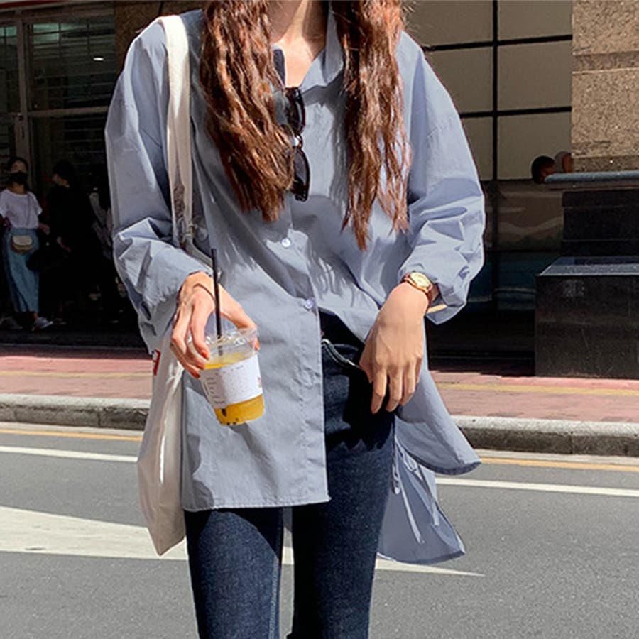・ゆったりサイズで体型カバーにも〇スリムパンツとの相性抜群◎袖をロールアップ!アレンジした着こなしでこなれ感を演出♪