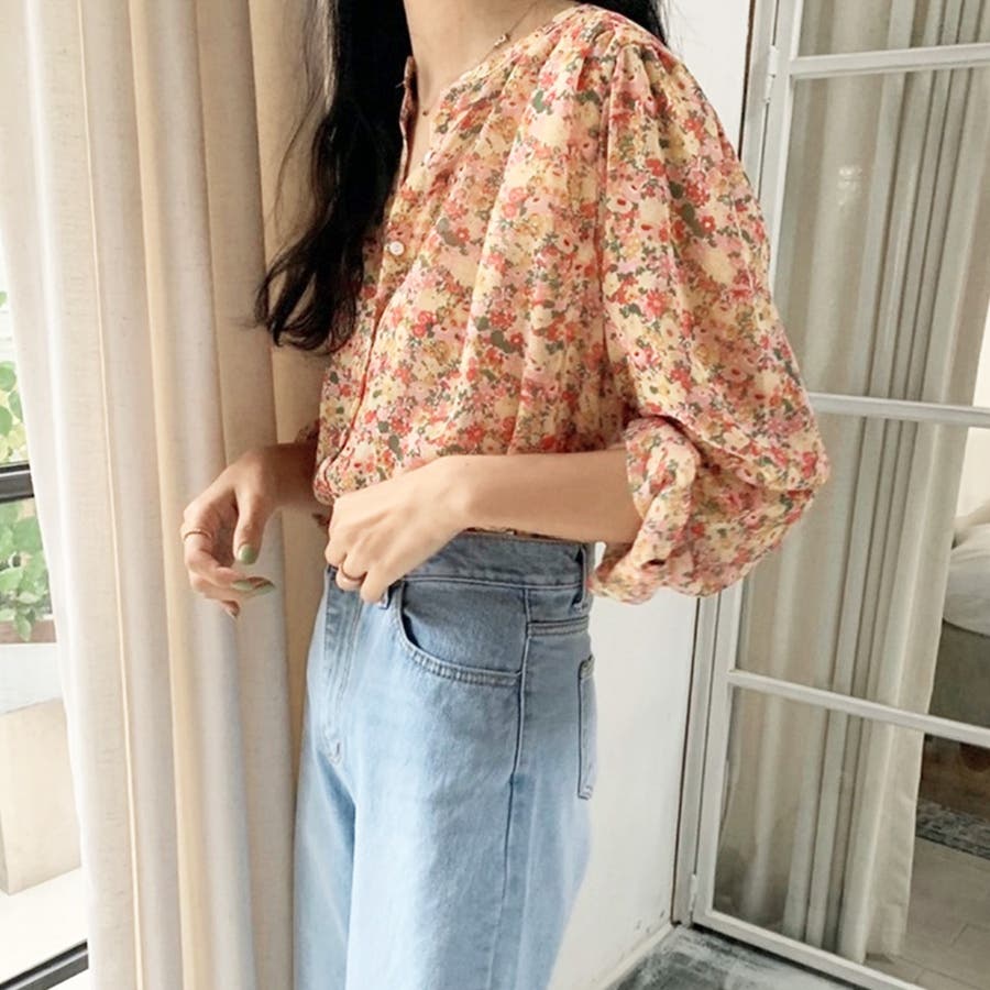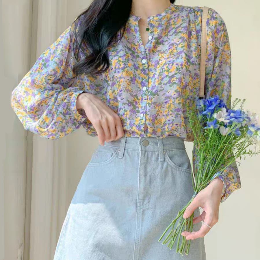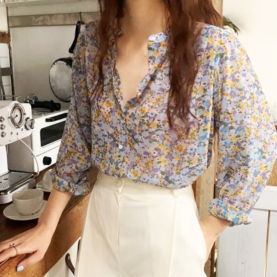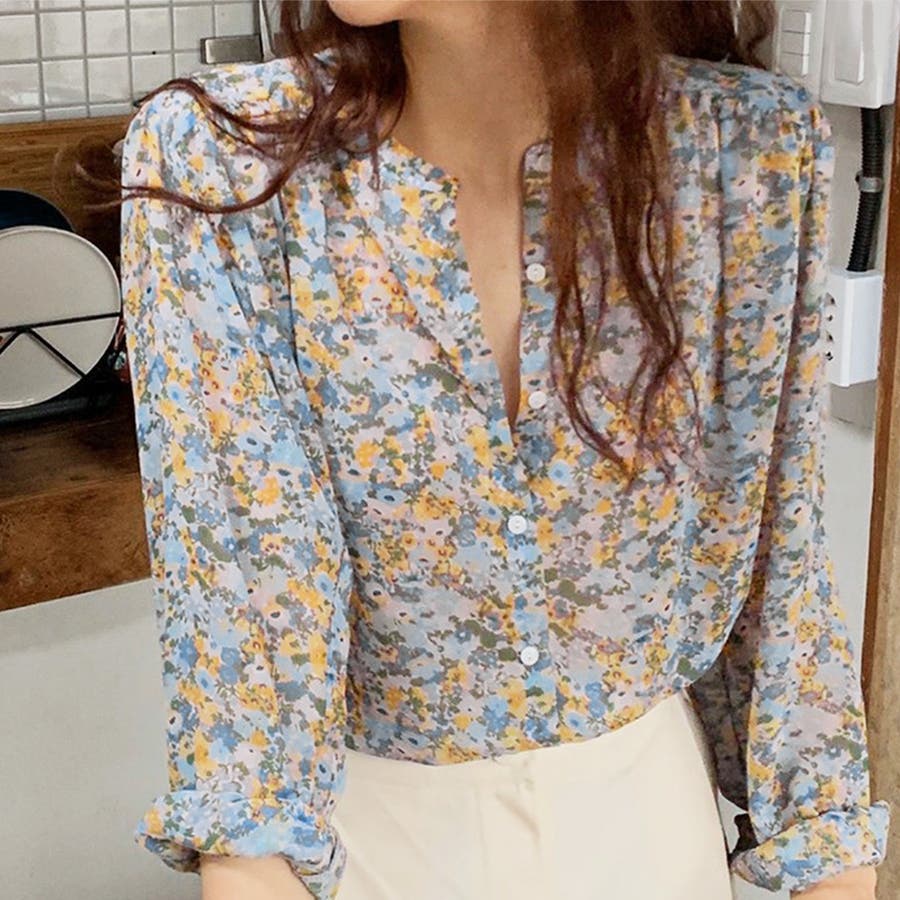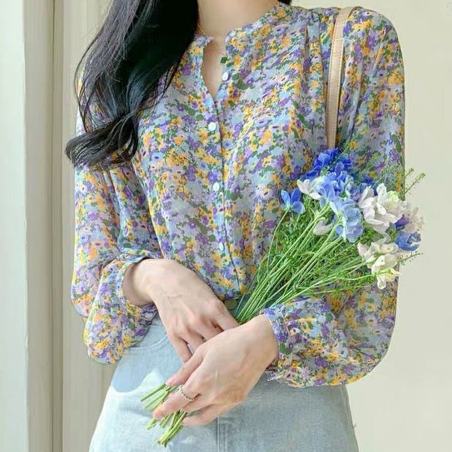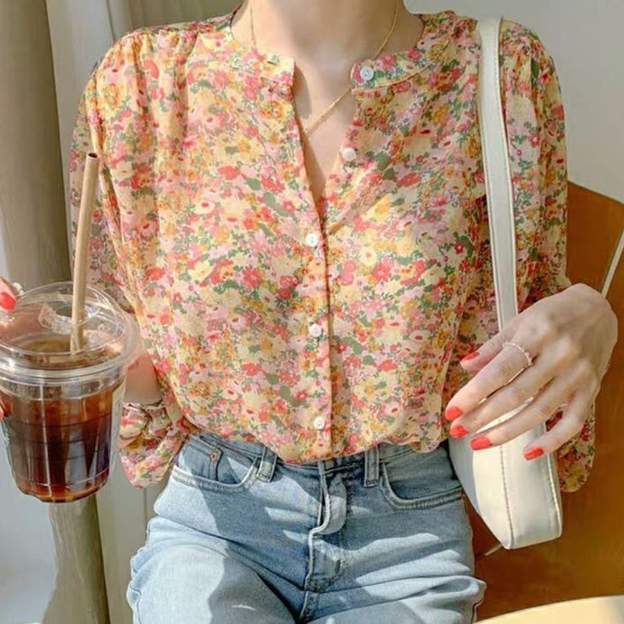 花柄シフォンブラウス 春 夏服